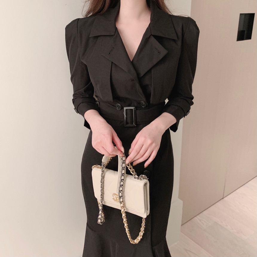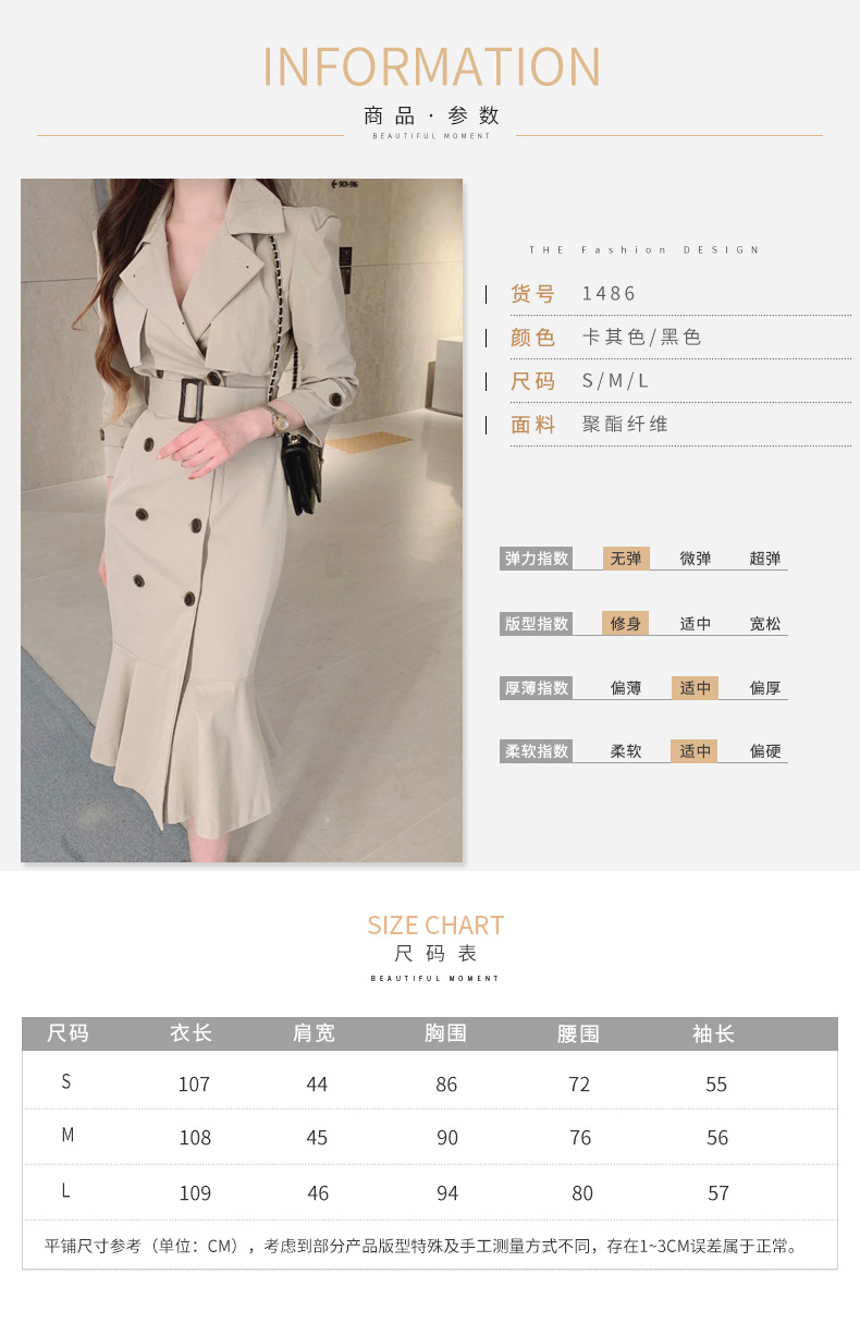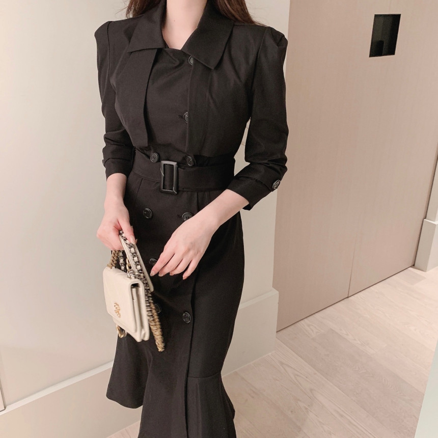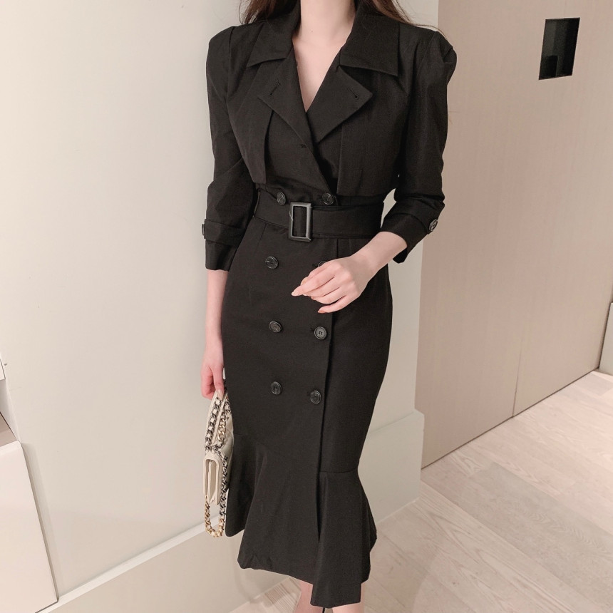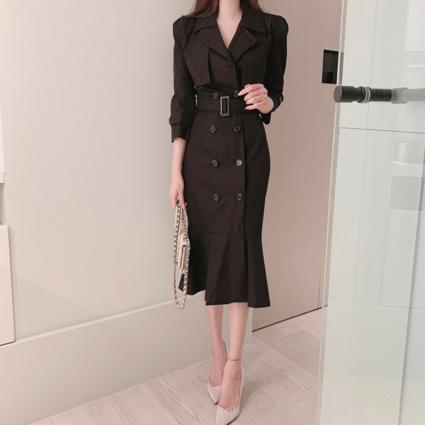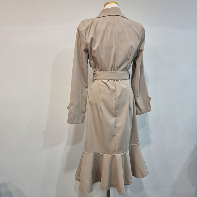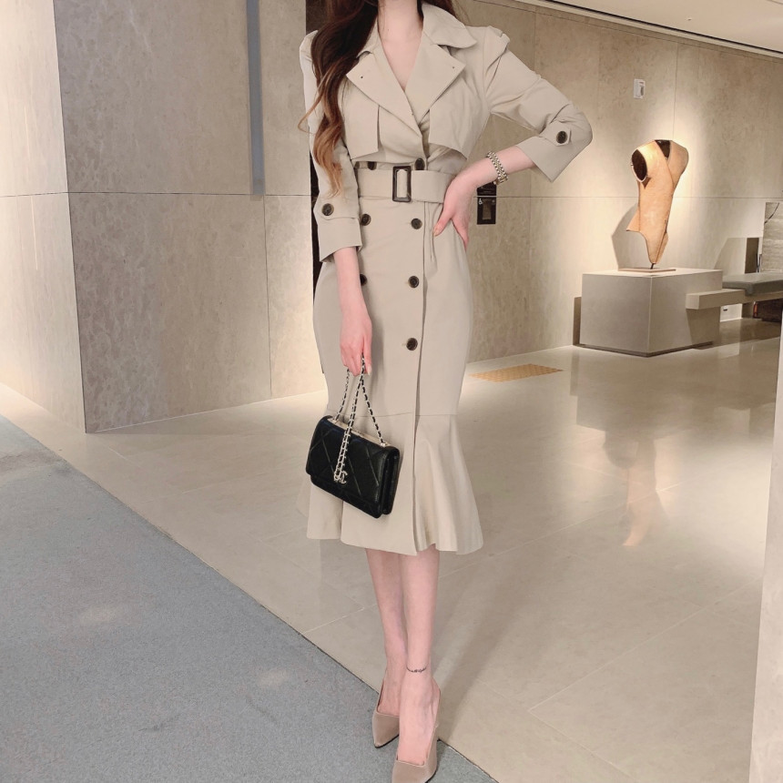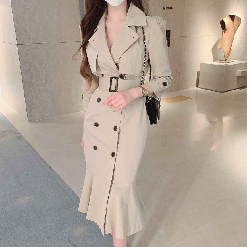 Áo khoác đầm dáng dài mang phong cách Hàn, có dây thắt eo tạo điểm nhấn. Thiết kế ôm body, phần chân váy xòe nhẹ như đuôi cá, giúp tôn dáng người mặc. Kiểu cắt may nhiều chi tiết tạo hình khối đẹp mắt. Sản phẩm phù hợp mặc trong tiết trời xuân ấm áp. Có thể kết hợp cùng giày cao gót và túi xách nhỏ để tạo nên bộ trang phục hoàn chỉnh. | Tên sản phẩm: Áo Gió Nữ Kiểu Đuôi Cá Hàng Mùa Xuân Thu Đông Phong Cách Hàn Quốc - Thời Trang Nữ | Mã sản phẩm: k1035 - Giá: 1.130.000đ | Mã nhà sản xuất: GUDG-G04Hình ảnh sản phẩm