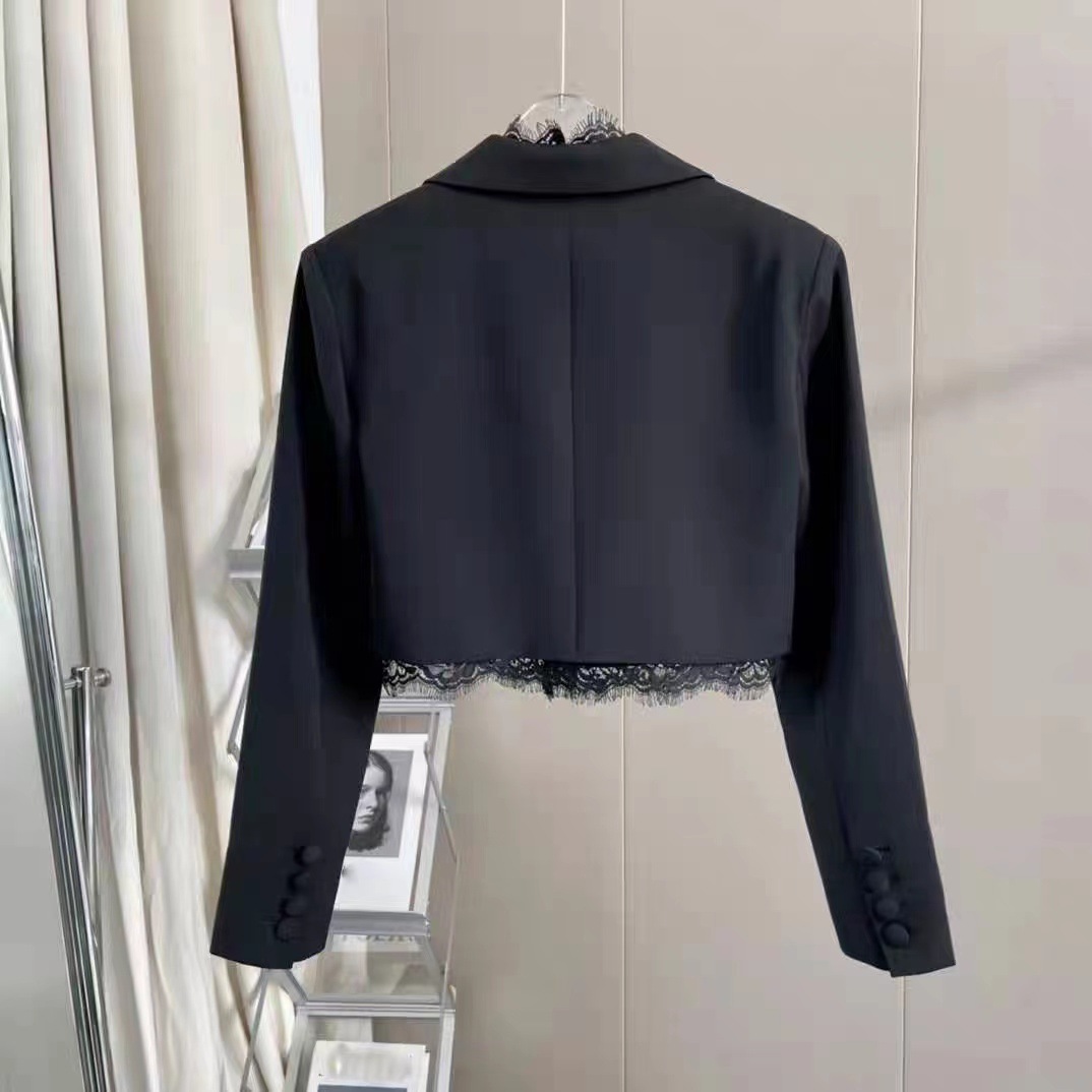 Áo khoác kiểu dáng ngắn tay, phù hợp tiết trời đầu xuân. Thiết kế có phần v được độn nhẹ tạo dáng vuông vức, phối cùng chi tiết ren viền tinh tế dọc theo cổ áo và đường viền. Kiểu áo này dễ dàng phối cùng nhiều trang phục như quần âu, chân váy để tạo nên vẻ ngoài chỉn chu, nhẹ nhàng. Có thể mặc khi đi làm, dự tiệc hoặc gặp mặt bạn bè. | Tên sản phẩm: Áo Vest Nữ Chất Liệu Ren Vest Họa Tiết Hoa Hàng Mùa Xuân Thu Đông - Thời Trang Nữ | Mã sản phẩm: k1037 - Giá: 1.060.000đ | Mã nhà sản xuất: GUDG-G03Hình ảnh sản phẩm