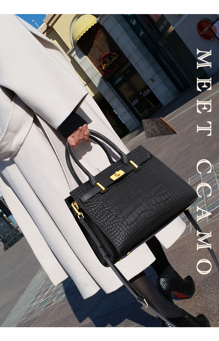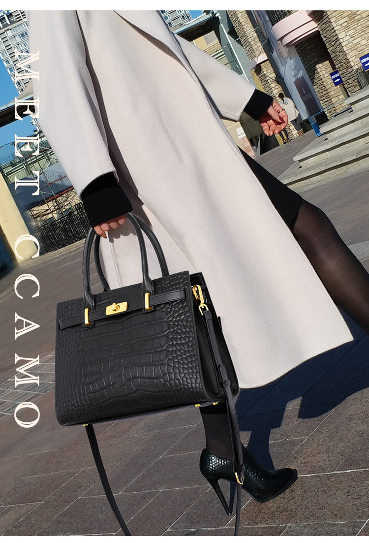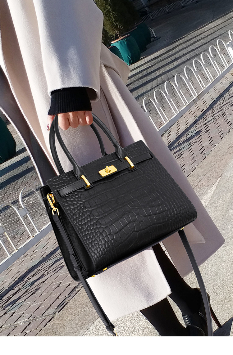 Túi xách dành cho nữ, kiểu dáng mới 2022, có kết cấu bề mặt vân da cá sấu tinh tế. Thiết kế này rất phù hợp cho việc đi làm hàng ngày nhờ sức chứa lớn, đựng vừa nhiều vật dụng cá nhân. Bạn có thể linh hoạt mang túi bằng cách đeo v, xách tay hoặc khoác chéo tùy thích. Màu đen dễ dàng phối hợp với nhiều trang phục khác nhau, phù hợp cho nhiều dịp sử dụng. | Tên sản phẩm: Túi Xách Nữ Vân Da Cá Sấu - Túi Ví Nữ | Mã sản phẩm: K1136 - Giá: 1.360.000đ | Mã nhà sản xuất: HEDUP-G04Hình ảnh sản phẩm