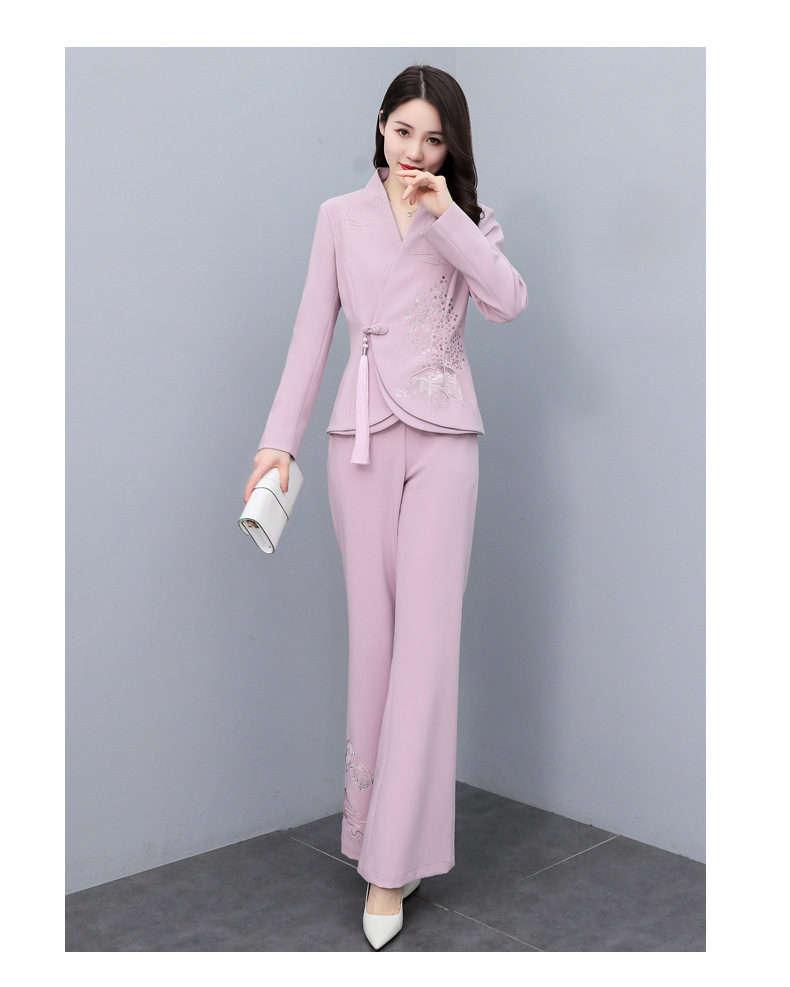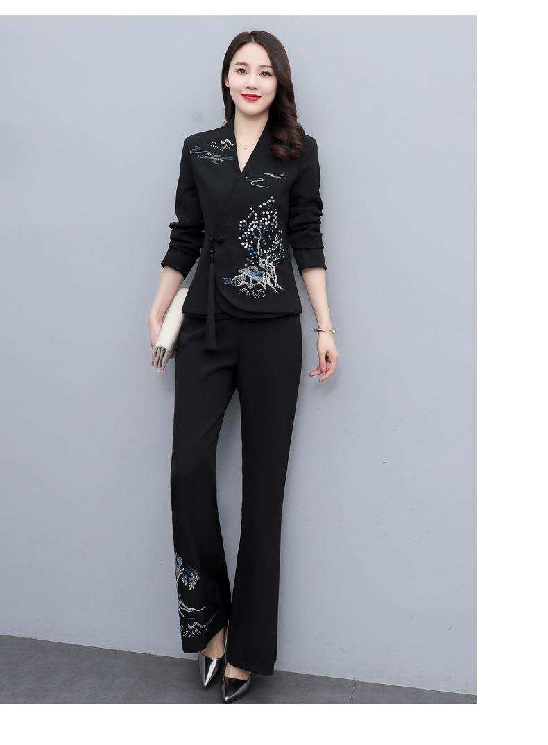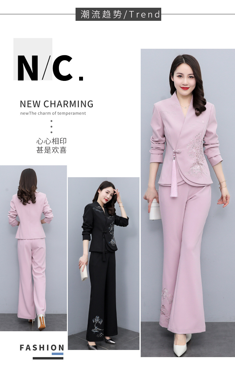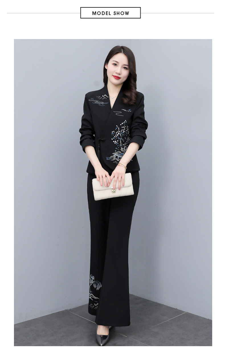 Bộ trang phục này gồm áo khoác và quần ống rộng, được ra mắt trong năm 2022. Chất liệu vải mềm mại, thoáng mát, trên áo có điểm xuyết những đường thêu tinh tế. Kiểu dáng trẻ trung, phù hợp cho những dịp gặp gỡ bạn bè hay dạo phố cuối tuần. Bạn có thể mặc nguyên bộ để tạo vẻ chỉn chu, hoặc phối cùng áo thun đơn giản để có phong cách thoải mái hơn. | Tên sản phẩm: Áo Khoác Nữ Cả Bộ 2 Món Thêu Họa Tiết Hoa - Thời Trang Nữ | Mã sản phẩm: K1156 - Giá: 1.740.000đ | Mã nhà sản xuất: HADG-G05Hình ảnh sản phẩm