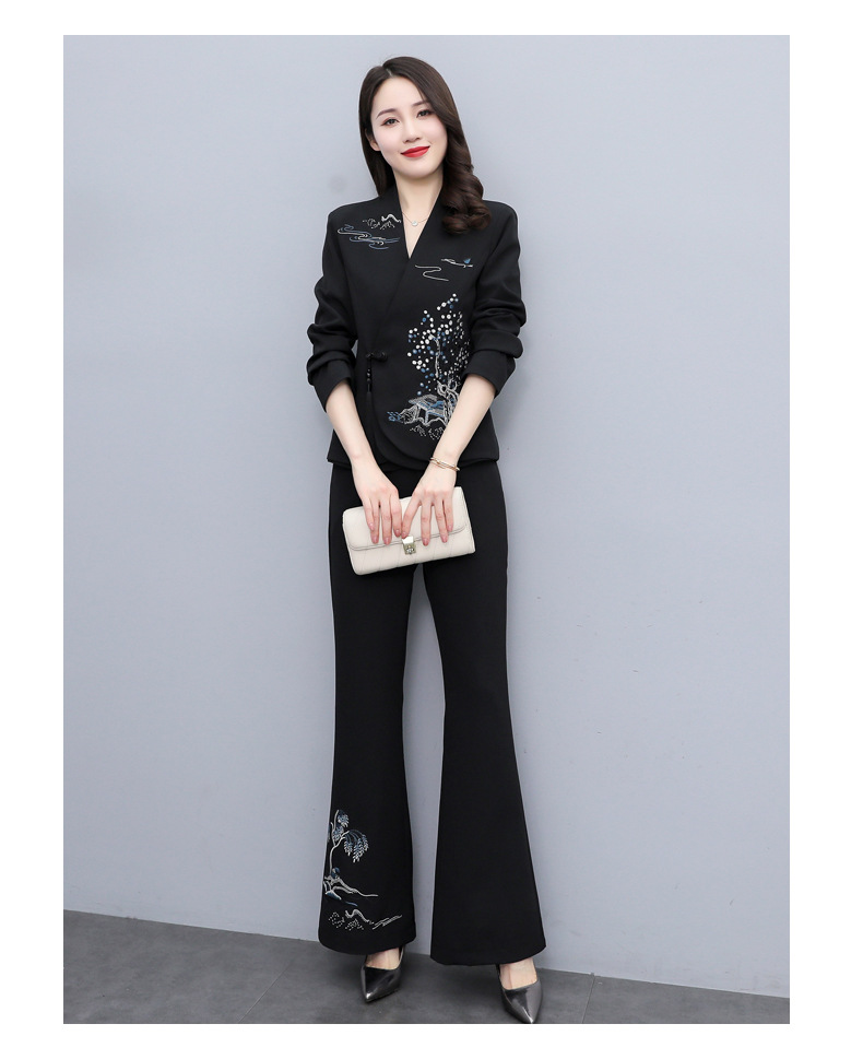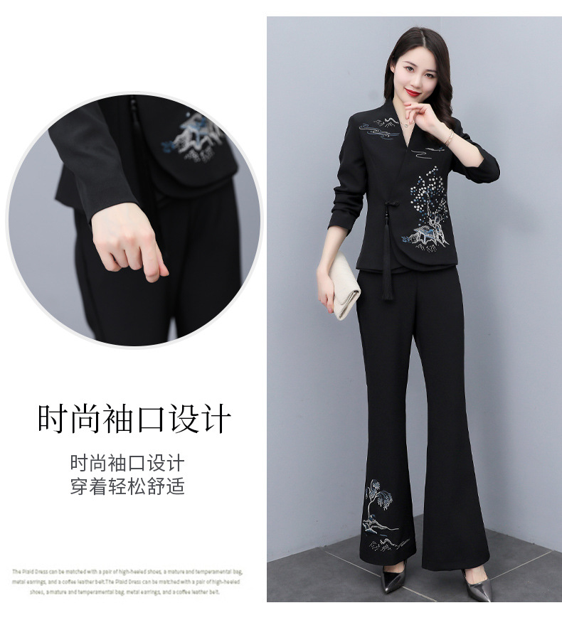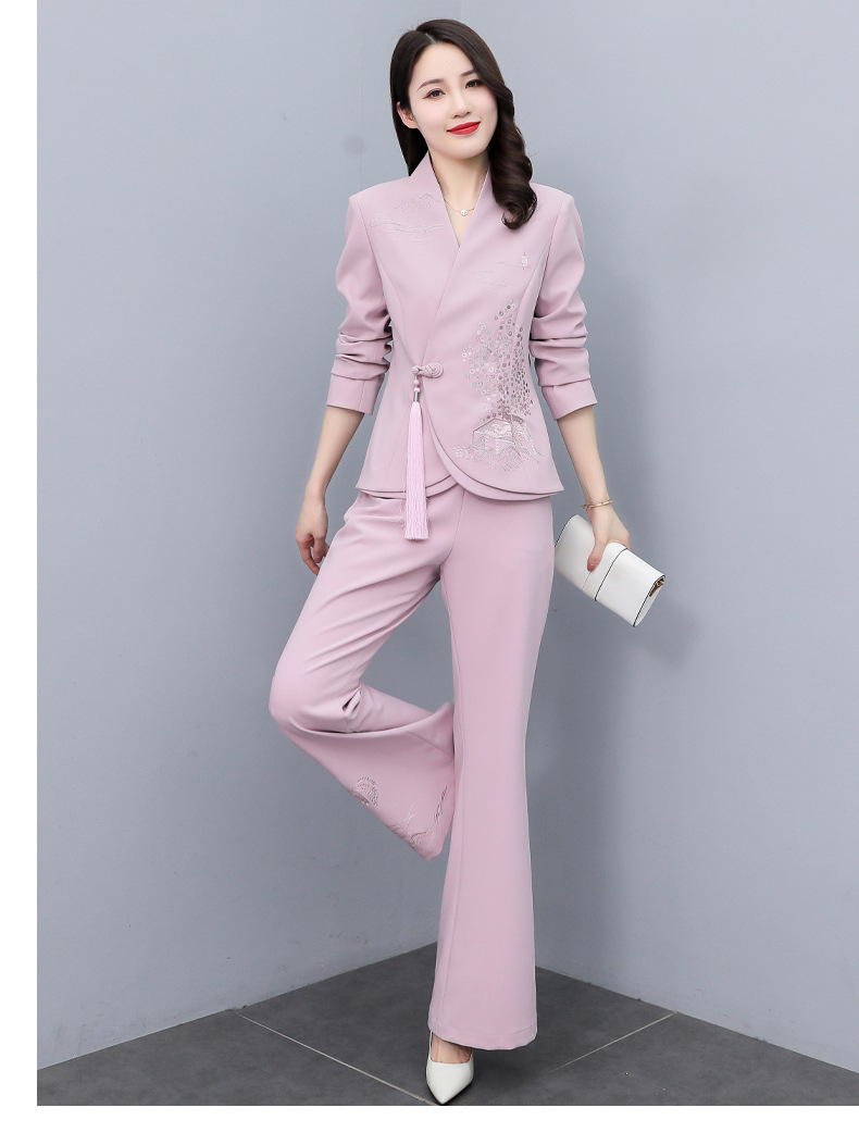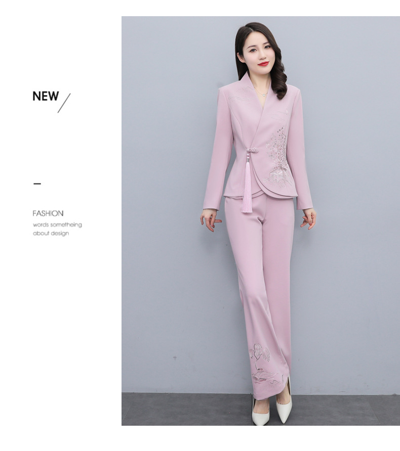 Bộ trang phục này gồm áo khoác và quần ống rộng, được ra mắt trong năm 2022. Chất liệu vải mềm mại, thoáng mát, trên áo có điểm xuyết những đường thêu tinh tế. Kiểu dáng trẻ trung, phù hợp cho những dịp gặp gỡ bạn bè hay dạo phố cuối tuần. Bạn có thể mặc nguyên bộ để tạo vẻ chỉn chu, hoặc phối cùng áo thun đơn giản để có phong cách thoải mái hơn. | Tên sản phẩm: Áo Khoác Nữ Cả Bộ 2 Món Thêu Họa Tiết Hoa - Thời Trang Nữ | Mã sản phẩm: K1156 - Giá: 1.740.000đ | Mã nhà sản xuất: HADG-G05Hình ảnh sản phẩm