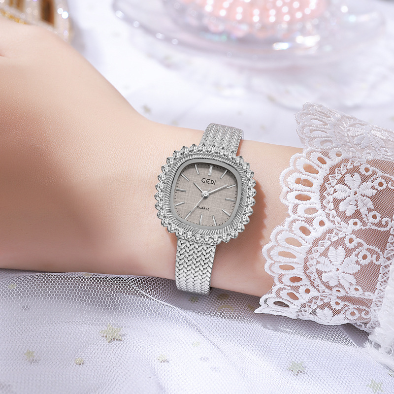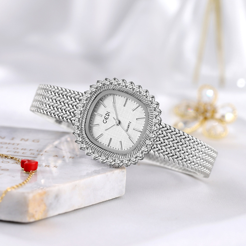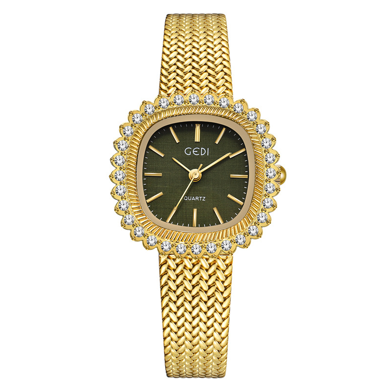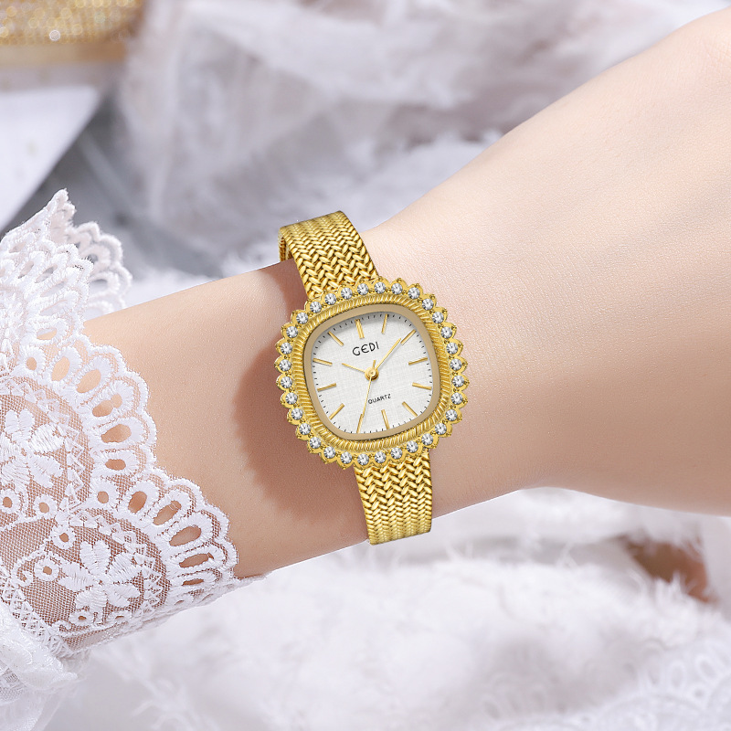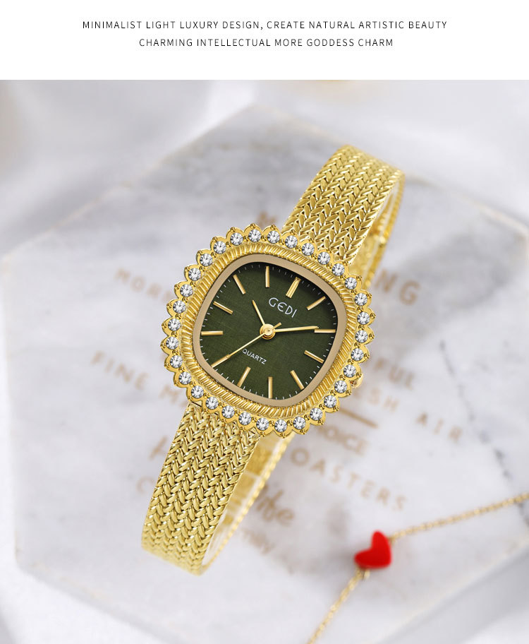 Chiếc đồng hồ này mang phong cách hoài cổ với thiết kế mặt số nhỏ xinh, điểm xuyến những viên đá lấp lánh tinh tế. Dây đeo và vỏ được hoàn thiện tỉ mỉ, trên mặt số còn có họa tiết hình bông lúa độc đáo. Đây là dòng đồng hồ dùng pin, hoạt động ổn định và ít cần bảo dưỡng. Bạn chỉ cần đeo trên tay để xem giờ hằng ngày, tránh để sản phẩm tiếp xúc trực tiếp với hóa chất hoặc va đập mạnh. | Tên sản phẩm: Đồng Hồ Nữ Máy Pin, Máy Thạch Anh Phục Cổ Cổ Điển - Đồng Hồ Phụ Kiện Nữ | Mã sản phẩm: K1182 - Giá: 740.000đ | Mã nhà sản xuất: FODI-G02Hình ảnh sản phẩm