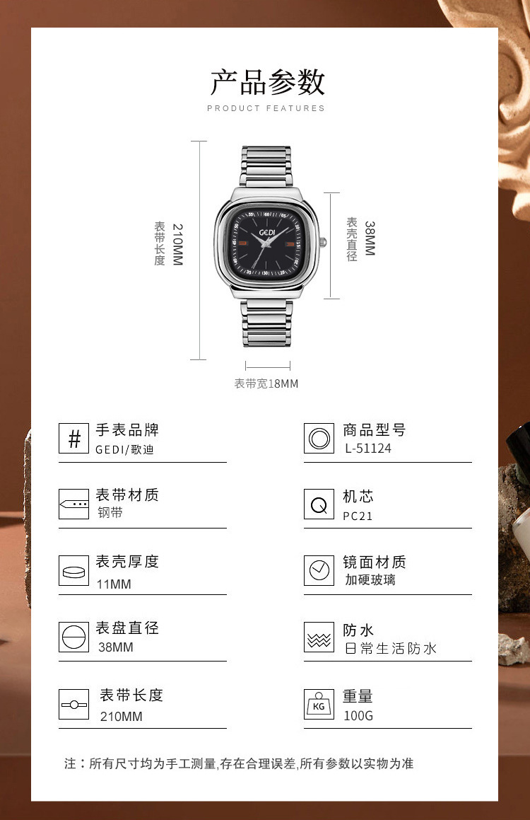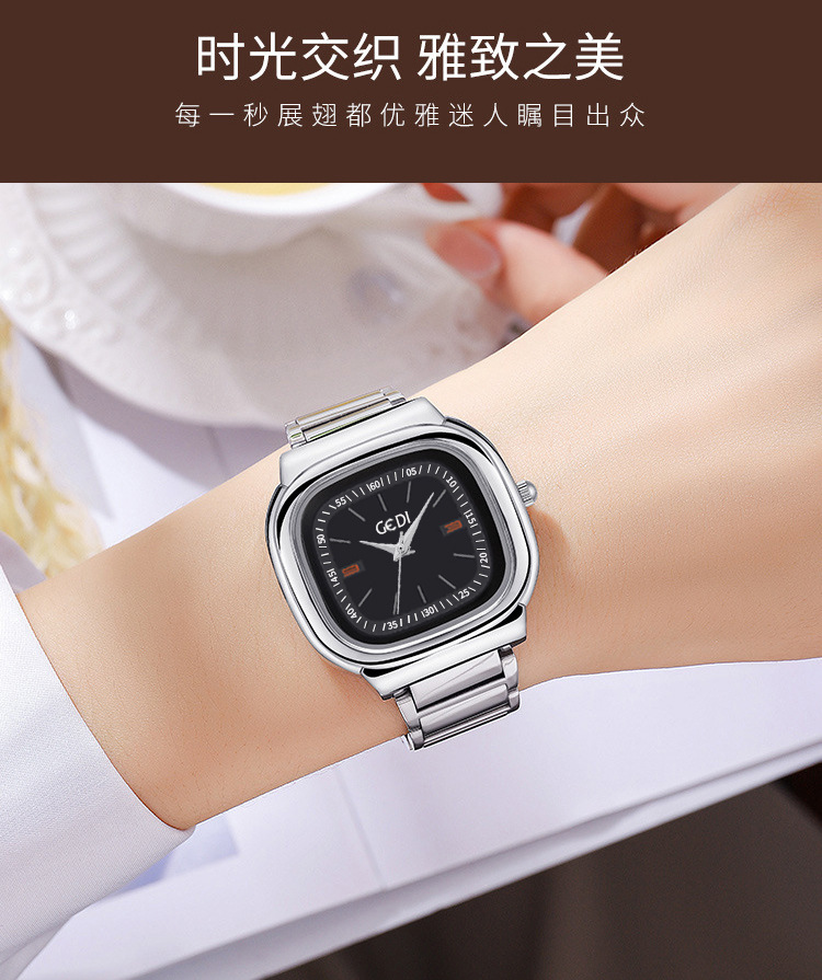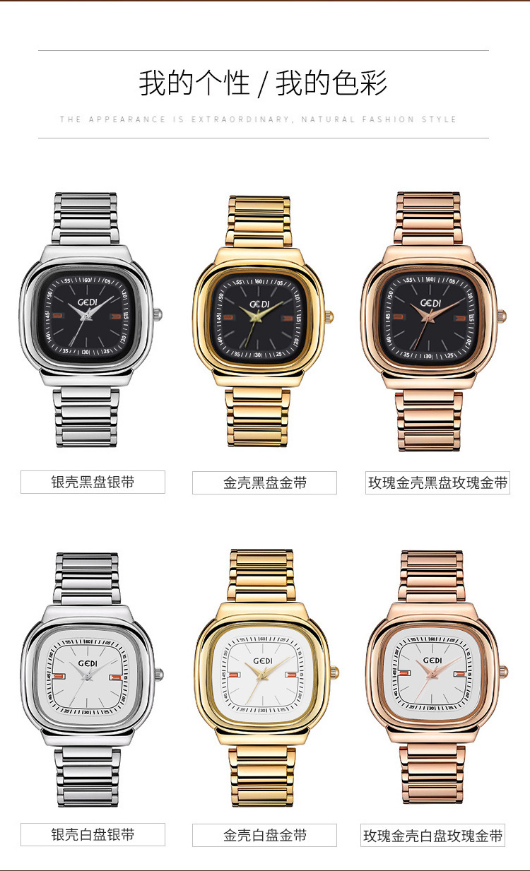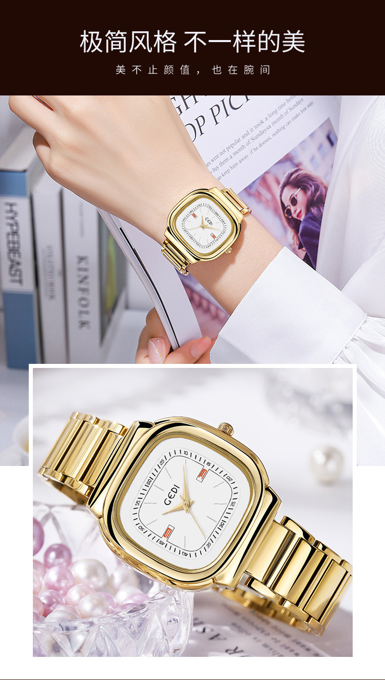 Chiếc đồng hồ dành cho nữ có mặt vuông lớn, thiết kế đơn giản và hiện đại. Sản phẩm sử dụng máy pin với độ chính xác cao. Đặc biệt, đồng hồ có khả năng chống nước tốt, giúp bạn thoải mái sử dụng khi rửa tay hay trong những ngày mưa. Vỏ và dây đeo được làm từ chất liệu bền đẹp. Bạn chỉ cần đeo trên tay, điều chỉnh dây cho vừa vặn và sử dụng bình thường. | Tên sản phẩm: Đồng Hồ Nữ Chống Nước Máy Pin, Máy Thạch Anh - Đồng Hồ Phụ Kiện Nữ | Mã sản phẩm: K1185 - Giá: 610.000đ | Mã nhà sản xuất: FODI-G02Hình ảnh sản phẩm