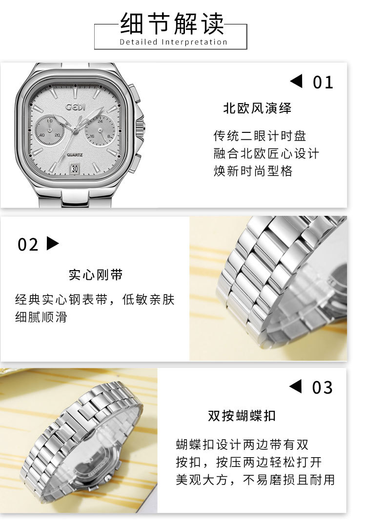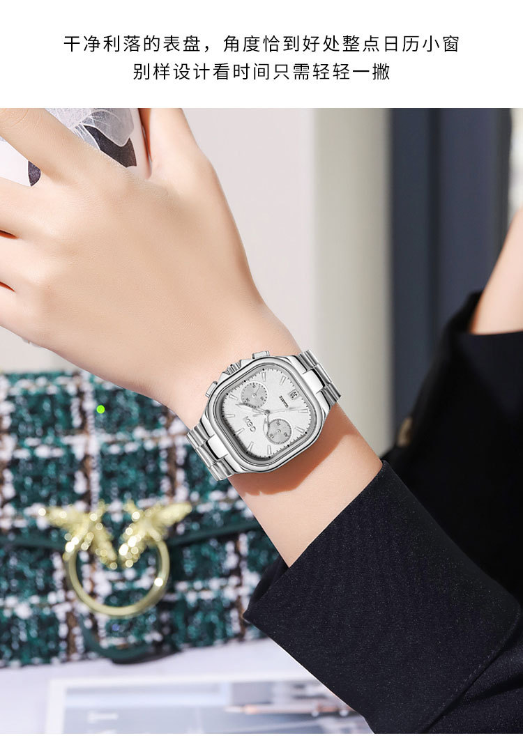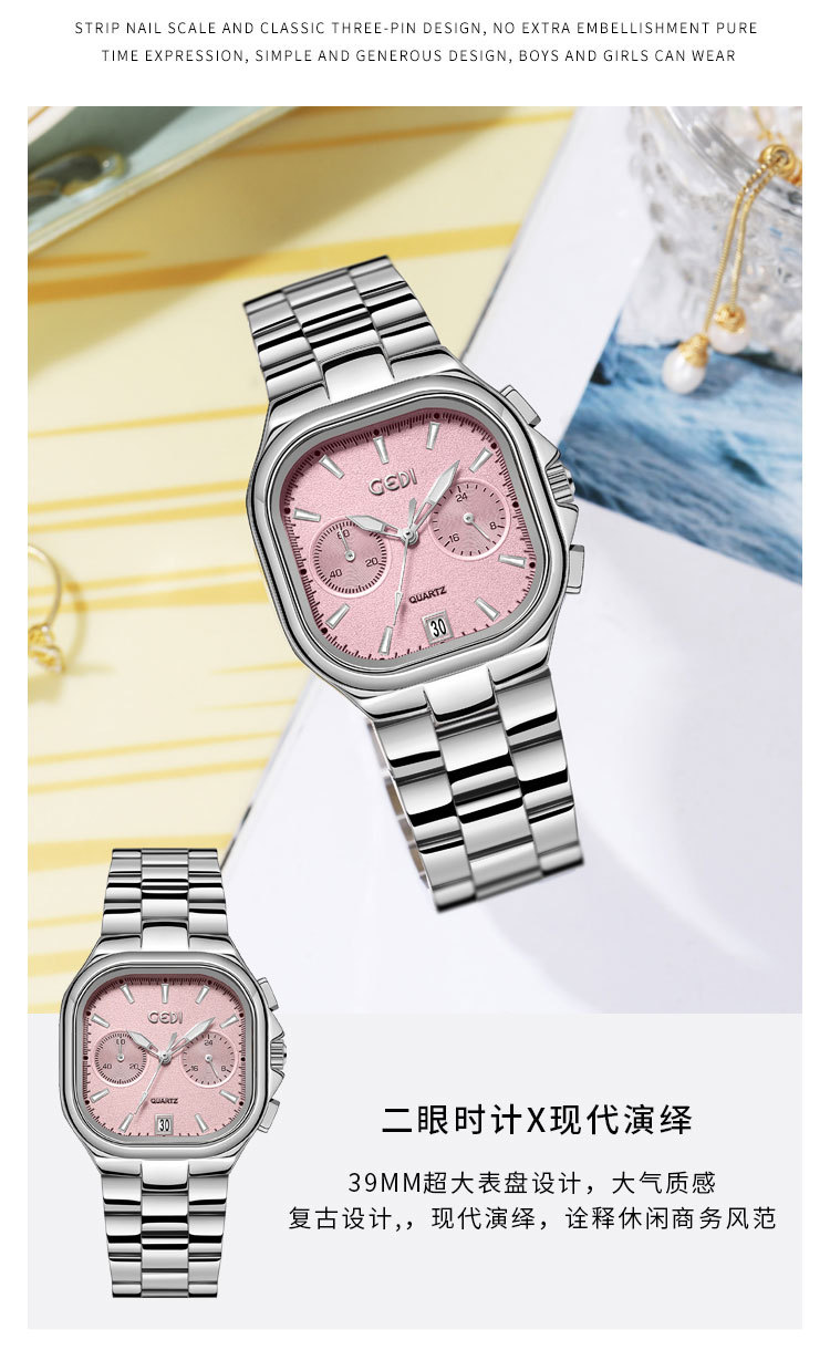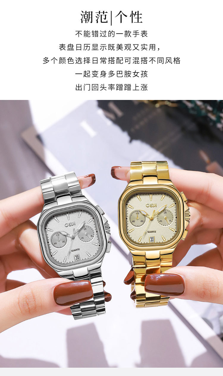 Chiếc đồng hồ nữ này có mặt vuông độc đáo, kèm lịch ngày tiện dụng và năm kim chỉ thời gian. Dây đeo bằng thép không gỉ chắc chắn, tôn lên vẻ ngoài thanh lịch. Sản phẩm phù hợp để đeo hằng ngày hoặc dùng trong các dịp gặp gỡ. Bạn chỉ cần vặn núm điều chỉnh để lên dây cót, sau đó xem giờ một cách dễ dàng. Kiểu dáng nhỏ gọn mang đến sự thoải mái khi sử dụng. | Tên sản phẩm: Đồng Hồ Nữ Quai Hợp Kim - Đồng Hồ Phụ Kiện Nữ | Mã sản phẩm: K1188 - Giá: 990.000đ | Mã nhà sản xuất: FODI-G03Hình ảnh sản phẩm