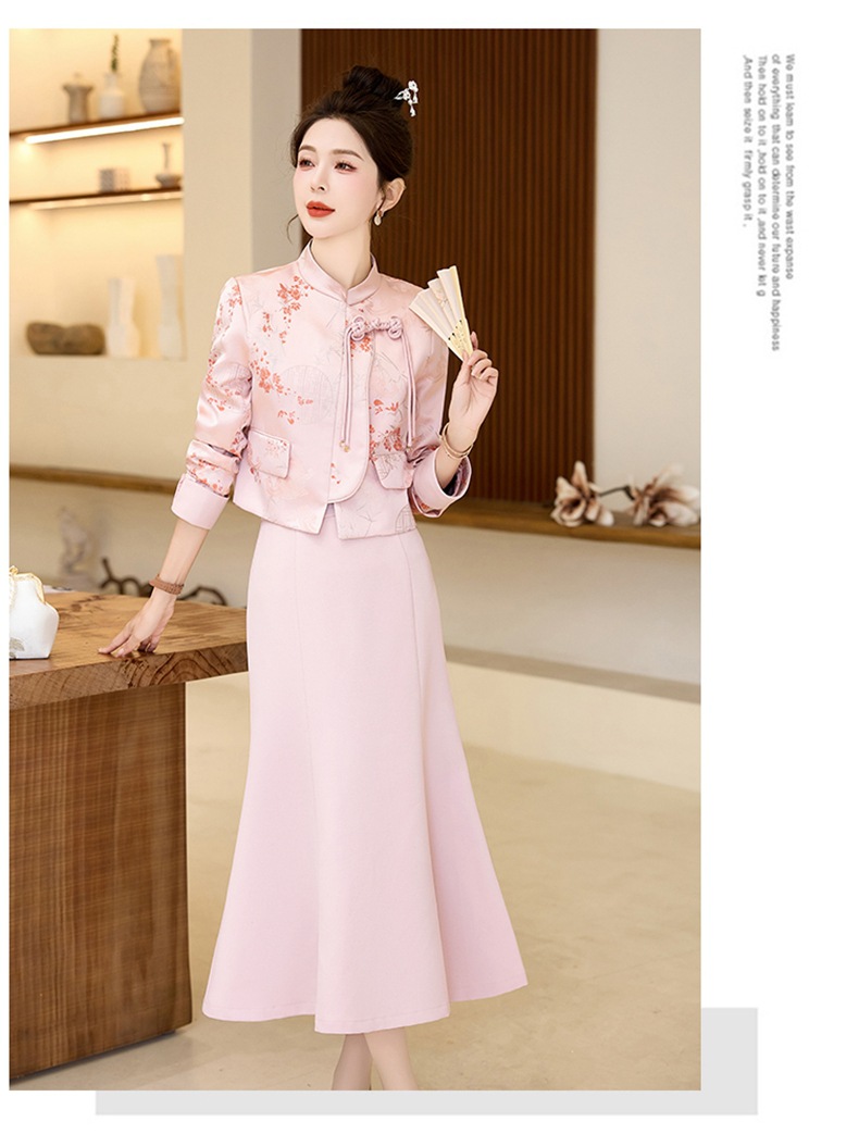Bộ trang phục nữ hai mảnh này mang đến vẻ đẹp thanh lịch và hiện đại. Áo khoác kiểu dáng cổ điển được điểm xuyết bằng nút thắt truyền thống, kết hợp cùng chân váy xòe nhẹ ở gấu tạo dáng như đuôi cá. Chất vải mềm mại, thoáng mát, phù hợp cho tiết trời xuân và thu. Bạn có thể mặc nguyên bộ để tạo phong cách chỉn chu, hoặc phối riêng từng món với các trang phục khác. | Tên sản phẩm: Áo Khoác Nữ Cả Bộ 2 Món Kiểu Đuôi Cá Hàng Mùa Xuân Thu Đông - Thời Trang Nữ | Mã sản phẩm: K1250 - Giá: 1.910.000đ | Mã nhà sản xuất: WODTH-G05Hình ảnh sản phẩm