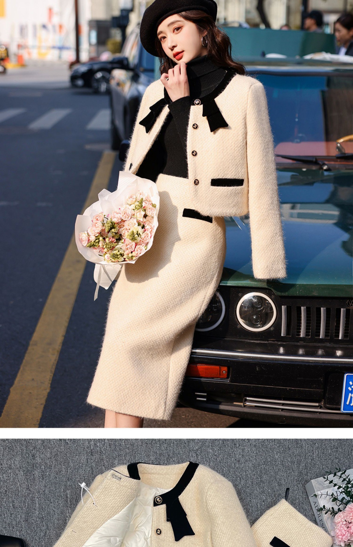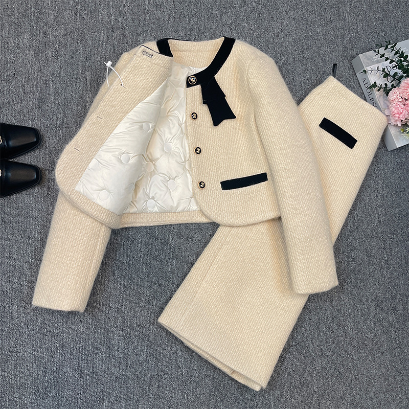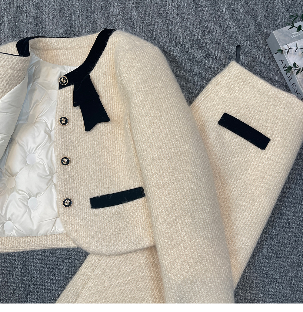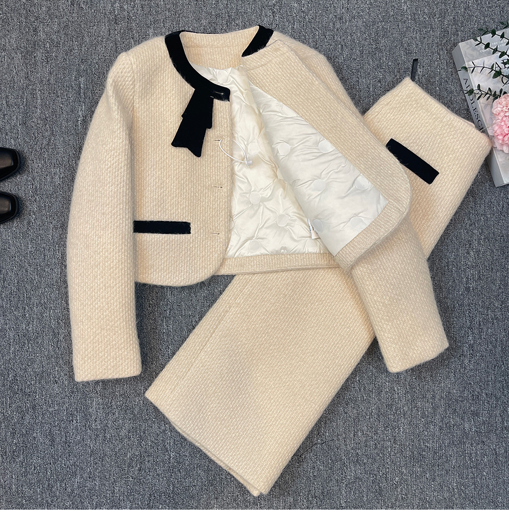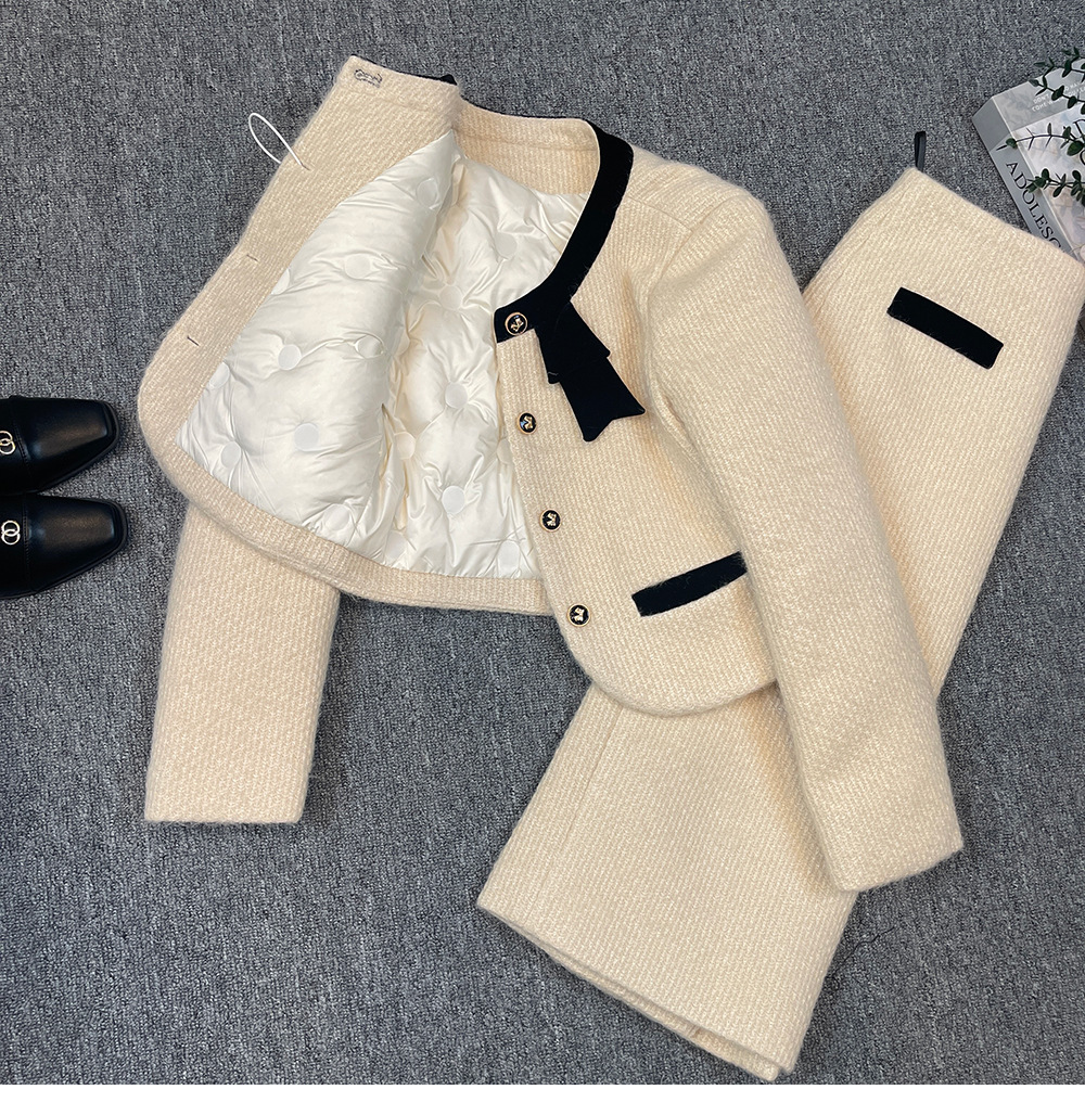 Bộ trang phục hai mảnh dành cho mùa đông, gồm áo khoác lông vũ ngắn và chân váy. Áo được thiết kế điểm nhấn nơ bướm xinh xắn phía trước, tạo vẻ dịu dàng. Chất liệu lông vũ giữ ấm tốt, mặc ấm áp mà không thấy nặng nề. Kết hợp cùng chân váy ôm vừa vặn, dễ dàng phối đồ. Có thể mặc nguyên bộ hoặc tách rời để phối với các trang phục khác, phù hợp cho nhiều dịp trong ngày lạnh. | Tên sản phẩm: Đồ Bộ Nữ Thắt Nơ Bướm Cả Bộ 2 Món Hàng Mùa Xuân Thu Đông - Thời Trang Nữ | Mã sản phẩm: K1252 - Giá: 2.990.000đ | Mã nhà sản xuất: WODTH-G06Hình ảnh sản phẩm