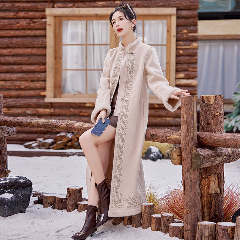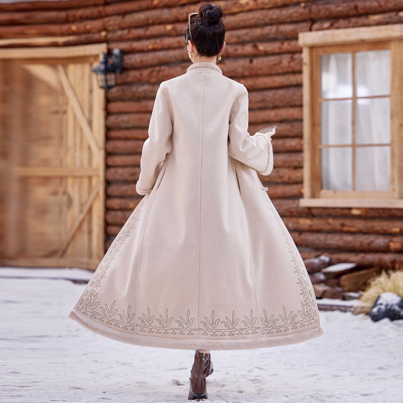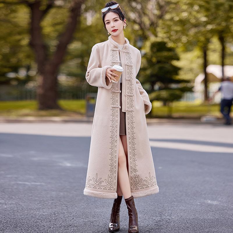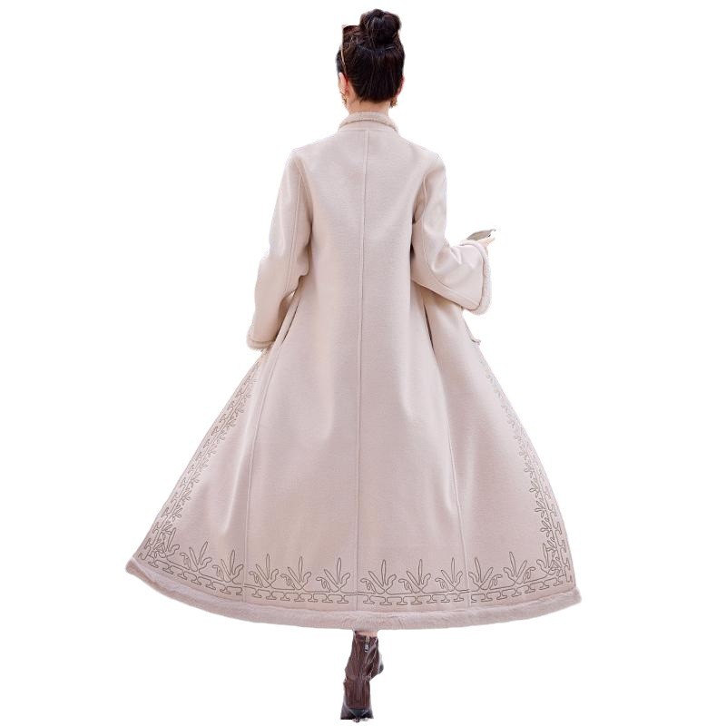 Áo khoác dài dành cho nữ, lấy cảm hứng từ nét đẹp truyền thống với các họa tiết thêu tay tinh xảo. Chất liệu dạ dày kép ấm áp, phù hợp cho những ngày thu đông. Kiểu dáng là sự kết hợp hài hòa giữa đường nét cổ điển và xu hướng hiện đại, tạo nên vẻ thanh lịch, nhẹ nhàng. Mặc cùng quần tây hoặc váy để tôn lên vẻ duyên dáng. | Tên sản phẩm: Áo Khoác Nữ Thêu Họa Tiết Hoa Hàng Mùa Xuân Thu Đông - Thời Trang Nữ | Mã sản phẩm: K1299 - Giá: 2.690.000đ | Mã nhà sản xuất: WODTH-G06Hình ảnh sản phẩm