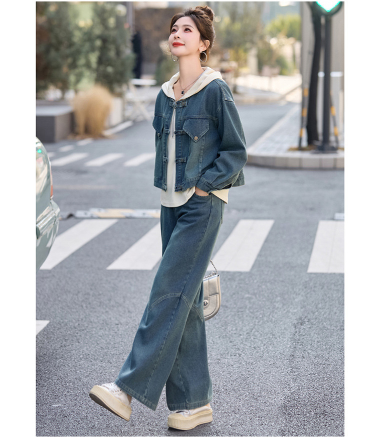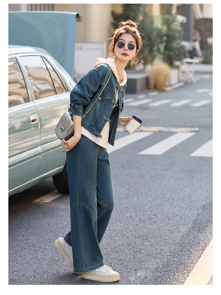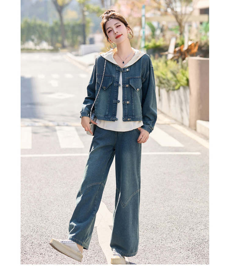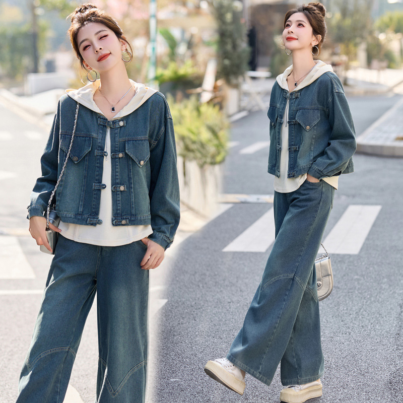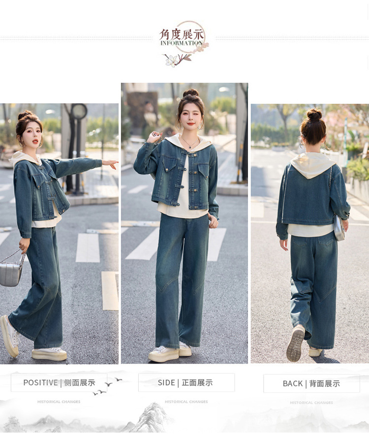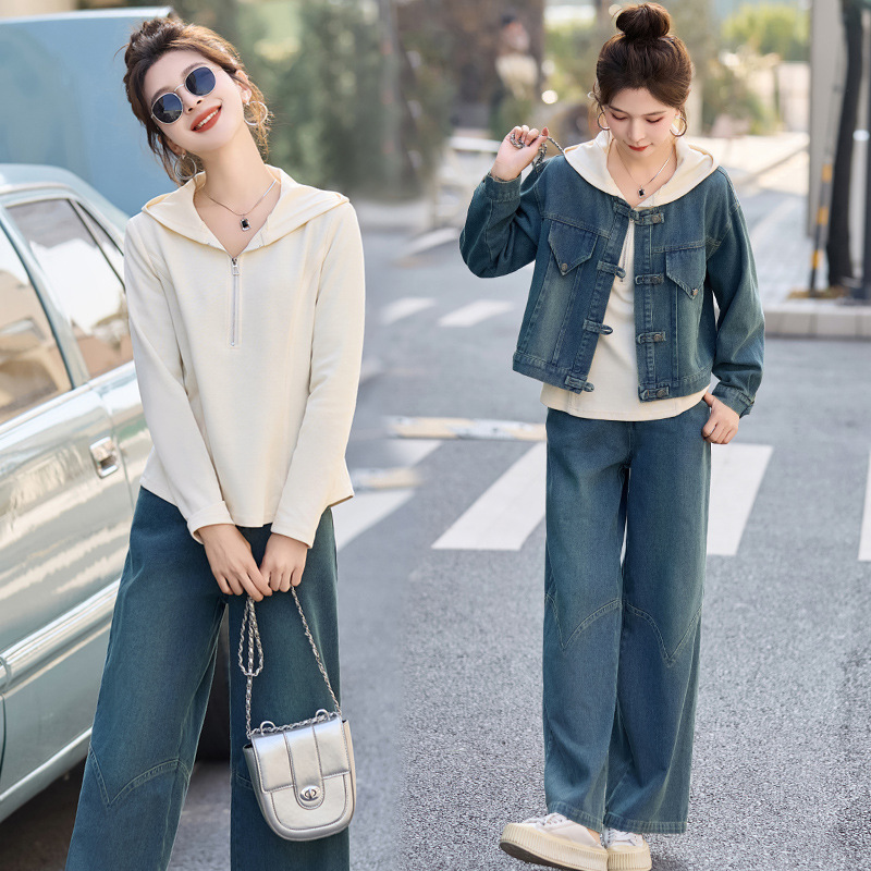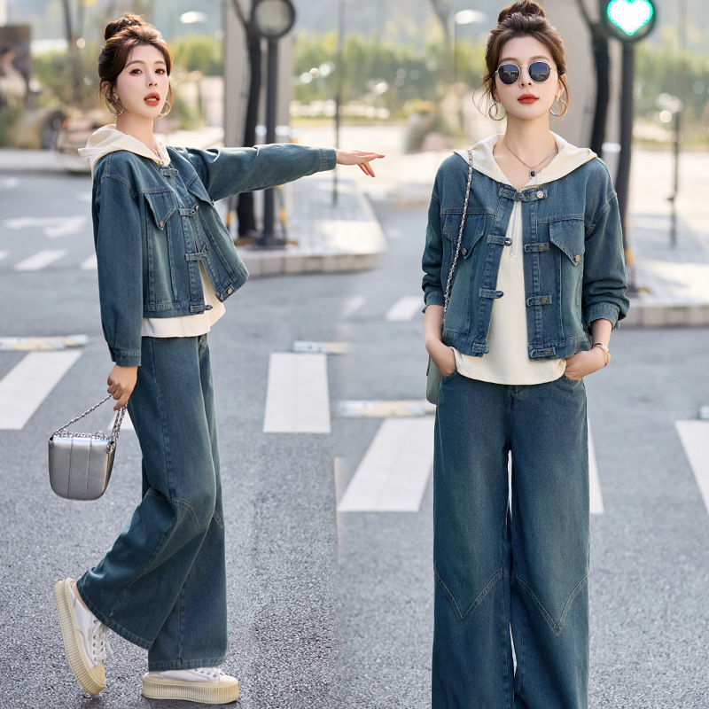 Bộ trang phục ba món với chất liệu denim dày dặn, mang phong cách trẻ trung và năng động. Thiết kế gồm áo khoác, áo hoodie có nón và quần short, tạo sự đồng bộ và dễ dàng phối đồ. Áo hoodie rộng rãi thoải mái, phù hợp cho các hoạt động hằng ngày. Bạn có thể mặc nguyên bộ hoặc tách riêng từng món để kết hợp với các trang phục khác. Đây là lựa chọn tiện lợi và thoải mái cho những ngày xuân se lạnh. | Tên sản phẩm: Đồ Bộ Nữ Chất Liệu Jean Bò Cả Bộ 3 Món Trông Trẻ Hơn Tuổi Hàng Mùa Xuân Thu Đông Phong Cách Hàn Quốc - Thời Trang Nữ | Mã sản phẩm: K1314 - Giá: 2.290.000đ | Mã nhà sản xuất: WODTH-G05Hình ảnh sản phẩm