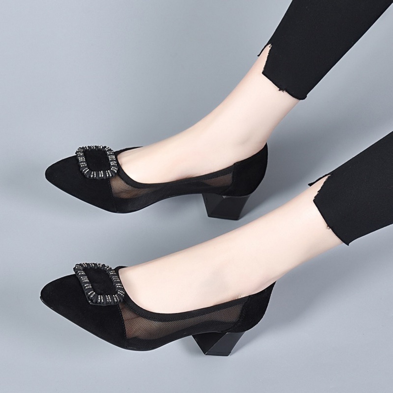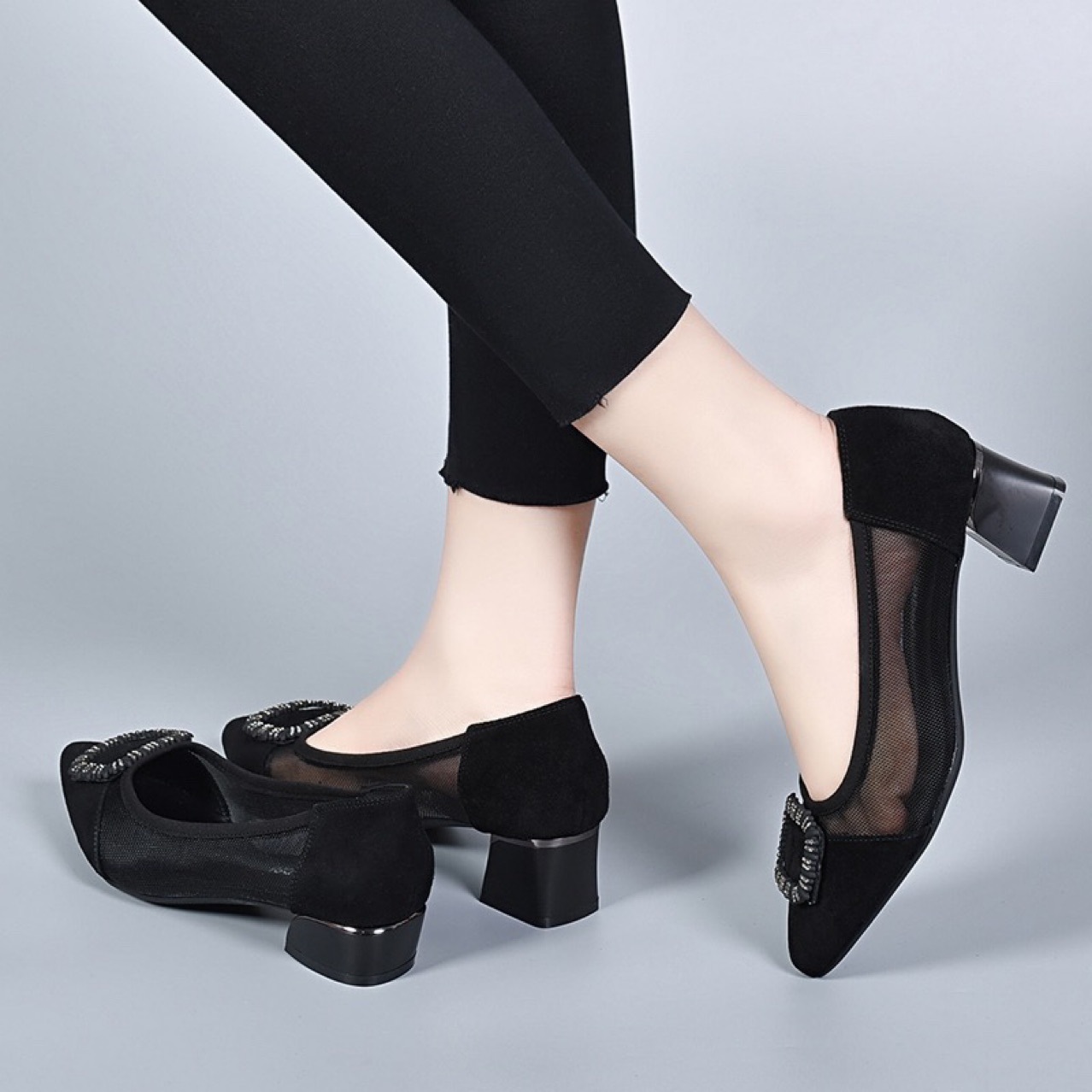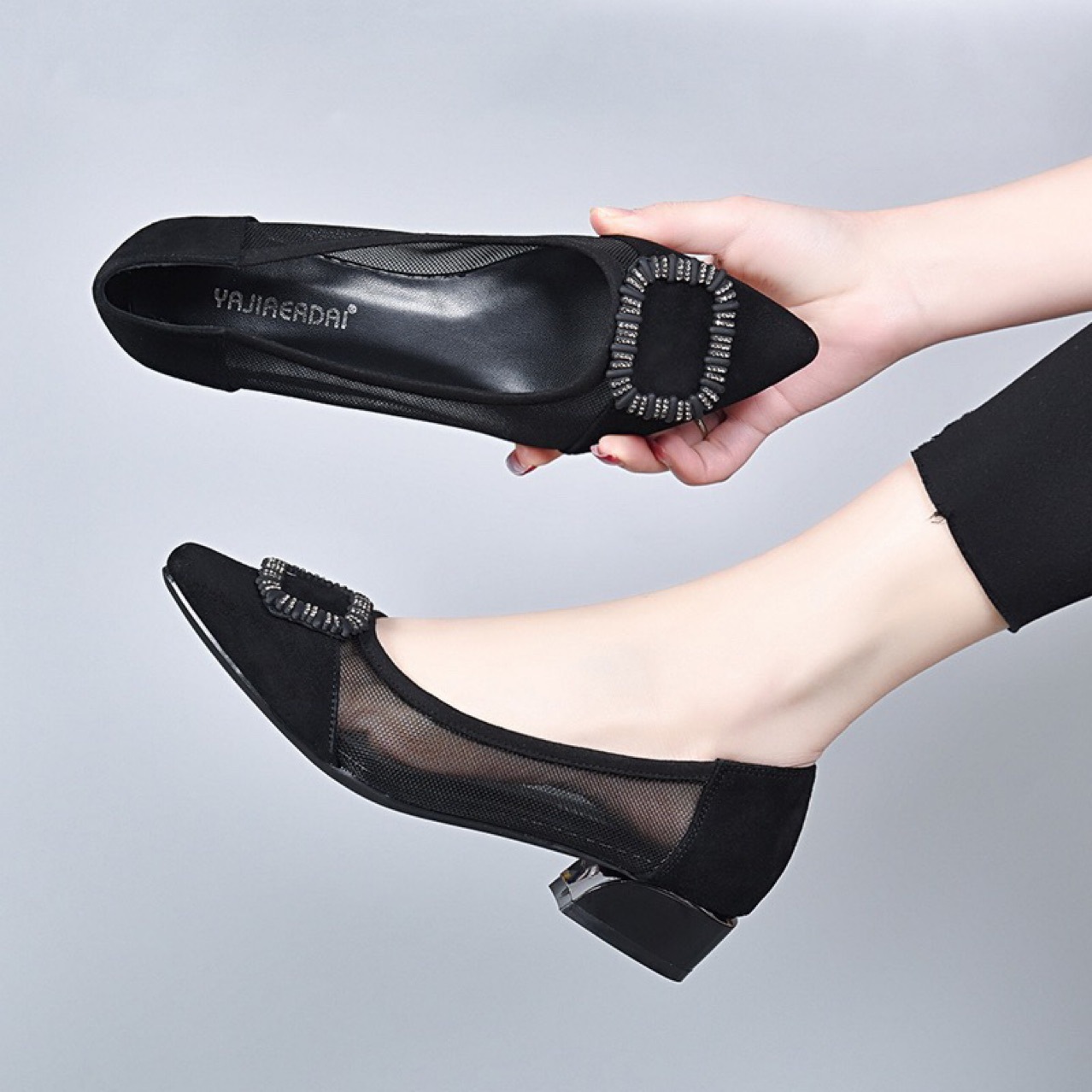 Giày da thật cho nữ, thiết kế mũi nhọn thanh thoát cùng khóa vuông gắn phía trước tạo điểm nhấn tinh tế. Chất liệu da mềm mại, bề mặt xước mờ cho cảm giác dễ chịu. Sở hữu phần đế thấp vừa phải, giúp nâng đỡ bàn chân và dễ dàng phối cùng nhiều trang phục khác nhau. Kiểu dáng phù hợp để sử dụng trong môi trường công sở hoặc những dịp đi chơi thường ngày. Sản phẩm mang đến sự thoải mái khi mang cả ngày. | Tên sản phẩm: Giày Da Nữ Chất Liệu Da Bò Mũi Nhọn Gót Vuông Hàng Mùa Xuân Thu Đông - Giày Dép Nữ | Mã sản phẩm: K1347 - Giá: 1.350.000đ | Mã nhà sản xuất: TOREHU-G04Hình ảnh sản phẩm