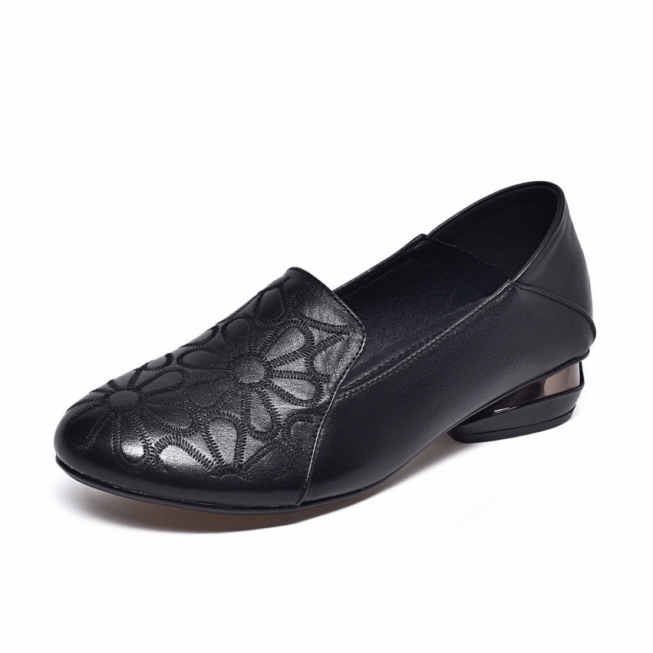 Đôi giày da thật dành cho nữ, được điểm xuyến hoa văn thêu tinh tế. Form giày ôm chân vừa vặn với phần mũi tròn thoải mái. Sản phẩm có hai kiểu gót thấp và đế bằng để bạn lựa chọn. Chất da mềm mại tạo cảm giác dễ chịu khi mang cả ngày. Bạn có thể phối hợp cùng nhiều loại trang phục như quần âu, váy liền để đi làm hoặc dạo phố. | Tên sản phẩm: Giày Da Nữ Chất Liệu Da Bò Mũi Tròn Gót Vuông Thêu Họa Tiết Hoa Hàng Mùa Xuân Thu Đông Trung Niên - Giày Dép Nữ | Mã sản phẩm: K1360 - Giá: 1.490.000đ | Mã nhà sản xuất: TOREHU-G04Hình ảnh sản phẩm
