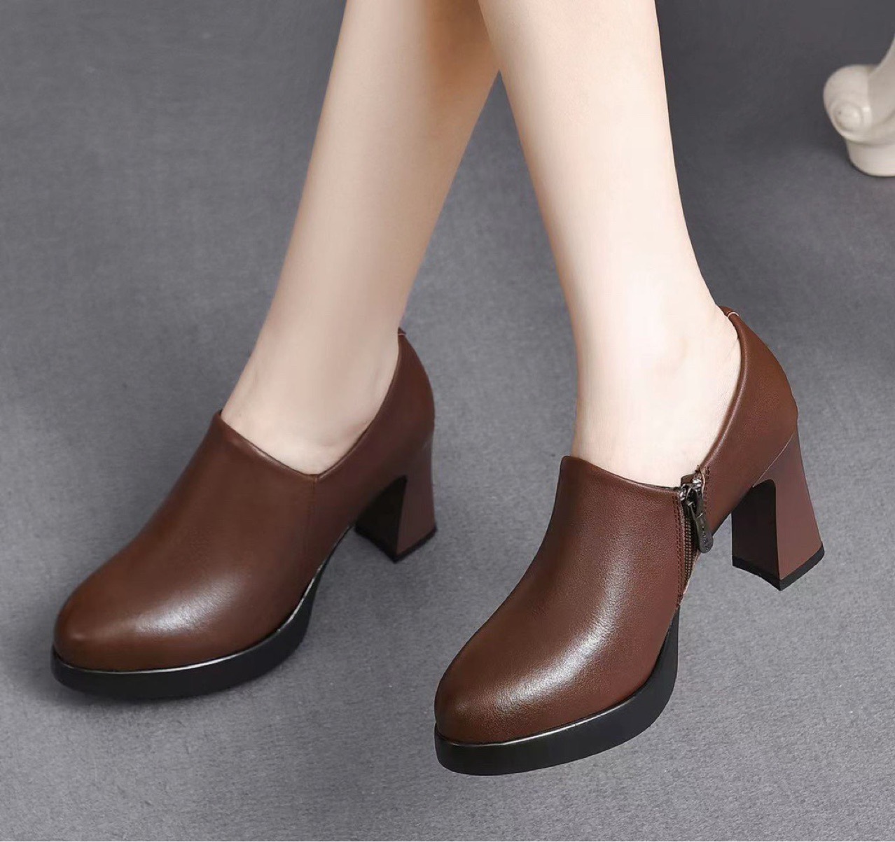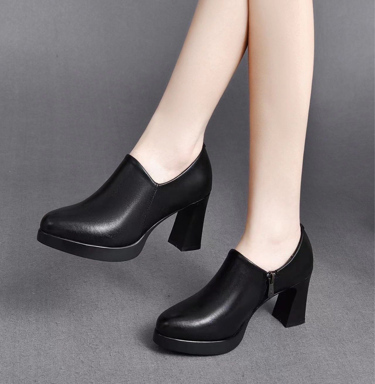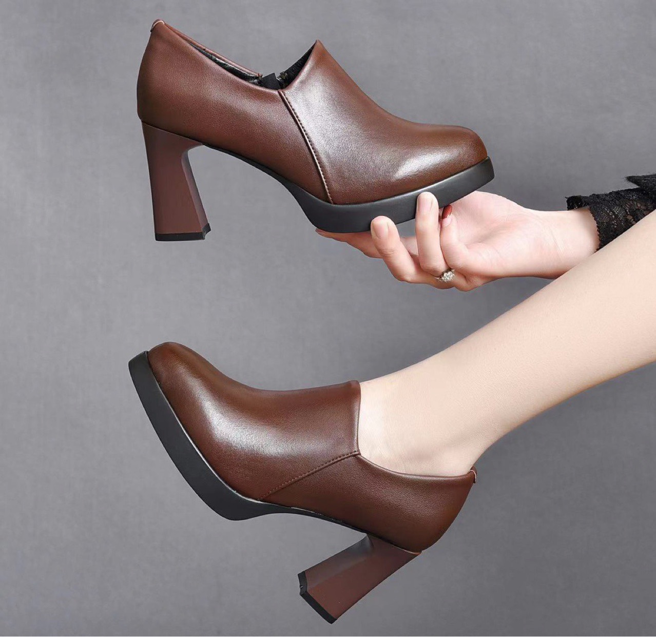Giày da thật cho nữ với phần gót thấp vững chãi, giúp tôn dáng một cách thoải mái. Sản phẩm có phần đế được làm dày hơn, hỗ trợ chống thấm nước và tăng độ êm ái khi di chuyển. Kiểu dáng cổ sâu ôm khít chân, phù hợp để đi làm hoặc dạo phố. Chỉ cần lau sạch bề mặt da bằng khăn mềm là bạn có thể giữ giày luôn bền đẹp. | Tên sản phẩm: Giày Cao Gót Nữ Chất Liệu Da Bò Gót Vuông Dày Ấm Hàng Mùa Xuân Thu Đông - Giày Dép Nữ | Mã sản phẩm: K1369 - Giá: 1.390.000đ | Mã nhà sản xuất: TOREHU-G04Hình ảnh sản phẩm