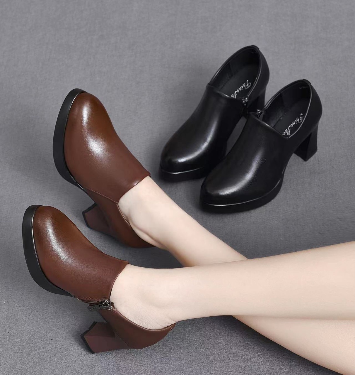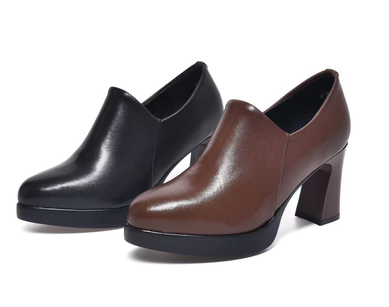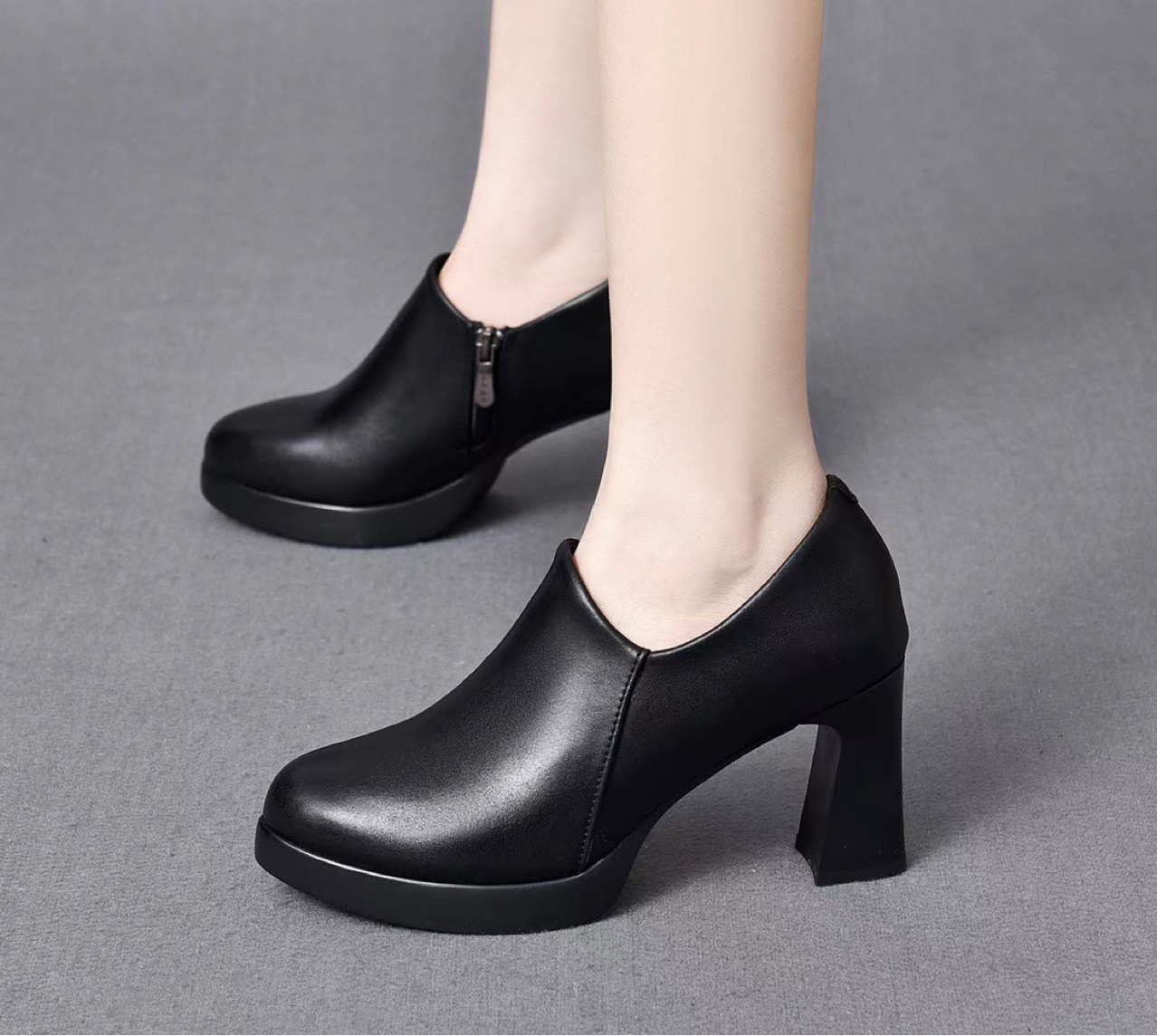 Giày da thật cho nữ với phần gót thấp vững chãi, giúp tôn dáng một cách thoải mái. Sản phẩm có phần đế được làm dày hơn, hỗ trợ chống thấm nước và tăng độ êm ái khi di chuyển. Kiểu dáng cổ sâu ôm khít chân, phù hợp để đi làm hoặc dạo phố. Chỉ cần lau sạch bề mặt da bằng khăn mềm là bạn có thể giữ giày luôn bền đẹp. | Tên sản phẩm: Giày Cao Gót Nữ Chất Liệu Da Bò Gót Vuông Dày Ấm Hàng Mùa Xuân Thu Đông - Giày Dép Nữ | Mã sản phẩm: K1369 - Giá: 1.390.000đ | Mã nhà sản xuất: TOREHU-G04Hình ảnh sản phẩm