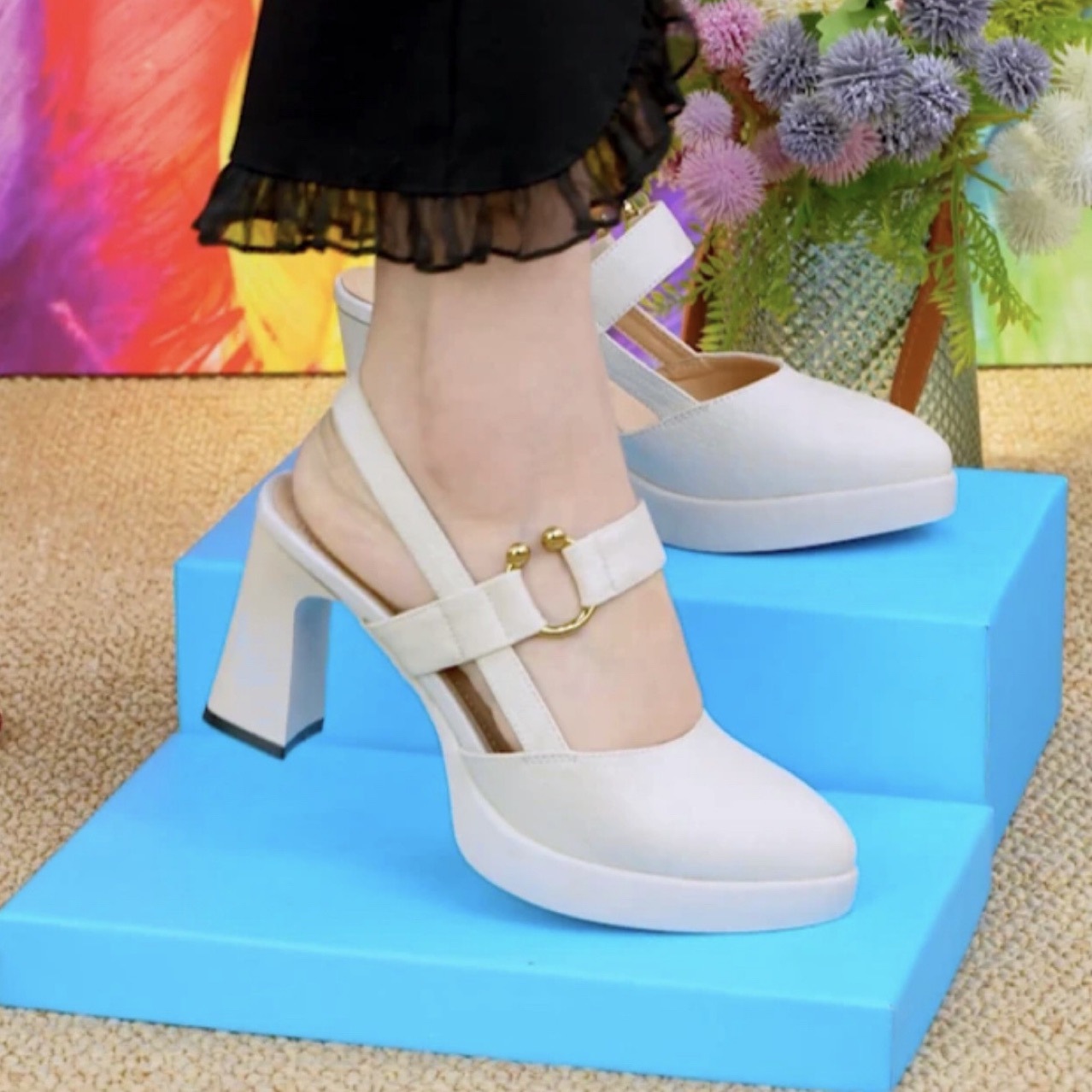 Giày sandal nữ thiết kế dáng hở mũi, phong cách nhẹ nhàng. Sản phẩm làm từ chất liệu da mềm, mang lại cảm giác dễ chịu. Dây qu ngang cùng phần gót chắc chắn giúp nâng đỡ bàn chân, tạo sự thoải mái khi di chuyển. Kiểu dáng thanh lịch, dễ dàng kết hợp với nhiều trang phục khác nhau như đầm, quần shorts. Sử dụng phù hợp cho các dịp đi chơi, dạo phố hoặc gặp gỡ bạn bè. | Tên sản phẩm: Giày Cao Gót Nữ Chất Liệu Da Bò Gót Vuông Hàng Mùa Hè - Giày Dép Nữ | Mã sản phẩm: K1448 - Giá: 1.350.000đ | Mã nhà sản xuất: TOREHU-G04Hình ảnh sản phẩm