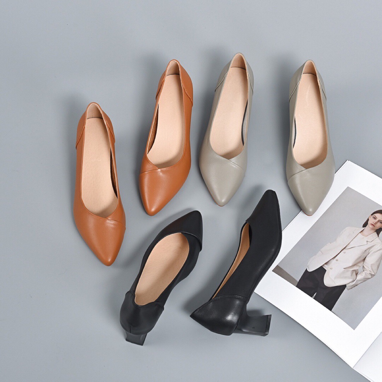 Giày búp mũi nhọn dành cho nữ, thiết kế cổ thấp tôn dáng. Mẫu giày sử dụng gót vuông vừa phải, giúp nâng đỡ bàn chân thoải mái khi di chuyển lâu. Kiểu dáng mang phong cách châu Âu nhẹ nhàng, phù hợp cho môi trường công sở hoặc dùng hàng ngày. Sản phẩm dễ dàng phối cùng nhiều loại trang phục như quần tây, chân váy. Sử dụng bằng cách xỏ chân vào và điều chỉnh qu hậu nếu có. | Tên sản phẩm: Giày Cao Gót Nữ Mũi Nhọn Gót Vuông Hàng Mùa Hè Đồ Công Sở - Giày Dép Nữ | Mã sản phẩm: K1477 - Giá: 1.390.000đ | Mã nhà sản xuất: TOREHU-G04Hình ảnh sản phẩm