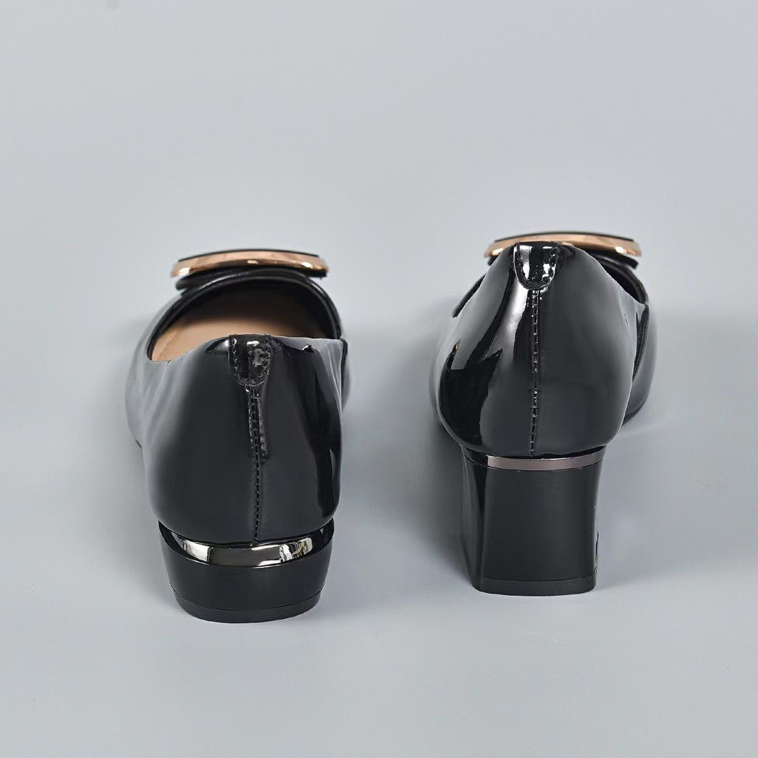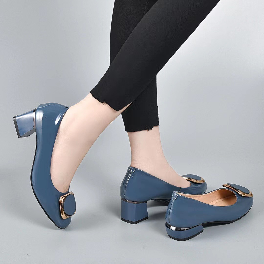 Giày cao gót nữ với phần gót được thiết kế vững chãi. Mẫu giày này có kiểu dáng mũi nhọn và cổ giày thấp, tạo cảm giác thanh thoát, phù hợp cho mùa hè. Chất liệu bề mặt bóng đẹp, dễ dàng vệ sinh. Bạn có thể phối cùng nhiều loại trang phục như quần âu, chân váy để tạo điểm nhấn nổi bật cho tổng thể. Đây là lựa chọn thiết thực cho những yêu thích phong cách nhẹ nhàng nhưng vẫn giữ được nét duyên dáng. | Tên sản phẩm: Giày Cao Gót Nữ Chất Liệu Da Bò Mũi Nhọn Gót Vuông Hàng Mùa Hè - Giày Dép Nữ | Mã sản phẩm: K1478 - Giá: 1.350.000đ | Mã nhà sản xuất: TOREHU-G04Hình ảnh sản phẩm