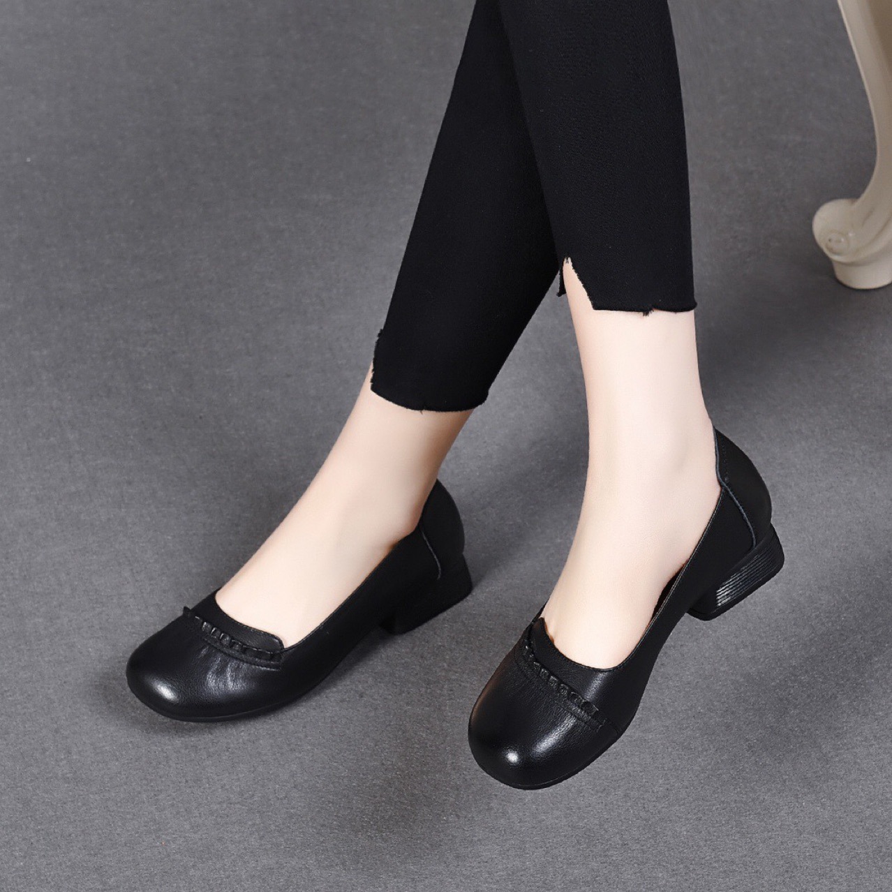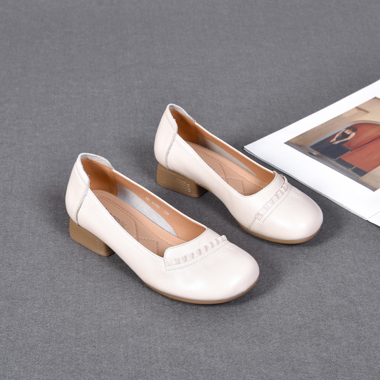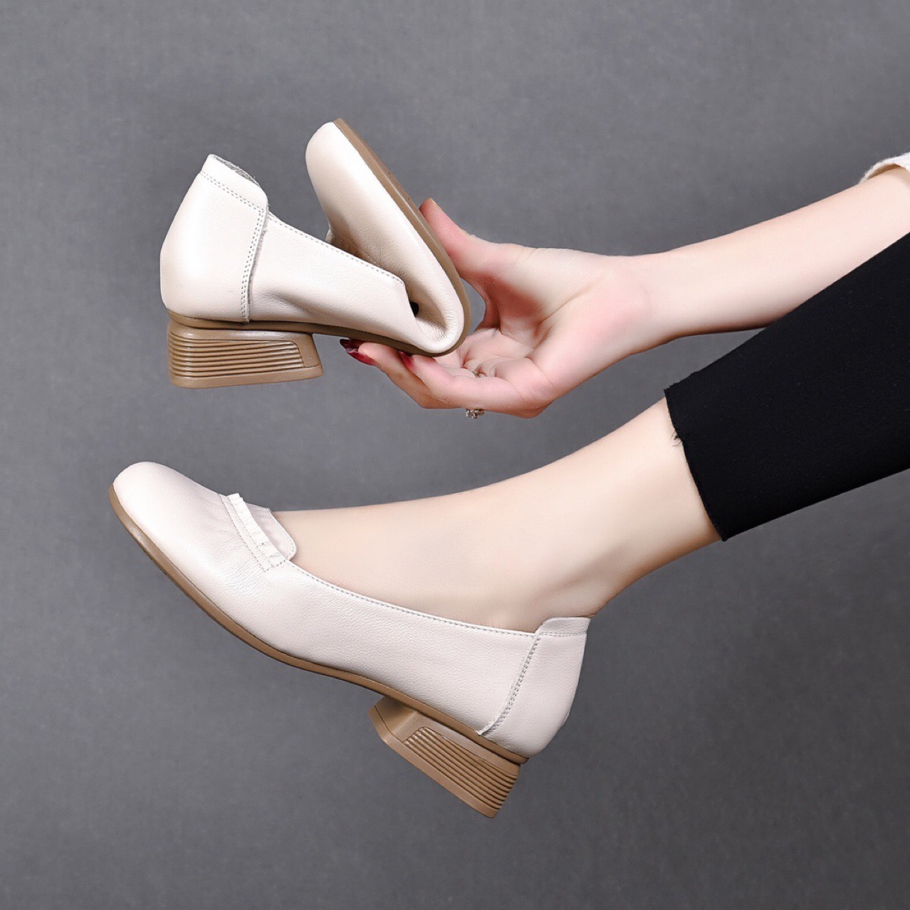 Đôi giày nữ có phần mũi tròn, ôm gọn bàn chân một cách nhẹ nhàng. Sản phẩm được làm từ chất liệu da mềm mại, tạo cảm giác dễ chịu khi mang. Đế giày nhẹ và linh hoạt, kết hợp cùng gót thấp vững chãi, giúp bạn thoải mái di chuyển cả ngày. Kiểu dáng cổ điển, dễ dàng phối hợp với nhiều loại trang phục khác nhau. Bạn có thể sử dụng hằng ngày cho công sở, dạo phố hay những dịp gặp gỡ thân tình. | Tên sản phẩm: Giày Cao Gót Nữ Chất Liệu Da Bò Mũi Tròn Đế Mềm Hàng Mùa Xuân Thu Đông - Giày Dép Nữ | Mã sản phẩm: K1502 - Giá: 1.350.000đ | Mã nhà sản xuất: TOREHU-G04Hình ảnh sản phẩm