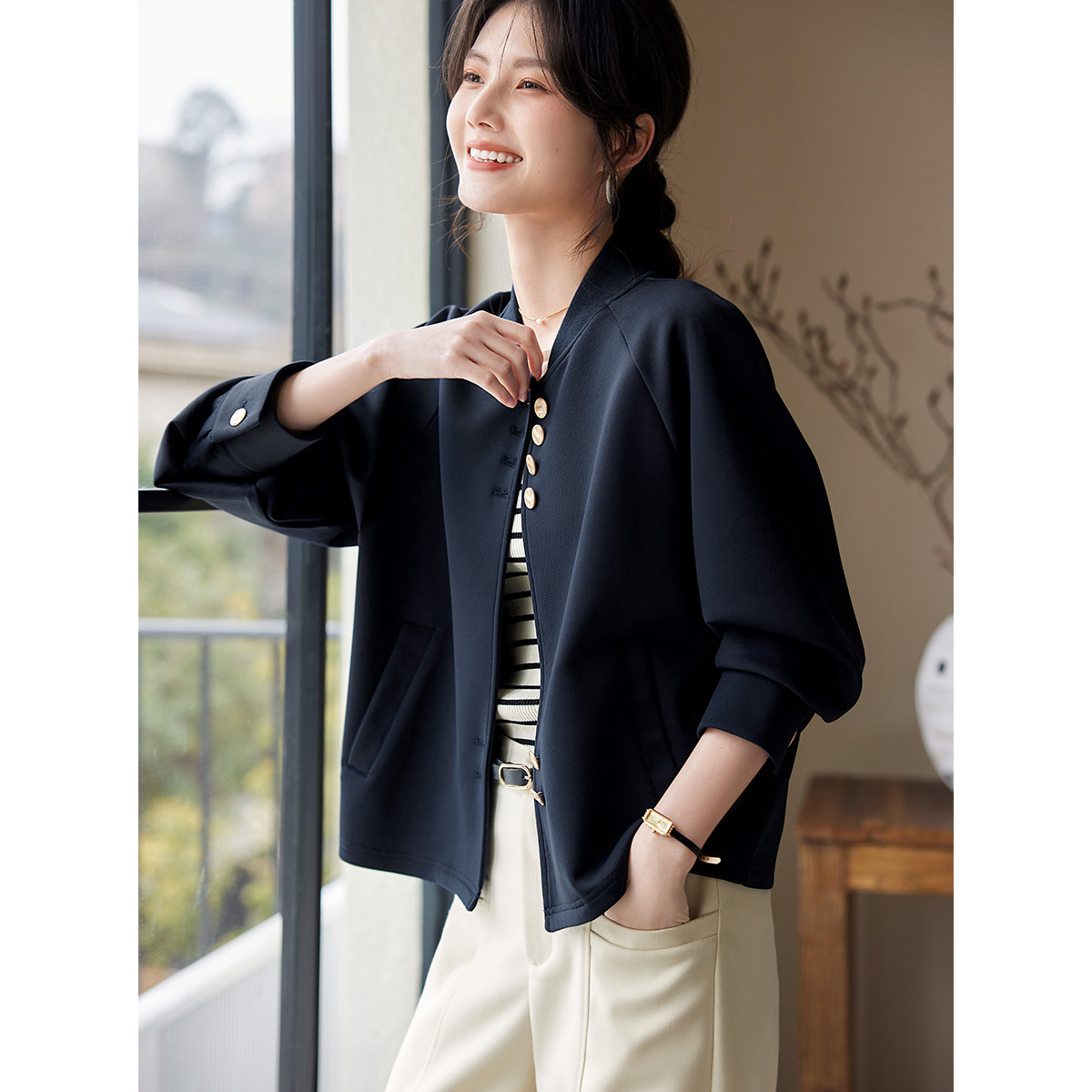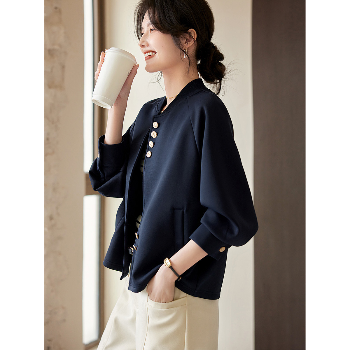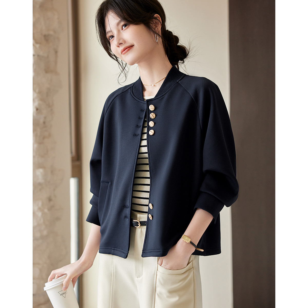 Áo khoác kiểu thể thao dành cho nữ, thiết kế tay ráp liền thân tạo cảm giác thoải mái, dễ chịu khi mặc. Chất vải dạng hạt tròn nhẹ nhàng, thông thoáng, phù hợp cho tiết trời mùa xuân. Kiểu dáng trẻ trung, năng động, dễ dàng kết hợp với nhiều loại trang phục khác nhau như quần jeans hay chân váy. Mặc kèm áo thun bên trong để tạo nên vẻ ngoài cá tính và đầy phong cách. | Tên sản phẩm: Áo Khoác Nữ Hàng Mùa Xuân Thu Đông - Thời Trang Nữ | Mã sản phẩm: K1527 - Giá: 600.000đ | Mã nhà sản xuất: SHREIA-G01Hình ảnh sản phẩm