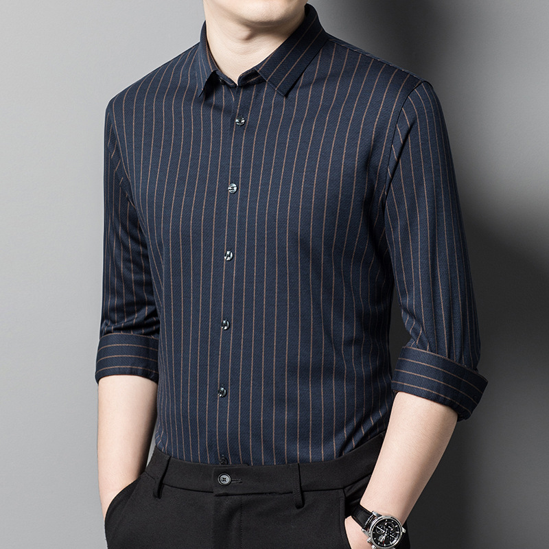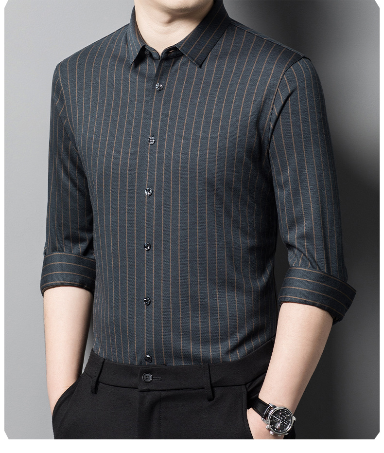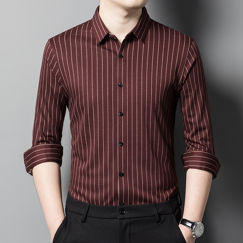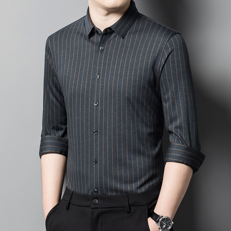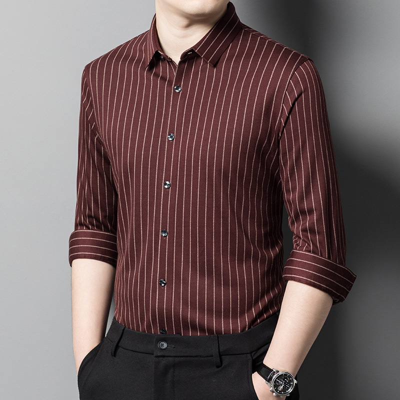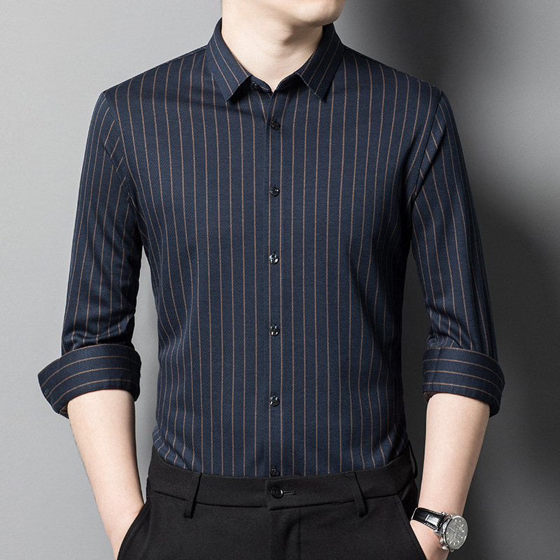 Áo sơ mi nam dành cho các dịp thường ngày và công sở. Sản phẩm được làm từ chất liệu len ấm áp, phù hợp mặc trong tiết trời thu đông. Kiểu dáng kẻ sọc lịch sự, dễ dàng phối cùng nhiều trang phục khác. Đặc biệt, áo có khả năng hạn chế nhăn tốt, giúp giữ phom áo luôn gọn gàng sau khi giặt. Bạn có thể mặc trực tiếp hoặc kết hợp bên trong áo khoác để giữ ấm. | Tên sản phẩm: Áo Sơ Mi Nam Hàng Mùa Xuân Thu Đông Trung Niên - Thời Trang Nam | Mã sản phẩm: K1544 - Giá: 2.670.000đ | Mã nhà sản xuất: SHRYCT-G06Hình ảnh sản phẩm
