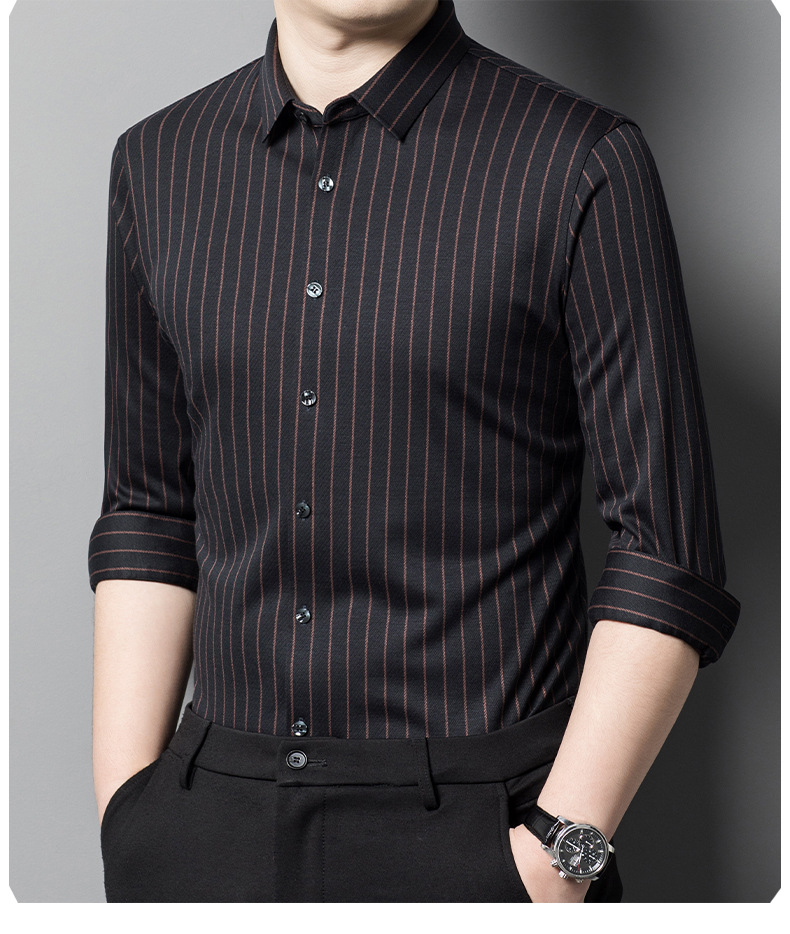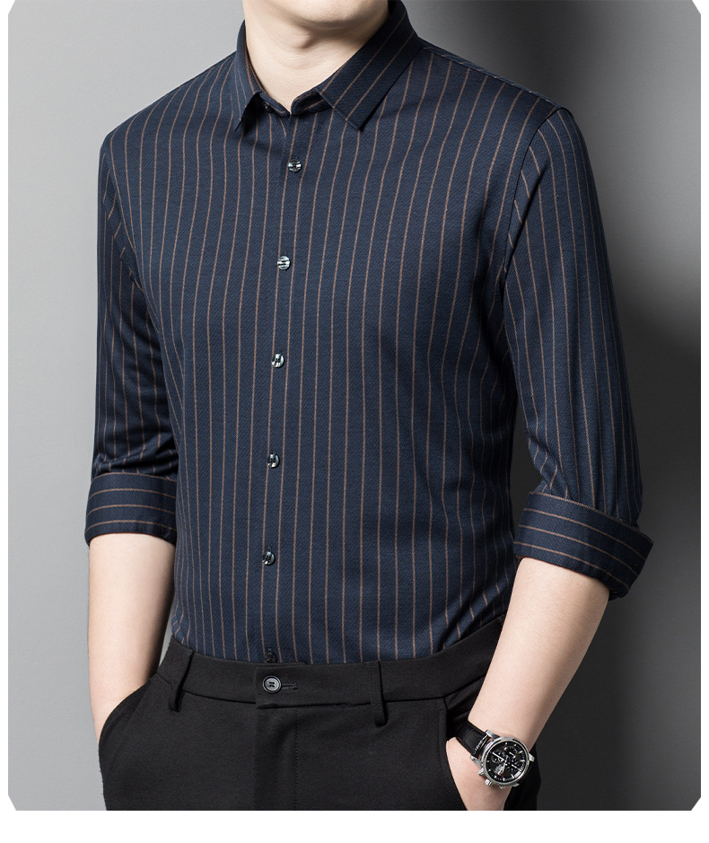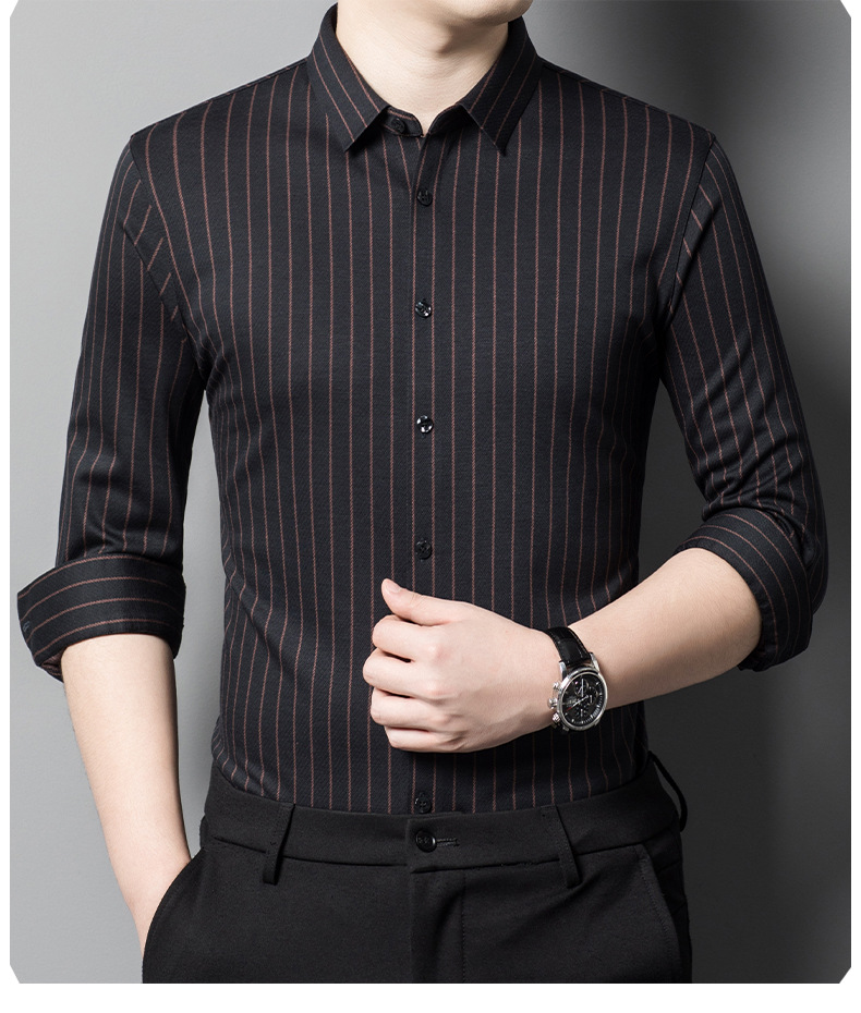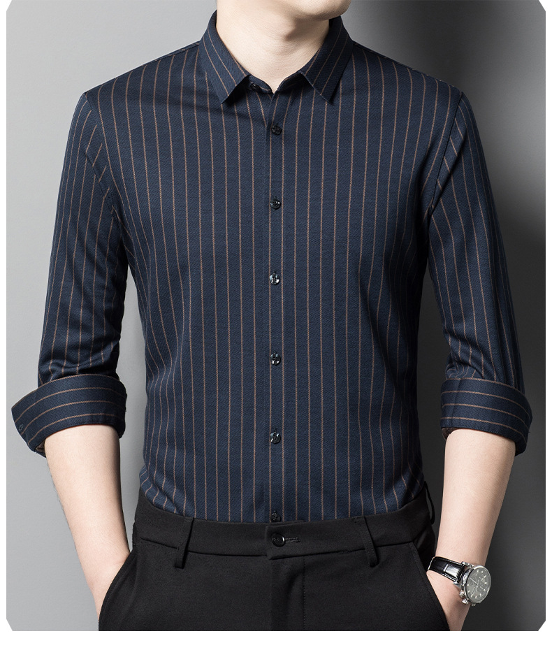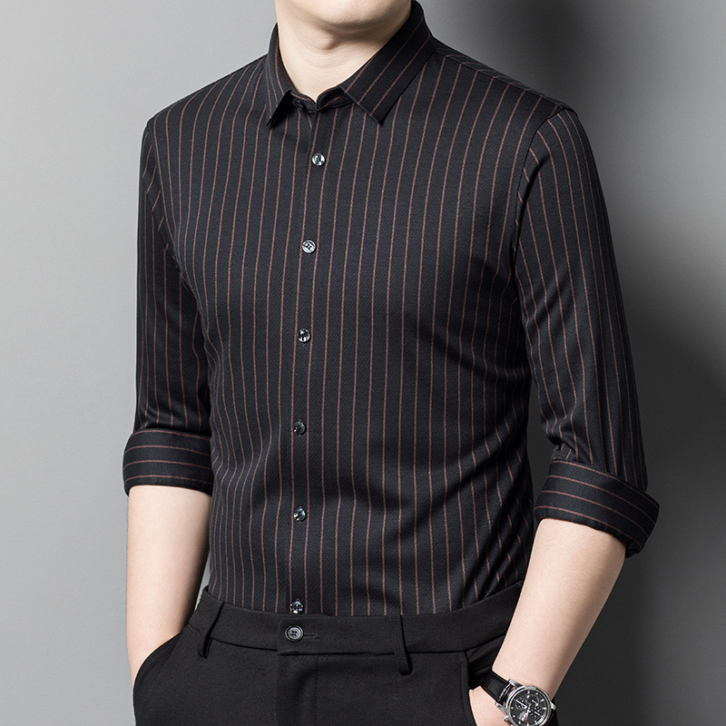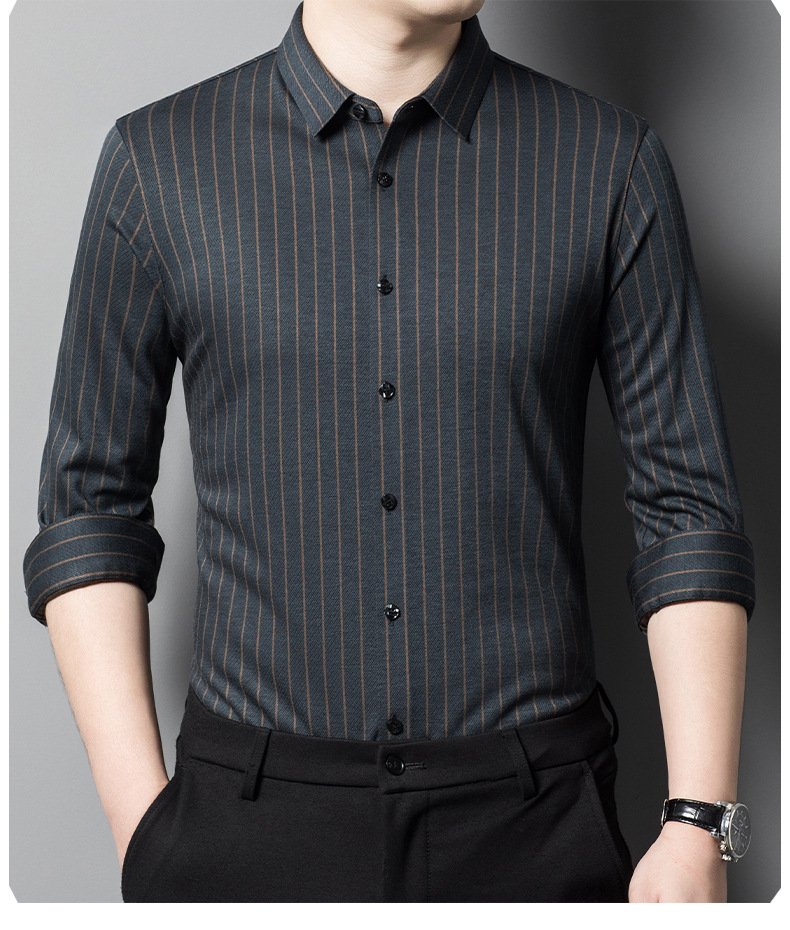 Áo sơ mi nam dành cho các dịp thường ngày và công sở. Sản phẩm được làm từ chất liệu len ấm áp, phù hợp mặc trong tiết trời thu đông. Kiểu dáng kẻ sọc lịch sự, dễ dàng phối cùng nhiều trang phục khác. Đặc biệt, áo có khả năng hạn chế nhăn tốt, giúp giữ phom áo luôn gọn gàng sau khi giặt. Bạn có thể mặc trực tiếp hoặc kết hợp bên trong áo khoác để giữ ấm. | Tên sản phẩm: Áo Sơ Mi Nam Hàng Mùa Xuân Thu Đông Trung Niên - Thời Trang Nam | Mã sản phẩm: K1544 - Giá: 2.670.000đ | Mã nhà sản xuất: SHRYCT-G06Hình ảnh sản phẩm