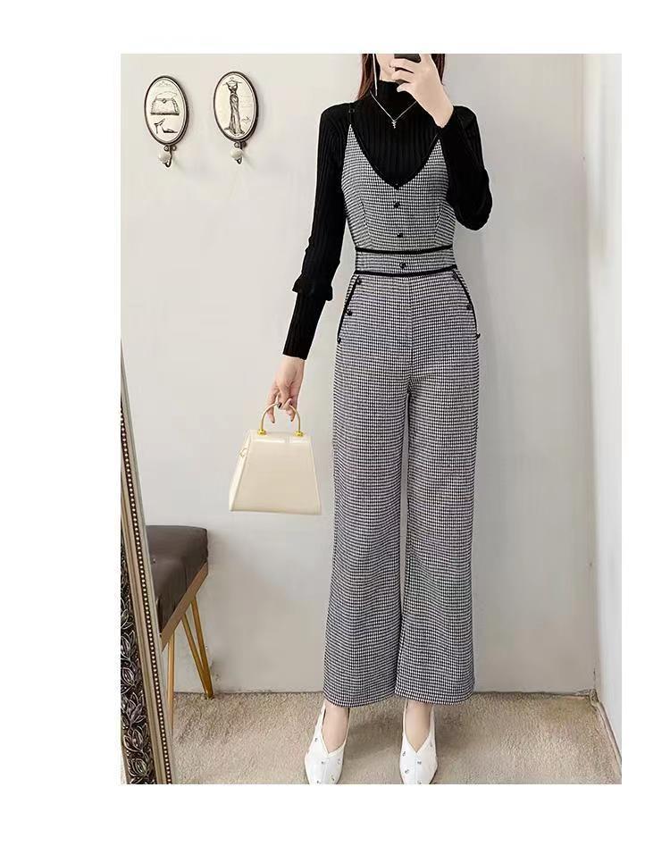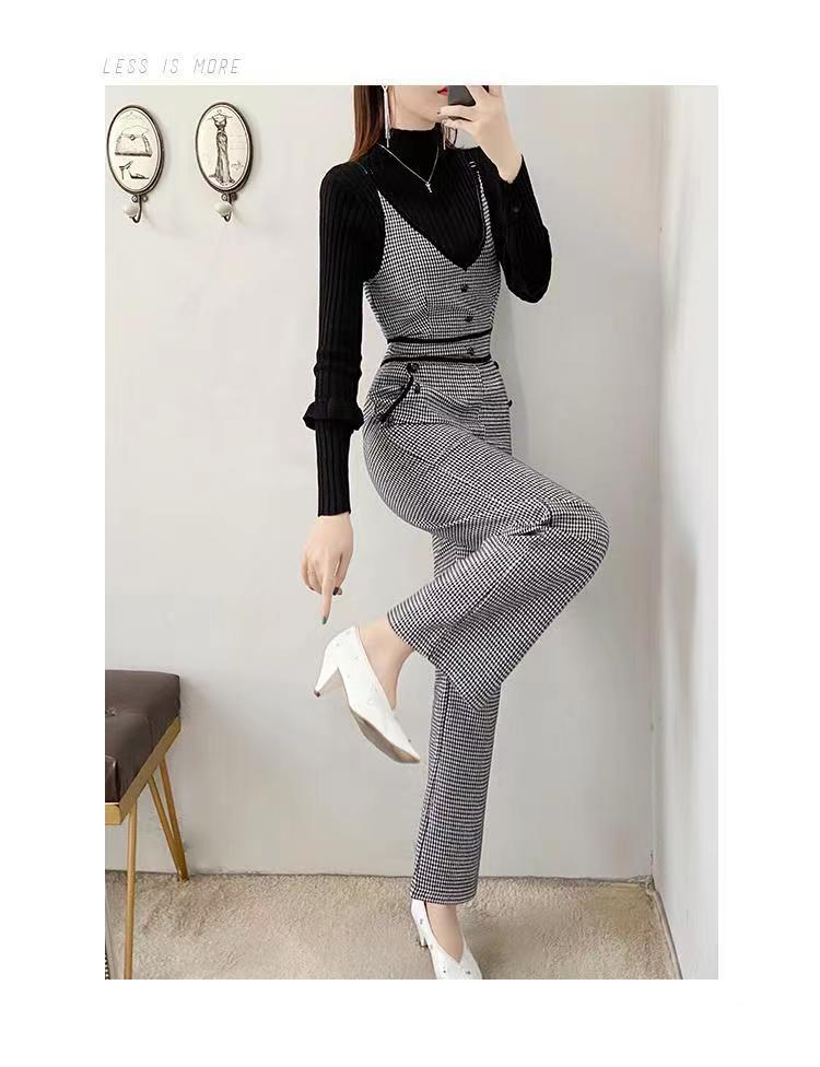 Bộ trang phục này gồm một đầm yếm và một áo len dệt mặc bên trong. Đầm yếm có họa tiết ô vuông, chất vải dày dặn giữ ấm tốt, phù hợp cho mùa đông. Kiểu dáng theo phong cách trẻ trung, dễ phối đồ. Đi kèm là áo len dệt màu đen, ôm vừa vặn, mặc bên trong làm nổi bật chiếc đầm. Có thể mặc bộ này đi làm, đi chơi hoặc dự tiệc nhẹ. | Tên sản phẩm: Áo Len Nữ Áo Len Kẻ Caro Kẻ Caro Hàng Mùa Xuân Thu Đông Phong Cách Hàn Quốc - Thời Trang Nữ | Mã sản phẩm: K1580 - Giá: 590.000đ | Mã nhà sản xuất: SHREIA-G01Hình ảnh sản phẩm