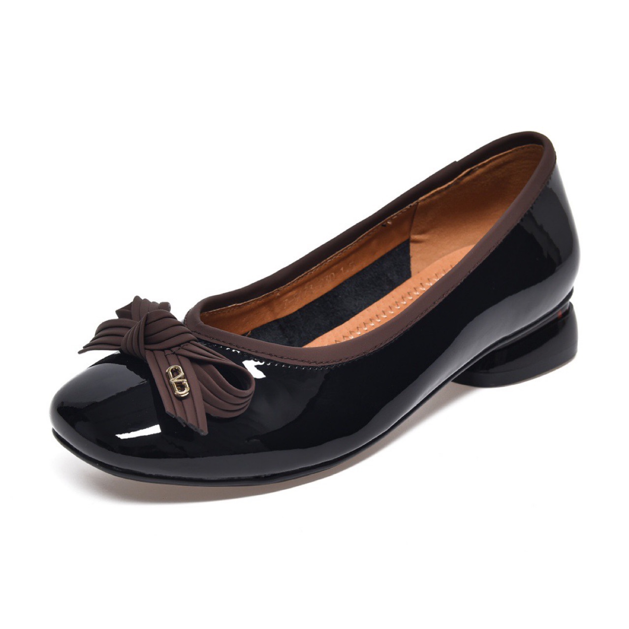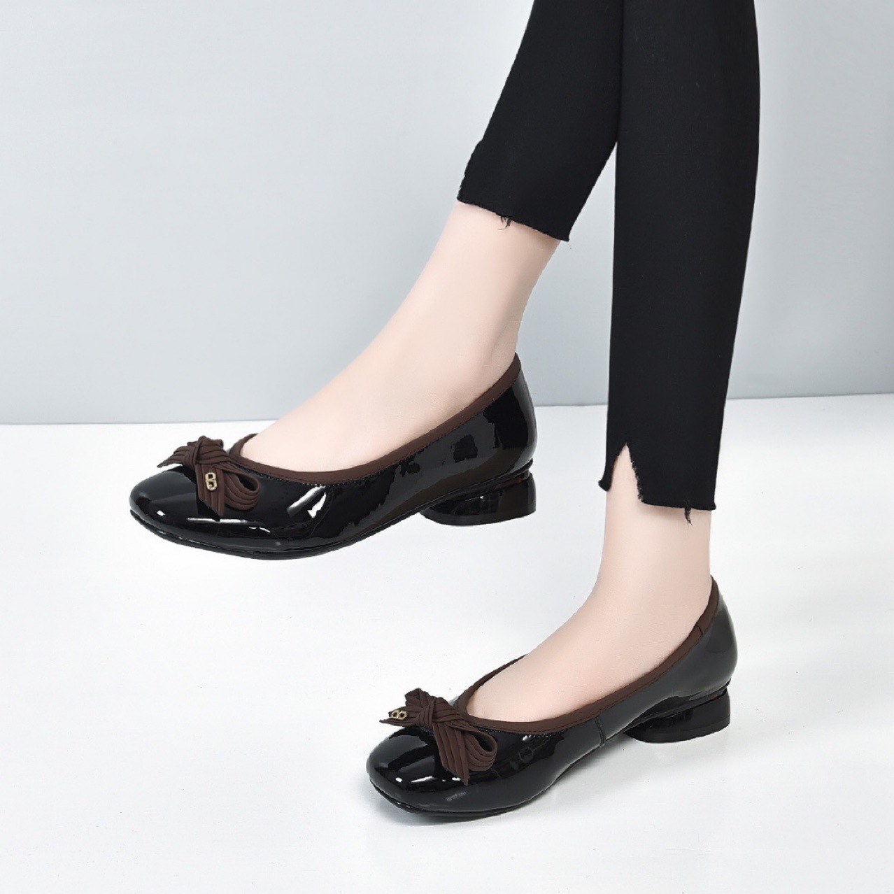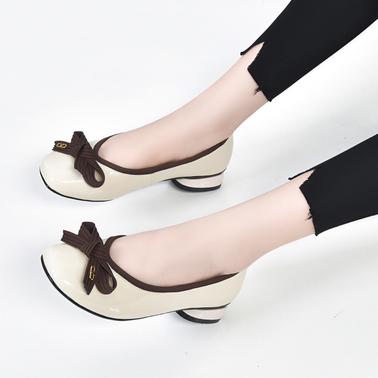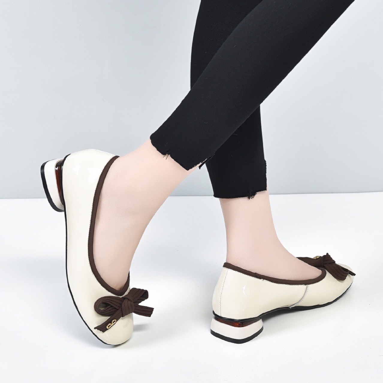Giày bệt nữ dáng dễ thương, kiểu hở mũi với phần nơ trang trí nhỏ xinh ở phía trước. Sản phẩm được làm từ chất liệu da mềm mại, ôm chân nhẹ nhàng và tạo cảm giác dễ chịu khi mang trong thời gian dài. Đế thấp vừa phải giúp bạn thoải mái di chuyển mà không gây mỏi chân. Đây là mẫu giày phù hợp để kết hợp cùng nhiều loại trang phục khác nhau như quần jeans, váy hay quần tây cho các hoạt động thường ngày. Bạn có thể sử dụng ngay mà không cần phải cộng thêm miếng lót nào. | Tên sản phẩm: Giày Cao Gót Nữ Chất Liệu Da Bò Thắt Nơ Bướm Mũi Tròn - Giày Dép Nữ | Mã sản phẩm: K1685 - Giá: 1.300.000đ | Mã nhà sản xuất: TOREHU-G04Hình ảnh sản phẩm