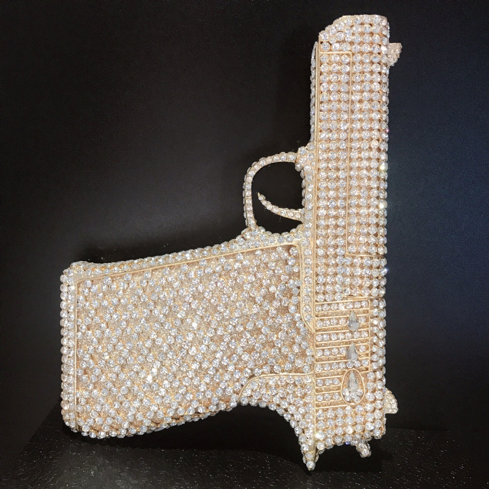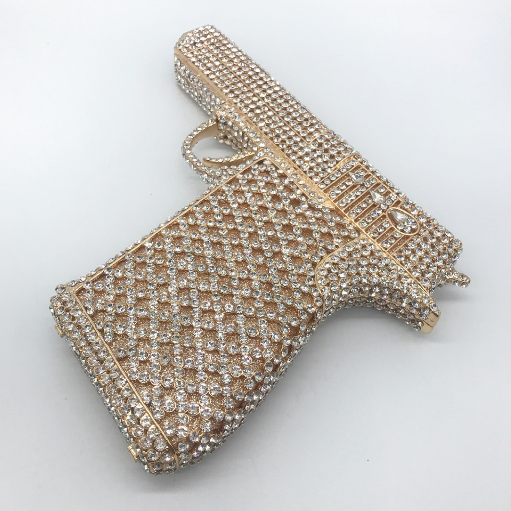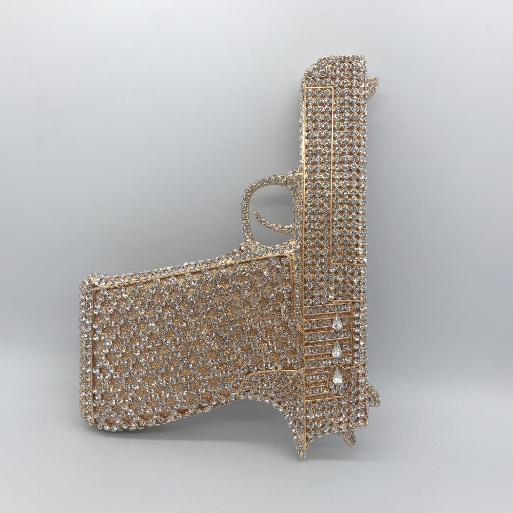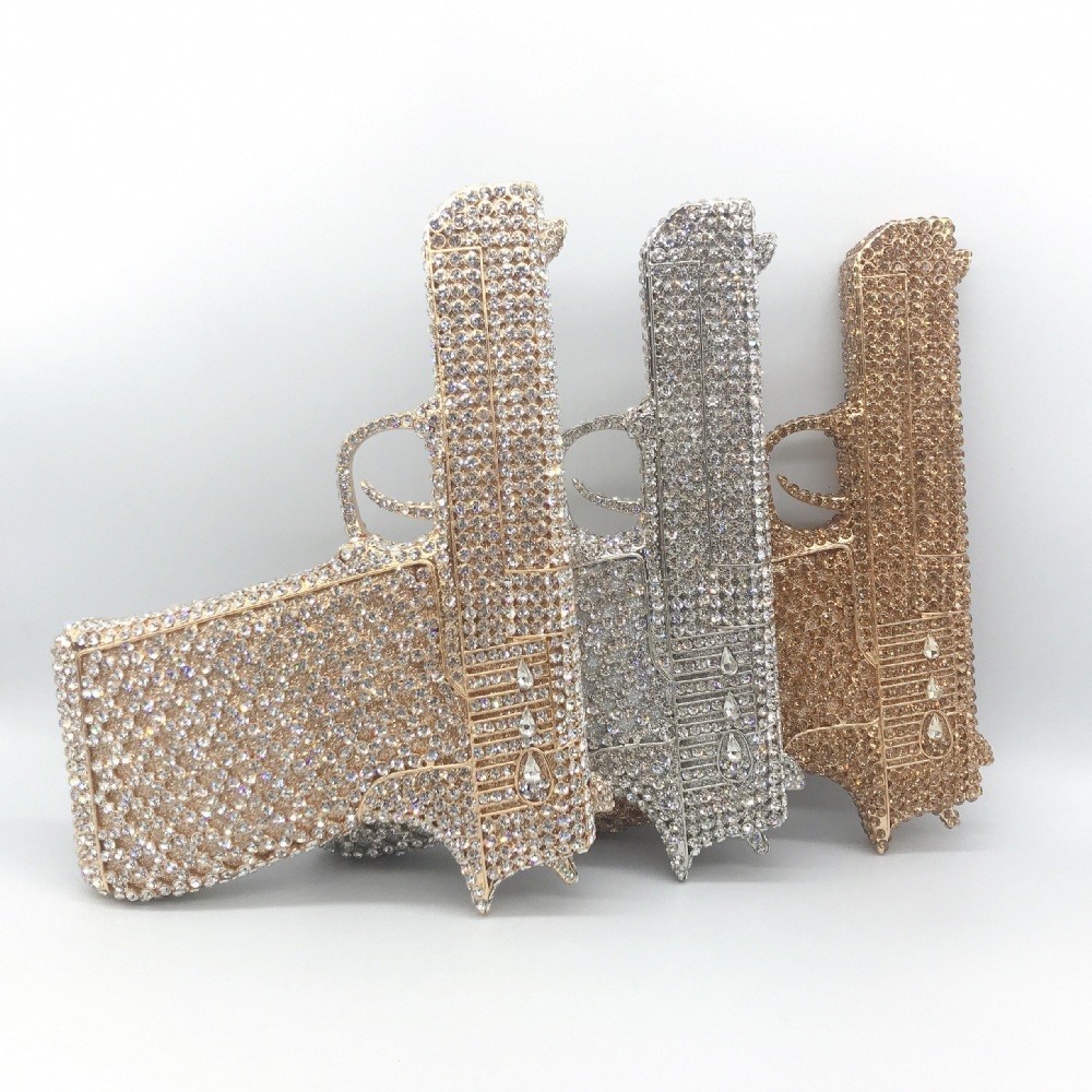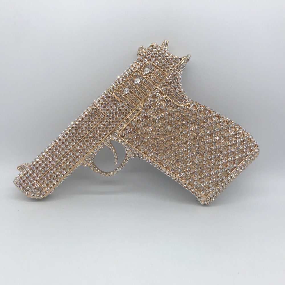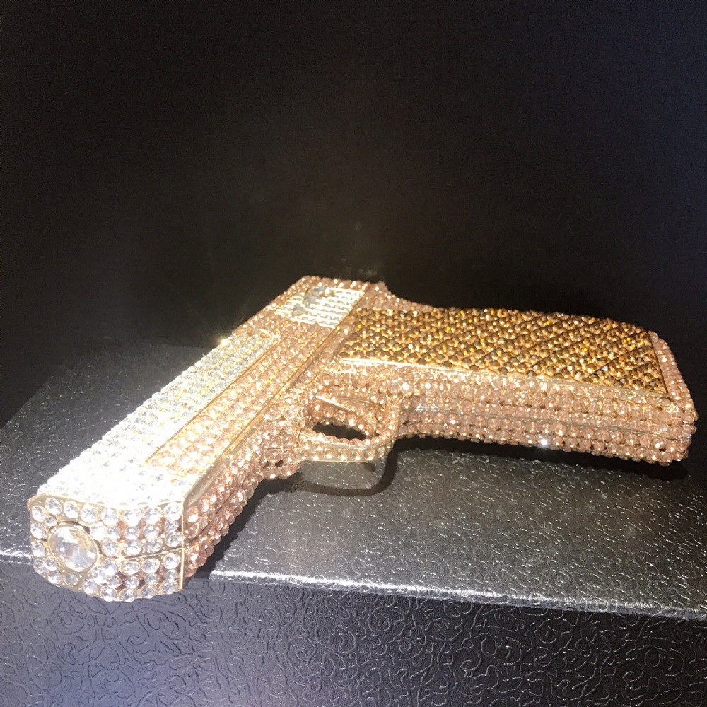 Túi cầm tay thiết kế kiểu súng lục độc đáo, phù hợp cho các buổi tiệc tối. Bề mặt túi được đính kín những hạt pha lê lấp lánh tạo điểm nhấn nổi bật. Kiểu dáng mang phong cách châu Âu hiện đại, giúp người dùng thêm phần tự tin. Khi sử dụng, bạn chỉ cần cầm phần thân túi hoặc kẹp nhẹ dưới cánh tay. Túi vừa vặn đựng được các vật dụng cần thiết như điện thoại, son môi và thẻ tiền. | Tên sản phẩm: Ví Bóp Cầm Tay Nữ Phong Cách Âu Mỹ - Túi Ví Nữ | Mã sản phẩm: K1827 - Giá: 2.210.000đ | Mã nhà sản xuất: PURYRM-G05Hình ảnh sản phẩm