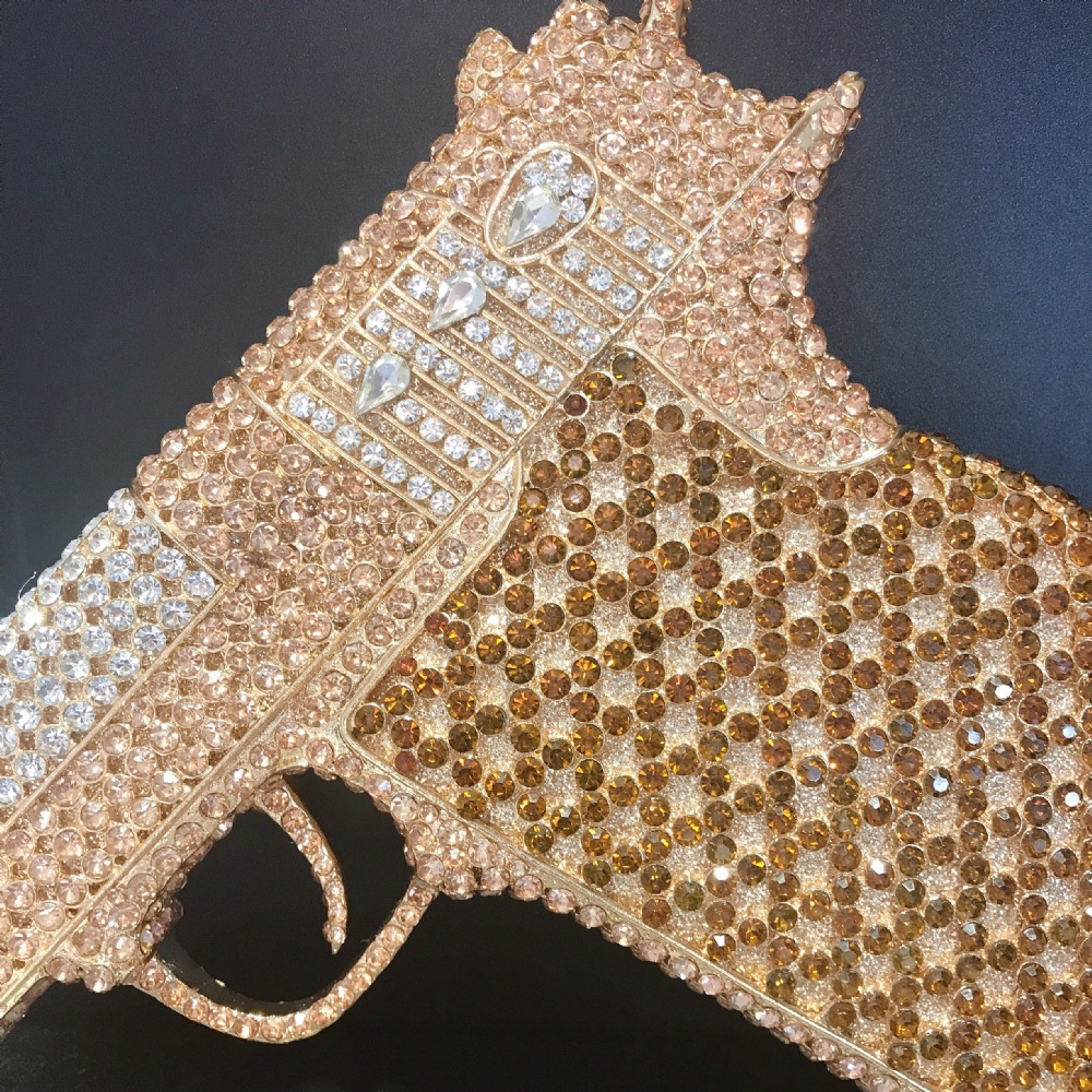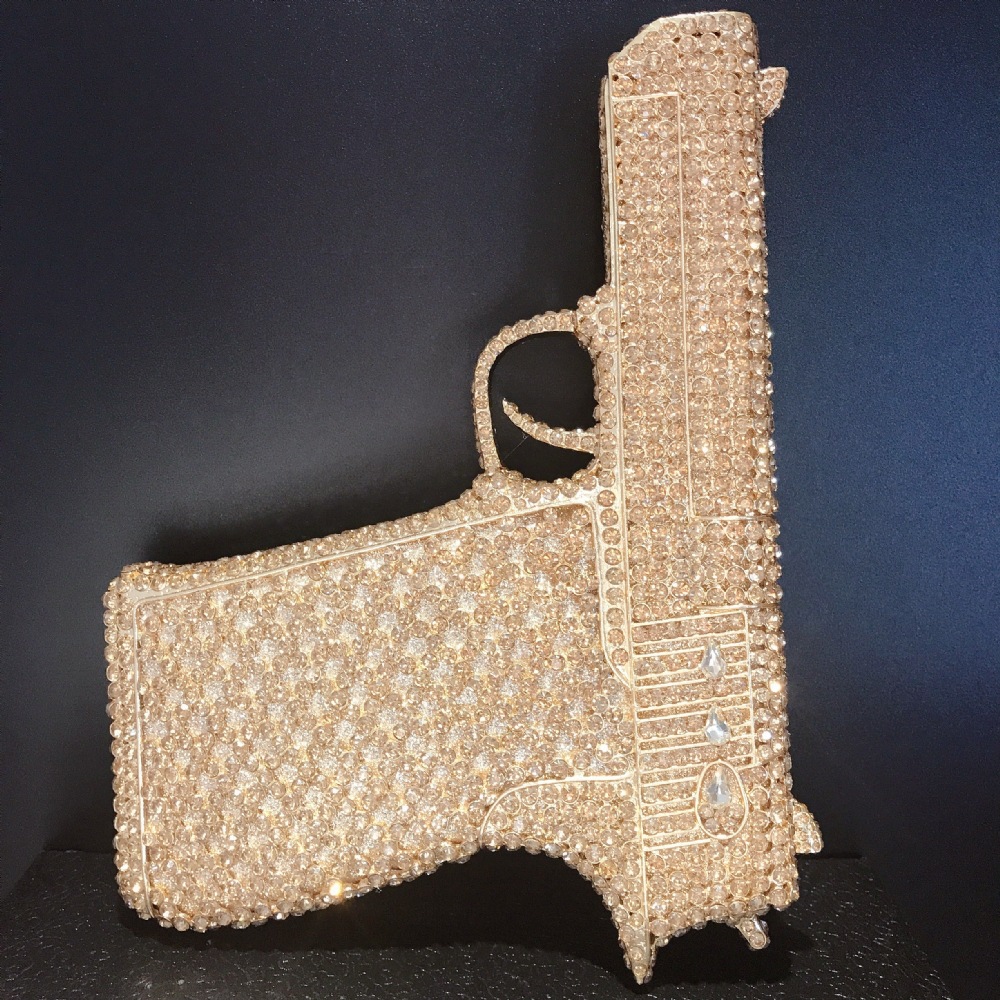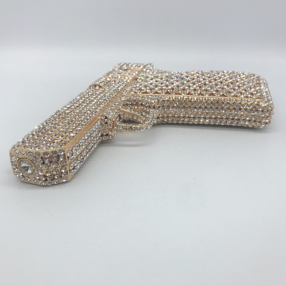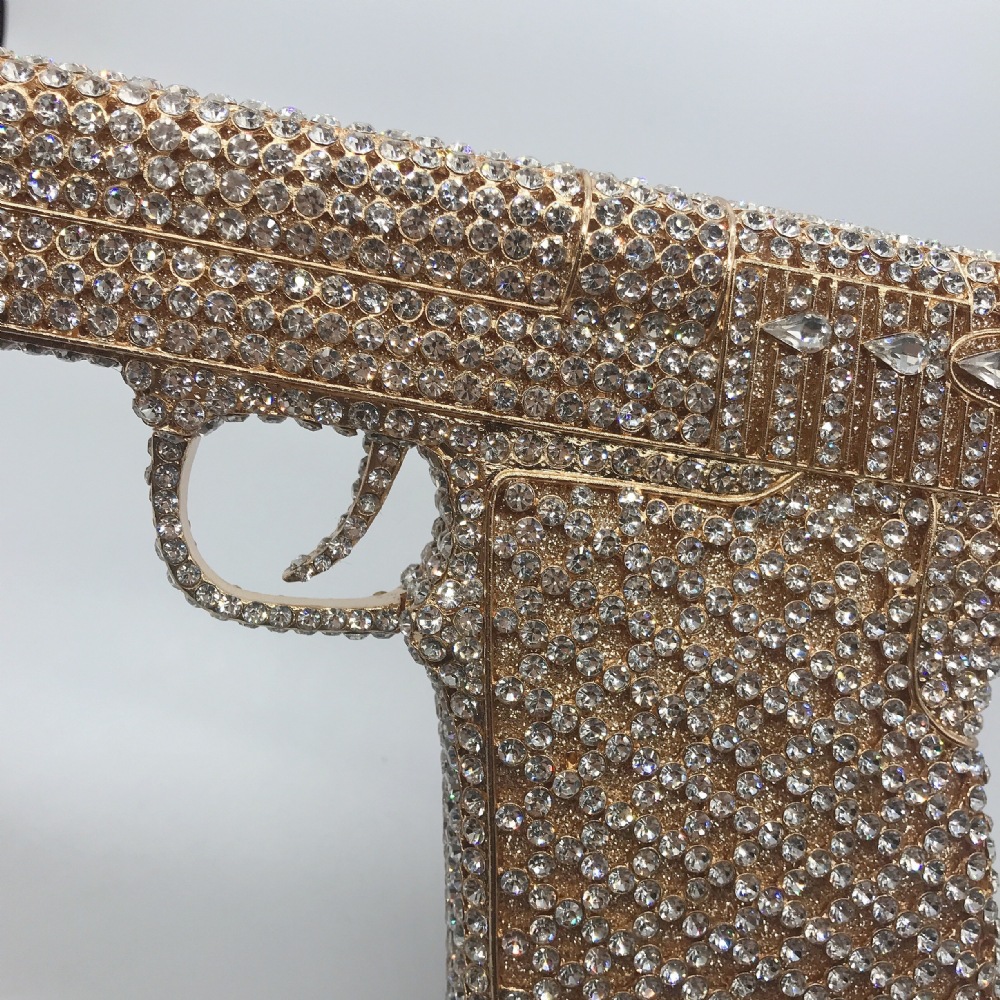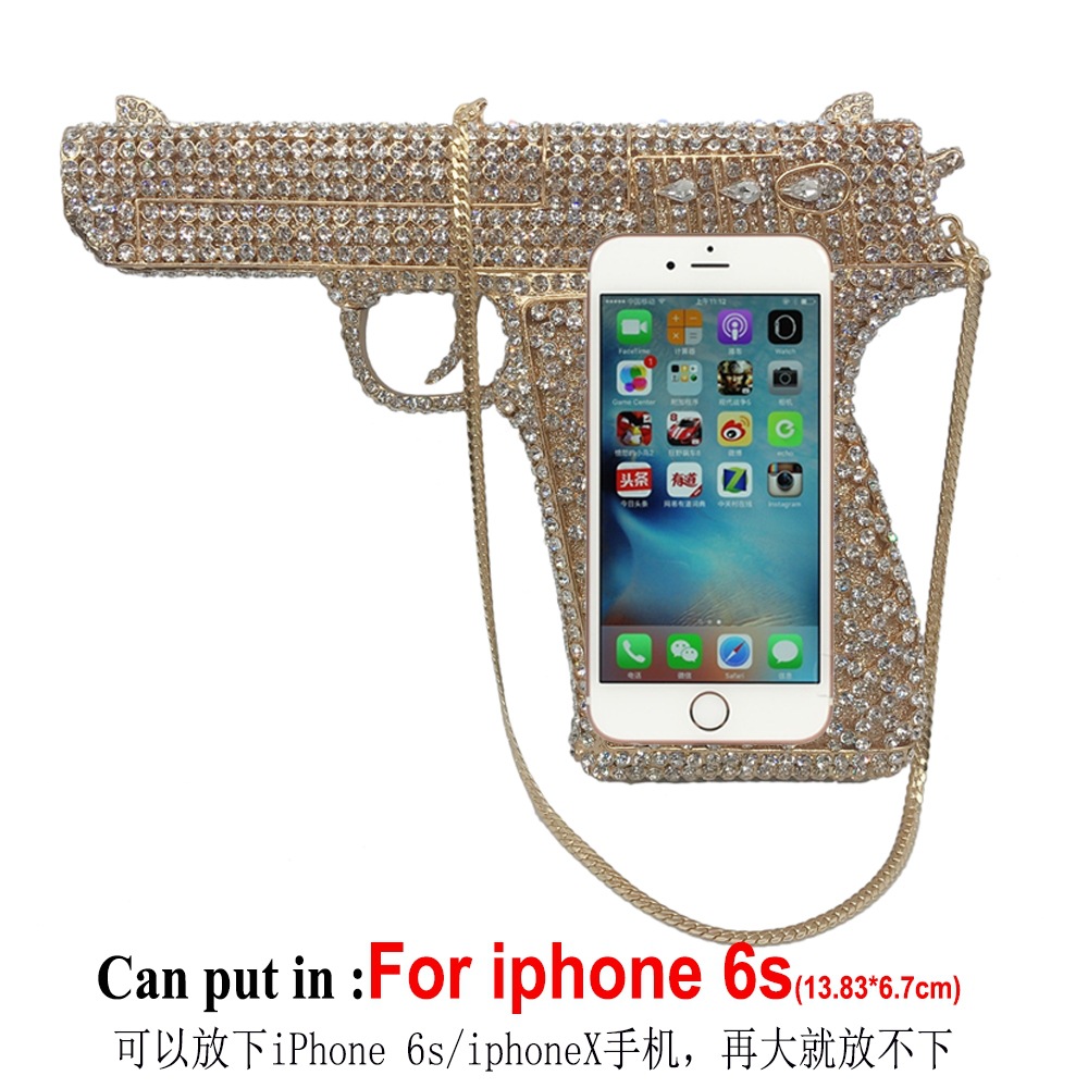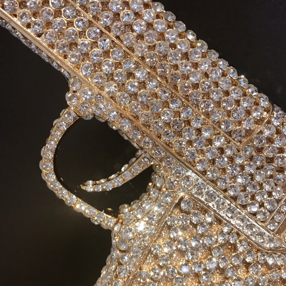 Túi cầm tay thiết kế kiểu súng lục độc đáo, phù hợp cho các buổi tiệc tối. Bề mặt túi được đính kín những hạt pha lê lấp lánh tạo điểm nhấn nổi bật. Kiểu dáng mang phong cách châu Âu hiện đại, giúp người dùng thêm phần tự tin. Khi sử dụng, bạn chỉ cần cầm phần thân túi hoặc kẹp nhẹ dưới cánh tay. Túi vừa vặn đựng được các vật dụng cần thiết như điện thoại, son môi và thẻ tiền. | Tên sản phẩm: Ví Bóp Cầm Tay Nữ Phong Cách Âu Mỹ - Túi Ví Nữ | Mã sản phẩm: K1827 - Giá: 2.210.000đ | Mã nhà sản xuất: PURYRM-G05Hình ảnh sản phẩm