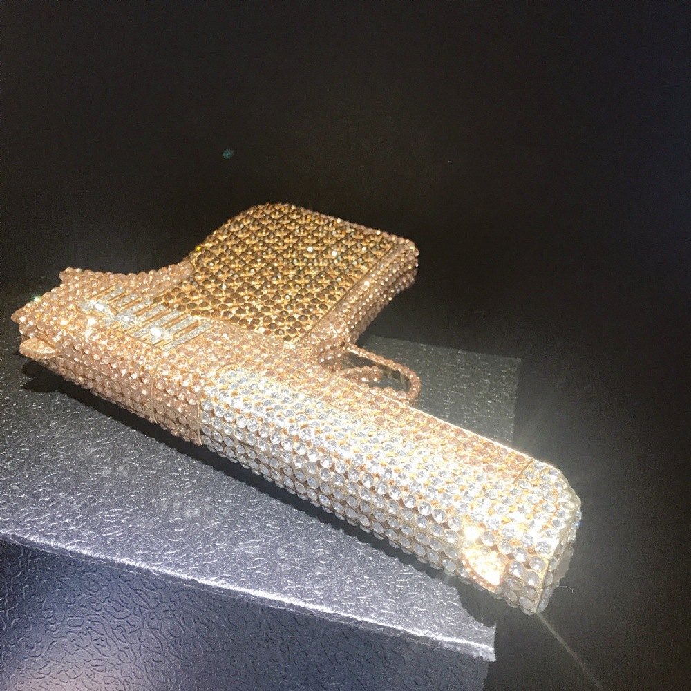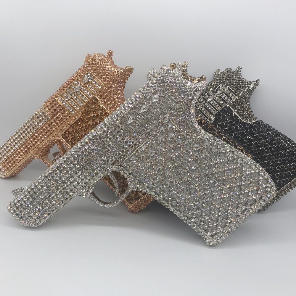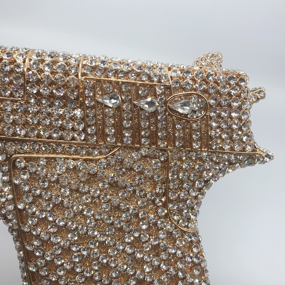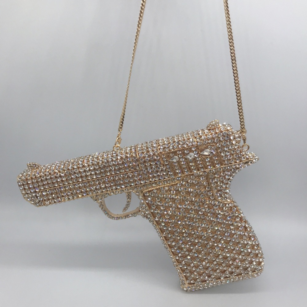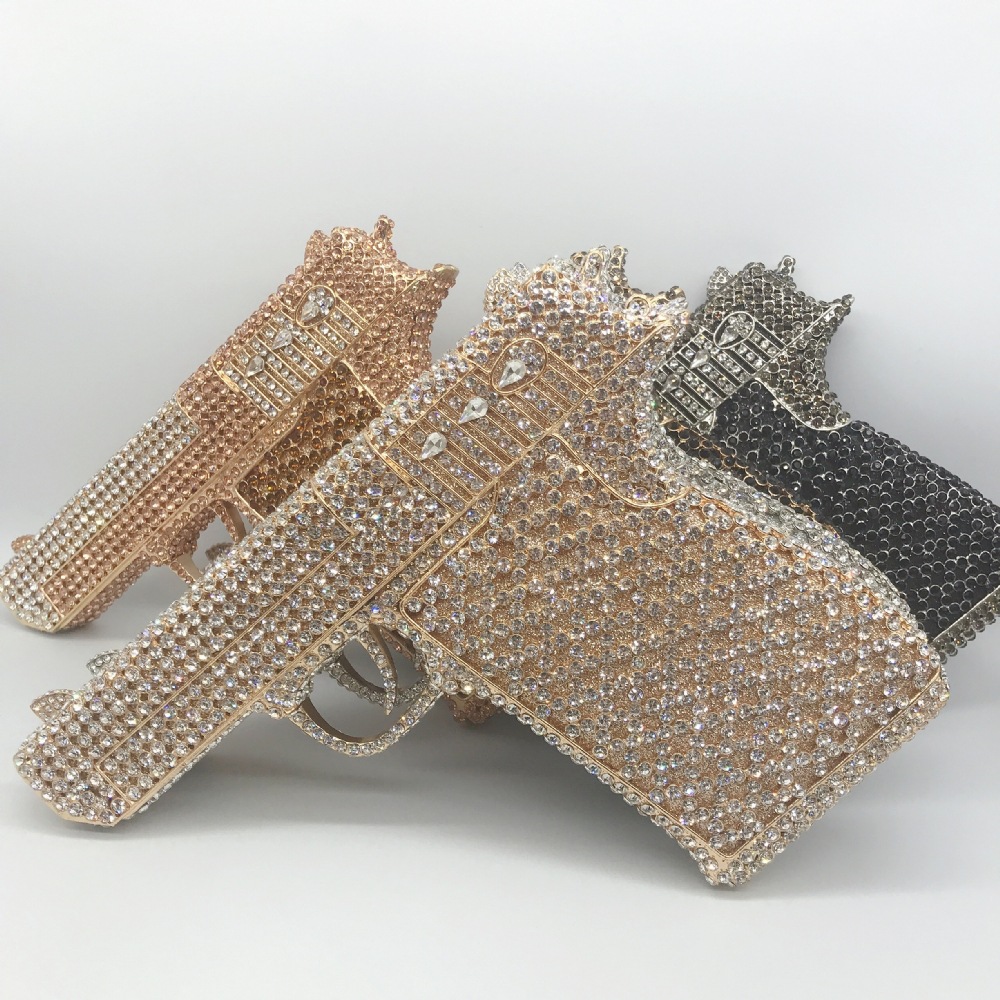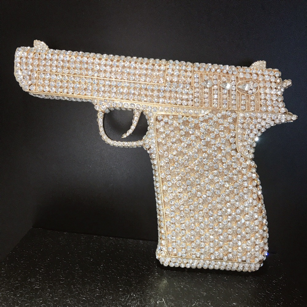 Túi cầm tay thiết kế kiểu súng lục độc đáo, phù hợp cho các buổi tiệc tối. Bề mặt túi được đính kín những hạt pha lê lấp lánh tạo điểm nhấn nổi bật. Kiểu dáng mang phong cách châu Âu hiện đại, giúp người dùng thêm phần tự tin. Khi sử dụng, bạn chỉ cần cầm phần thân túi hoặc kẹp nhẹ dưới cánh tay. Túi vừa vặn đựng được các vật dụng cần thiết như điện thoại, son môi và thẻ tiền. | Tên sản phẩm: Ví Bóp Cầm Tay Nữ Phong Cách Âu Mỹ - Túi Ví Nữ | Mã sản phẩm: K1827 - Giá: 2.210.000đ | Mã nhà sản xuất: PURYRM-G05Hình ảnh sản phẩm