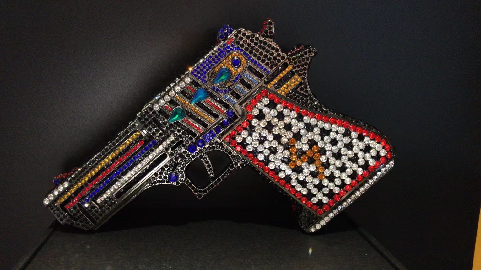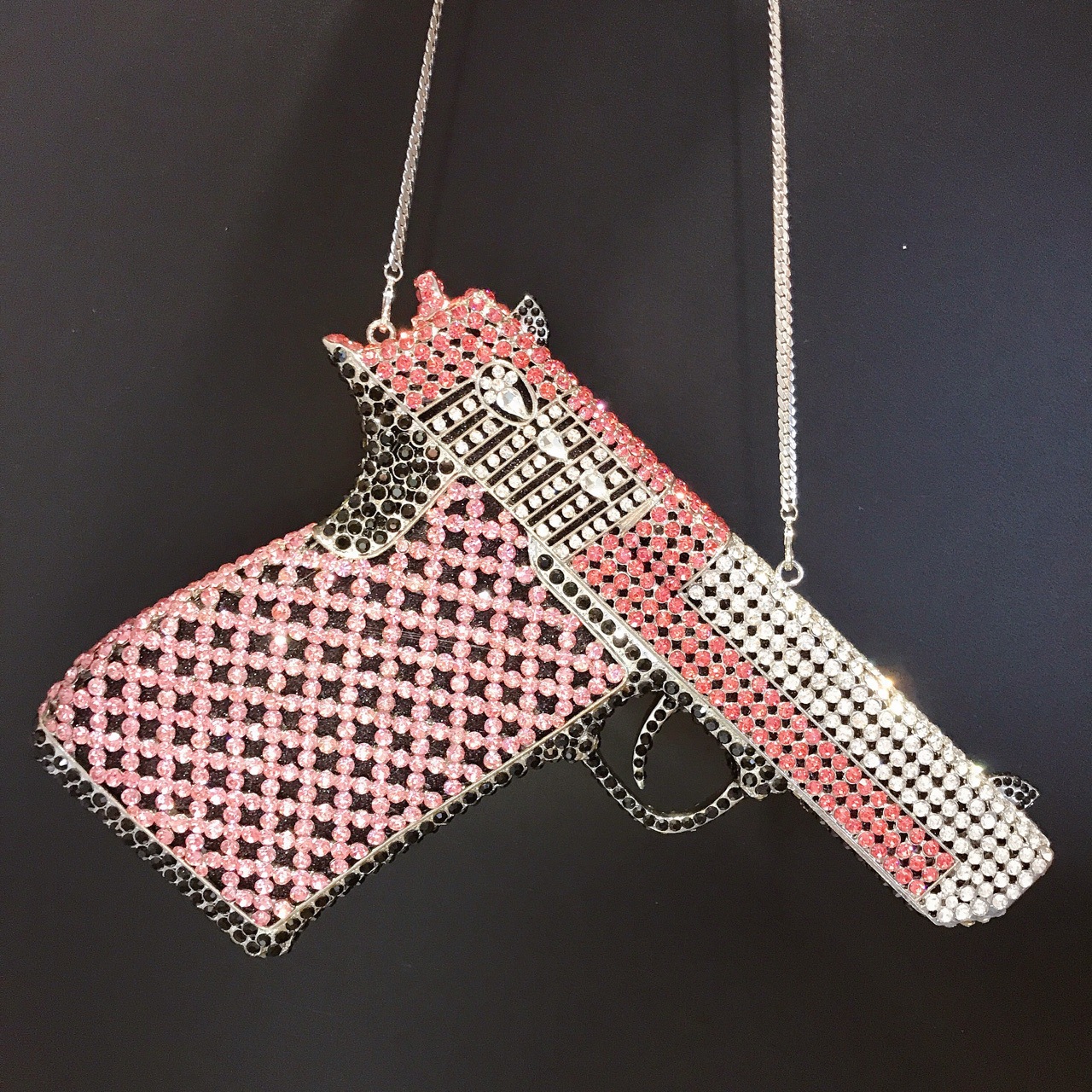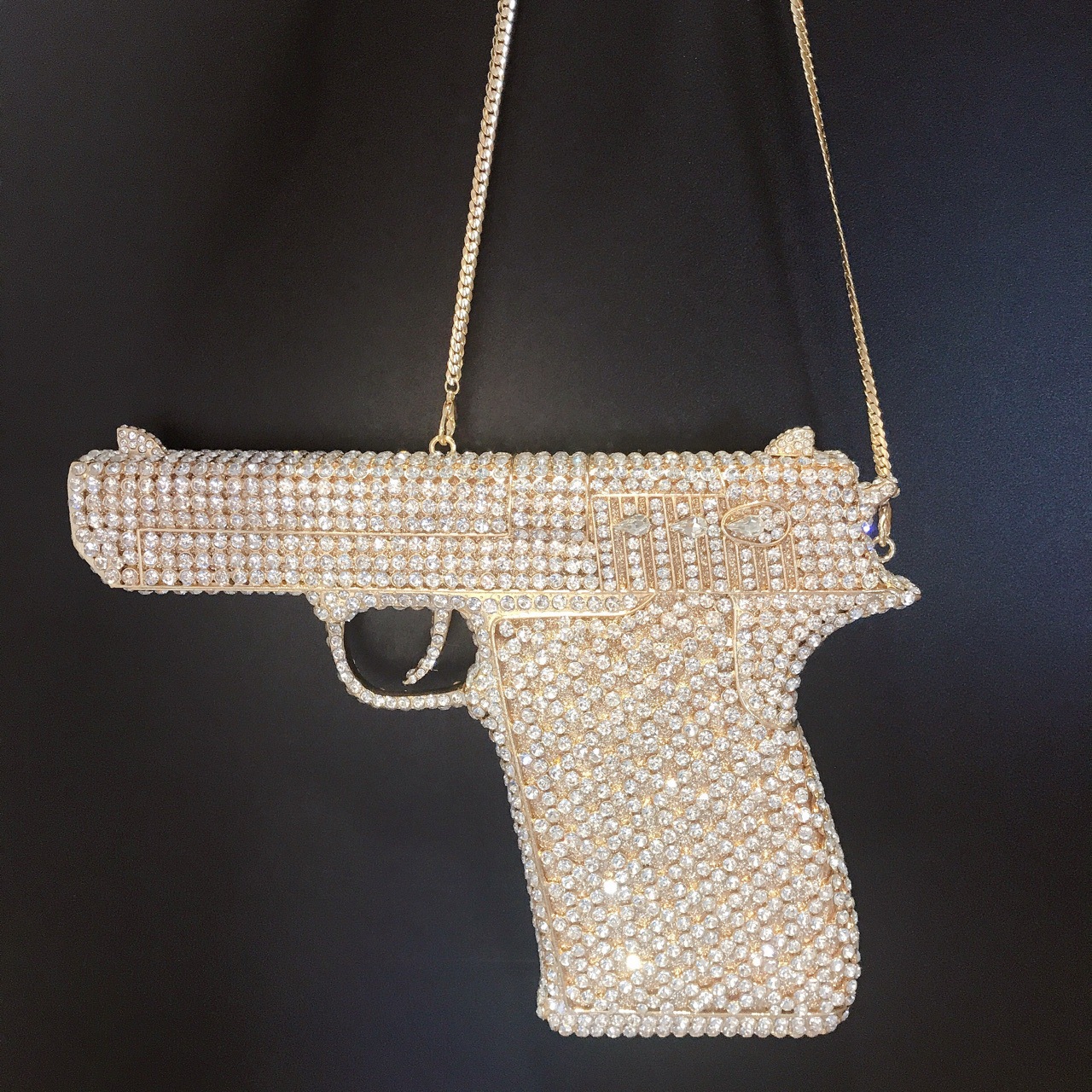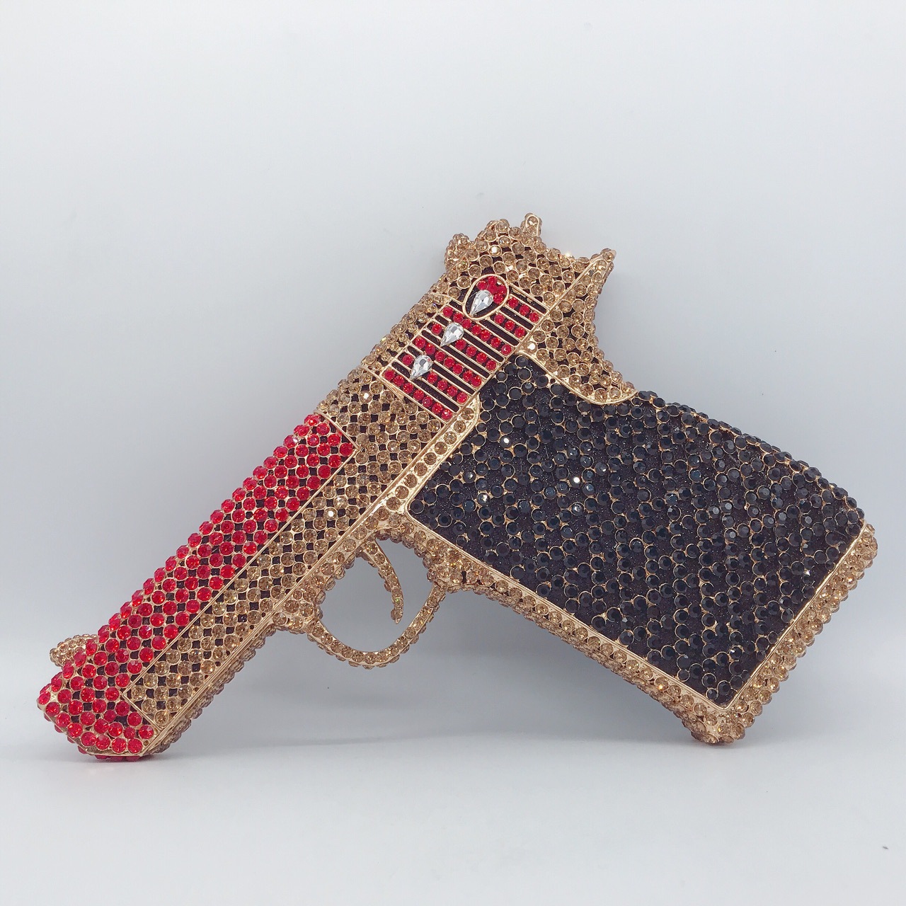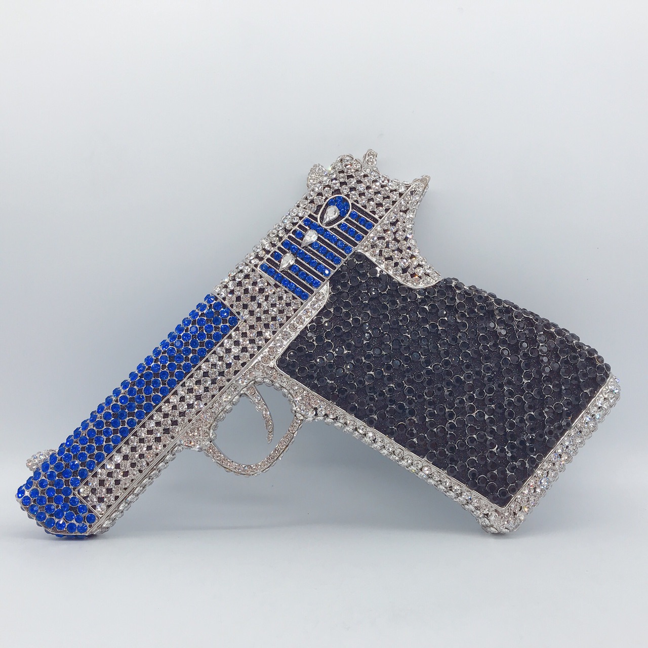 Túi cầm tay thiết kế kiểu súng lục độc đáo, phù hợp cho các buổi tiệc tối. Bề mặt túi được đính kín những hạt pha lê lấp lánh tạo điểm nhấn nổi bật. Kiểu dáng mang phong cách châu Âu hiện đại, giúp người dùng thêm phần tự tin. Khi sử dụng, bạn chỉ cần cầm phần thân túi hoặc kẹp nhẹ dưới cánh tay. Túi vừa vặn đựng được các vật dụng cần thiết như điện thoại, son môi và thẻ tiền. | Tên sản phẩm: Ví Bóp Cầm Tay Nữ Phong Cách Âu Mỹ - Túi Ví Nữ | Mã sản phẩm: K1827 - Giá: 2.210.000đ | Mã nhà sản xuất: PURYRM-G05Hình ảnh sản phẩm