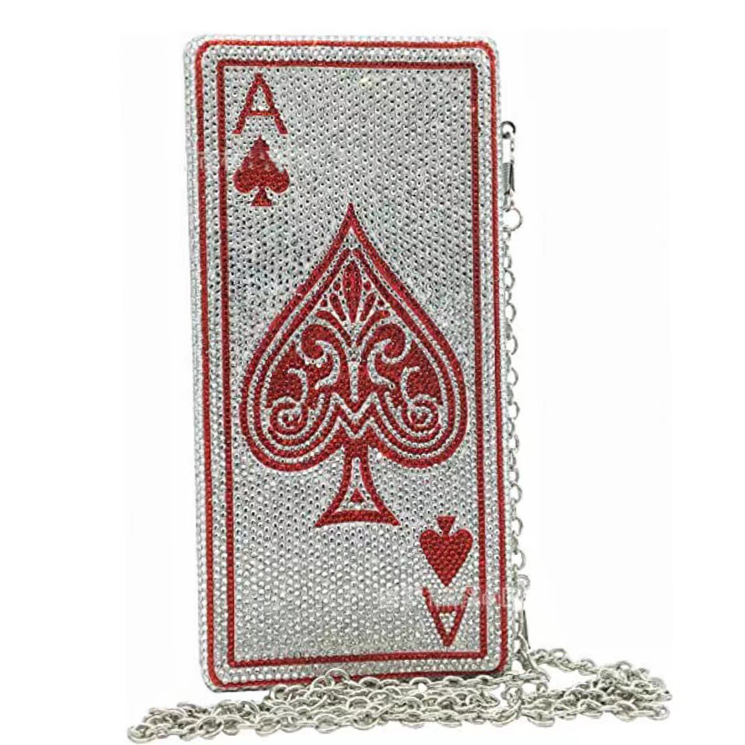 Chiếc túi xách tay nhỏ dáng vuông này là điểm nhấn nổi bật cho những buổi tiệc tối. Mặt trước túi được trang trí tinh xảo hình một quân bài cùng vô số viên đá lấp lánh, tạo nên vẻ đẹp thu hút. Kiểu dáng thời thượng, phù hợp với xu hướng hiện nay. Bạn có thể cầm tay hoặc mang theo bên mình một cách dễ dàng. Rất thích hợp để đựng những món đồ nhỏ gọn như điện thoại, son môi khi dự tiệc hoặc sự kiện. | Tên sản phẩm: Ví Bóp Cầm Tay Nữ Phong Cách Âu Mỹ - Túi Ví Nữ | Mã sản phẩm: K1840 - Giá: 1.460.000đ | Mã nhà sản xuất: PURYRM-G04Hình ảnh sản phẩm