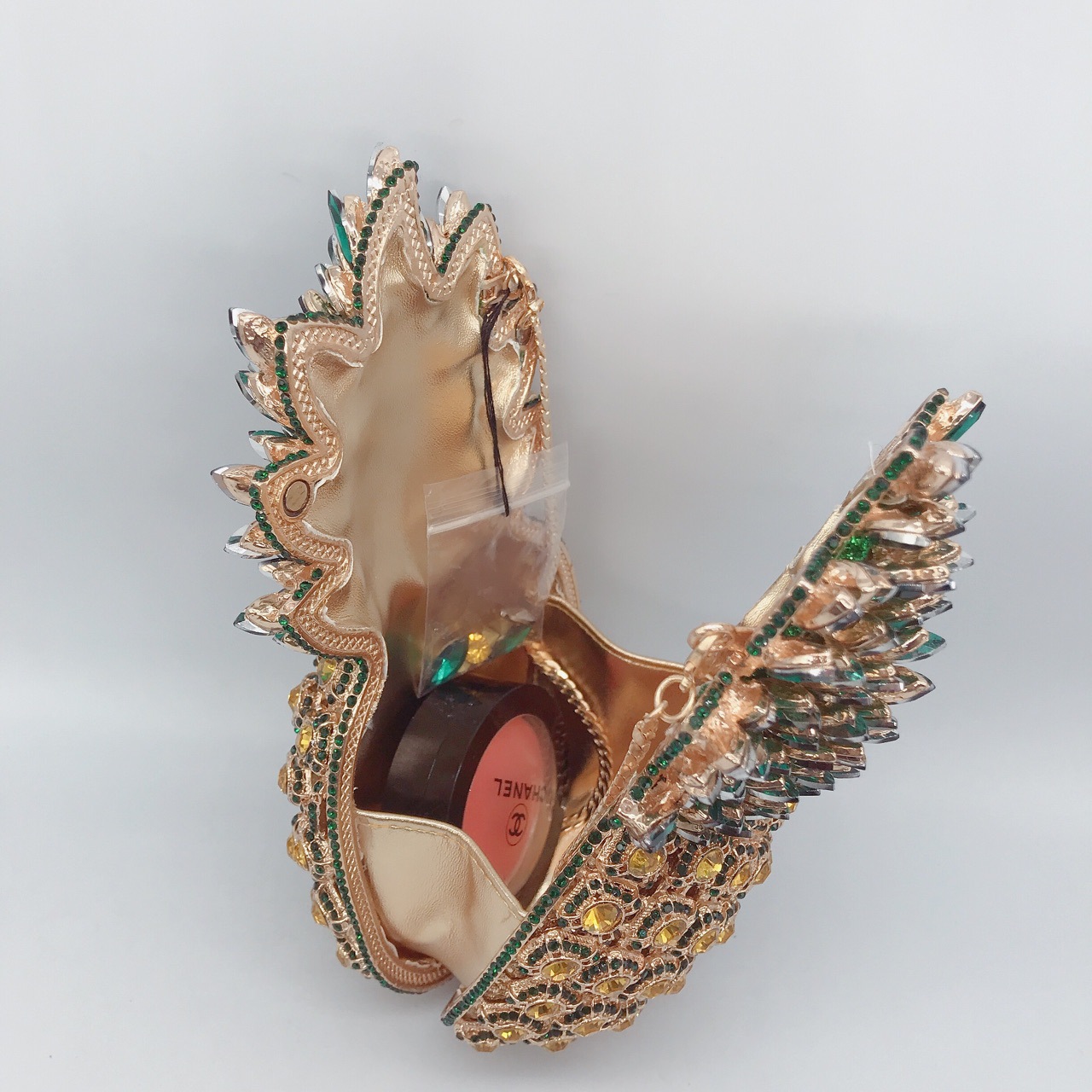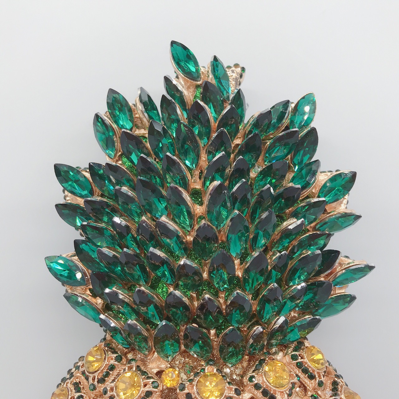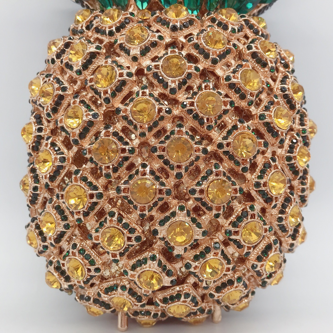 Chiếc túi cầm tay này có kiểu dáng quả dứa ngộ nghĩnh, được đính kín những hạt đá lấp lánh tinh xảo. Dáng túi nhỏ gọn, thích hợp mang trong những buổi tiệc tối hay sự kiện vui chơi. Bạn chỉ cần cầm tay hoặc kẹp nhẹ vào nách để kết hợp cùng các trang phục đi tiệc. Chất liệu cứng cáp giúp túi giữ được hình dáng ban đầu, bên trong vừa đủ để đựng các món đồ cá nhân cần thiết. | Tên sản phẩm: Ví Bóp Cầm Tay Nữ Gắn Đá - Túi Ví Nữ | Mã sản phẩm: K1845 - Giá: 1.920.000đ | Mã nhà sản xuất: PURYRM-G05Hình ảnh sản phẩm