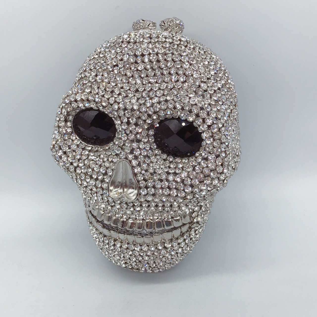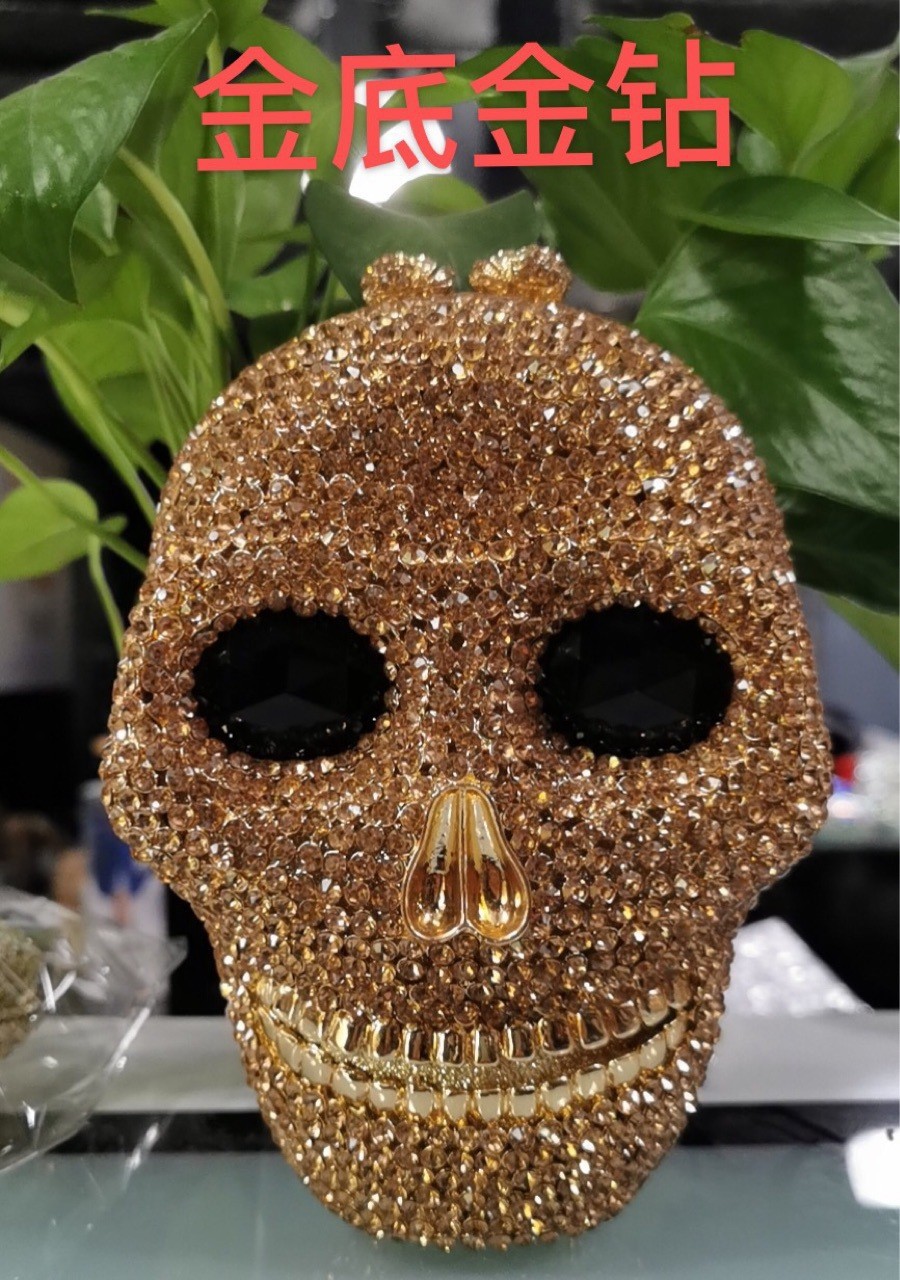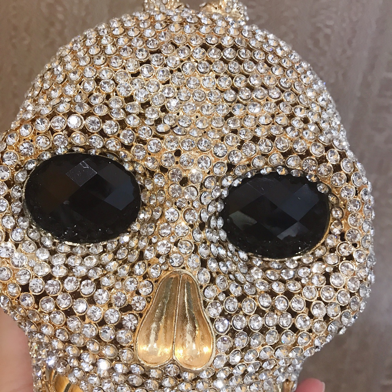 Chiếc túi cầm tay này mang phong cách thiết kế phương Tây, nổi bật với hình đầu lâu được đính hạt lấp lánh và tạo hình ba chiều bằng kim loại. Kiểu dáng cá tính, phù hợp để mang theo trong các buổi tiệc tối hoặc sự kiện có chủ đề như Lễ hội Hóa trang. Bạn có thể dùng như một món phụ kiện điểm nhấn, cầm trong tay hoặc kết hợp với dây đeo. Túi vừa đủ rộng để đựng các vật dụng cá nhân cần thiết một cách gọn gàng. | Tên sản phẩm: Ví Bóp Cầm Tay Nữ Phong Cách Âu Mỹ - Túi Ví Nữ | Mã sản phẩm: K1854 - Giá: 1.920.000đ | Mã nhà sản xuất: PURYRM-G05Hình ảnh sản phẩm