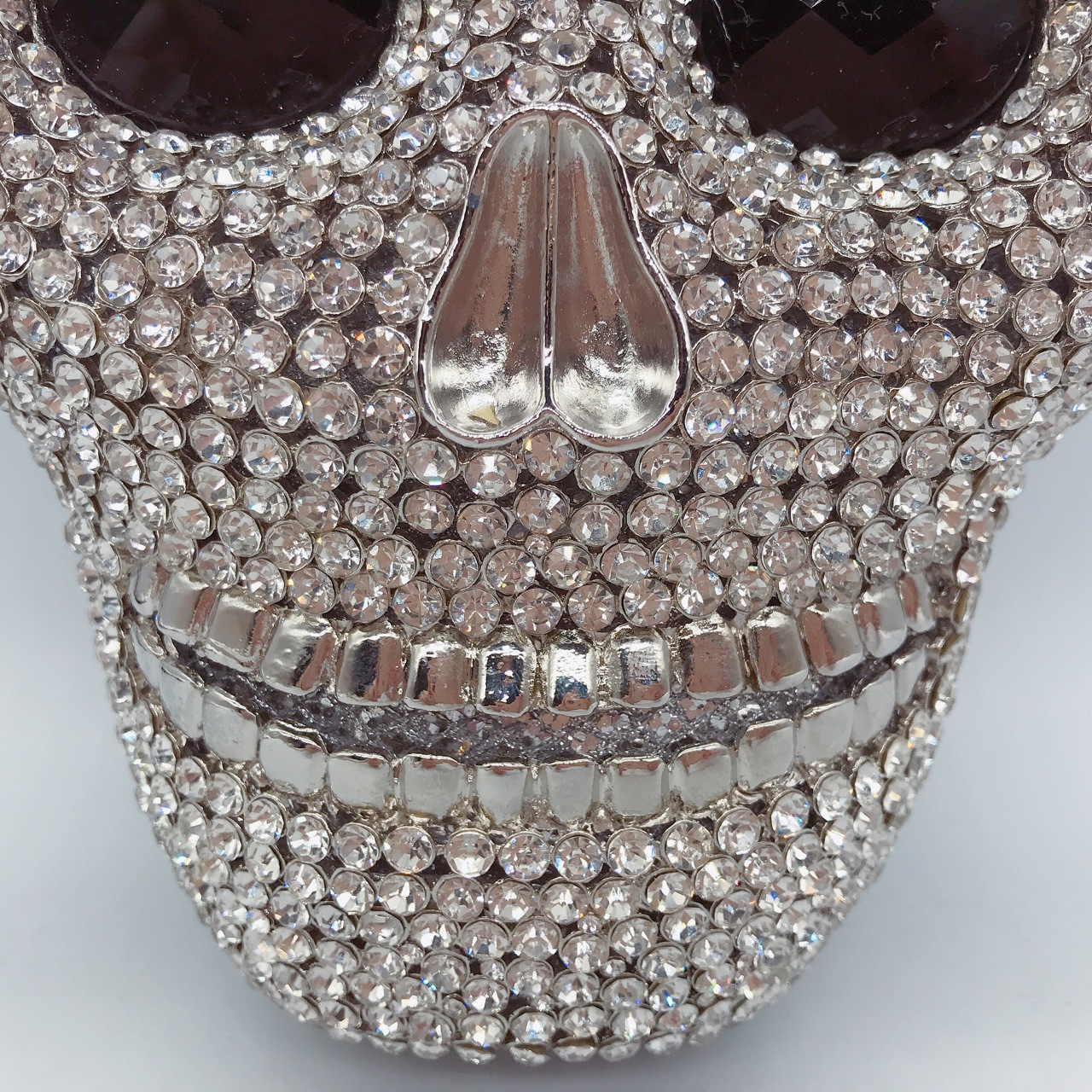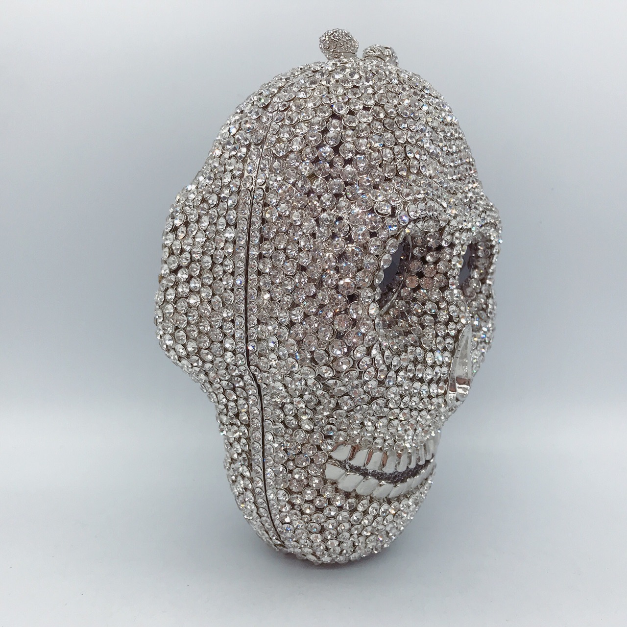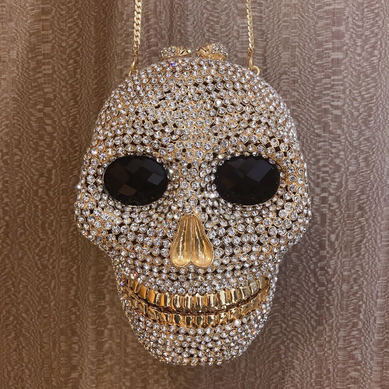 Chiếc túi cầm tay này mang phong cách thiết kế phương Tây, nổi bật với hình đầu lâu được đính hạt lấp lánh và tạo hình ba chiều bằng kim loại. Kiểu dáng cá tính, phù hợp để mang theo trong các buổi tiệc tối hoặc sự kiện có chủ đề như Lễ hội Hóa trang. Bạn có thể dùng như một món phụ kiện điểm nhấn, cầm trong tay hoặc kết hợp với dây đeo. Túi vừa đủ rộng để đựng các vật dụng cá nhân cần thiết một cách gọn gàng. | Tên sản phẩm: Ví Bóp Cầm Tay Nữ Phong Cách Âu Mỹ - Túi Ví Nữ | Mã sản phẩm: K1854 - Giá: 1.920.000đ | Mã nhà sản xuất: PURYRM-G05Hình ảnh sản phẩm