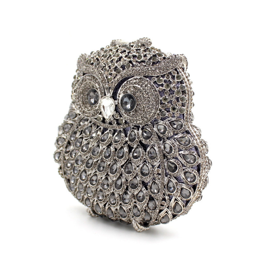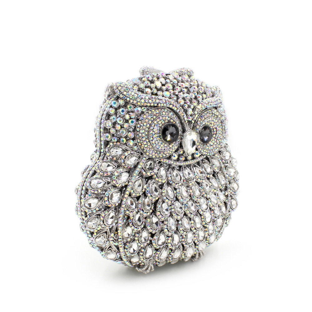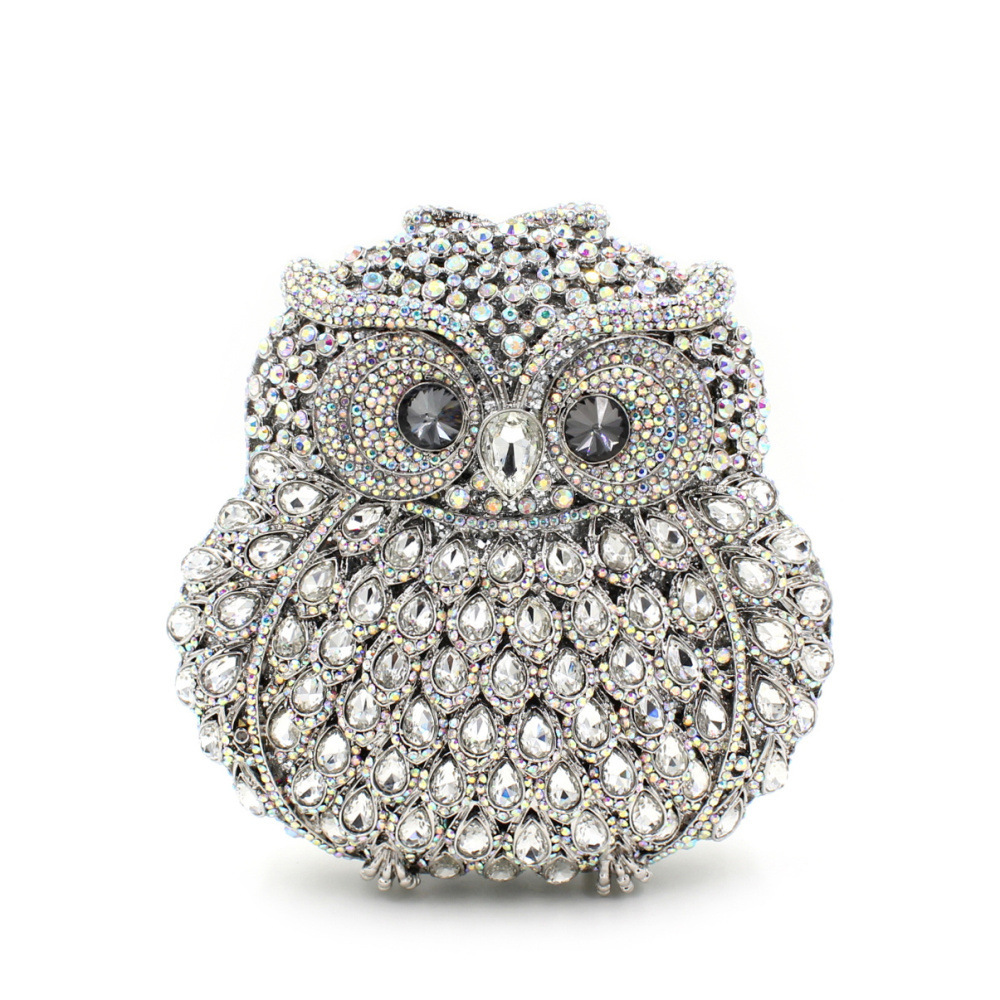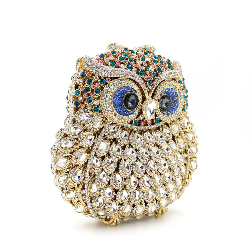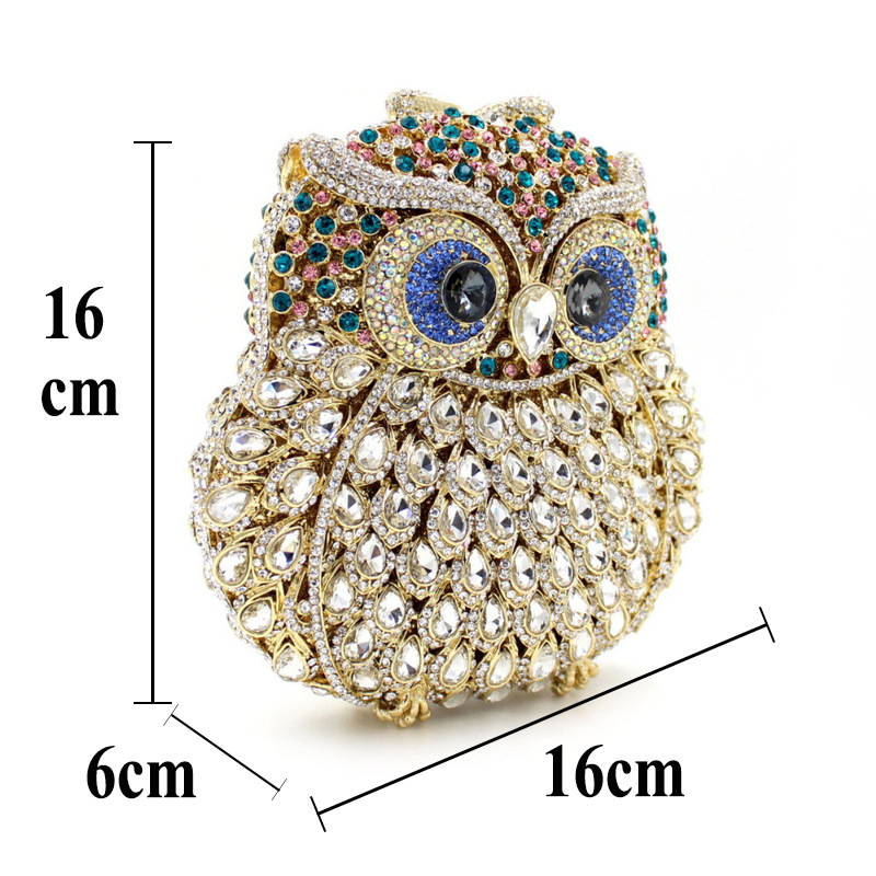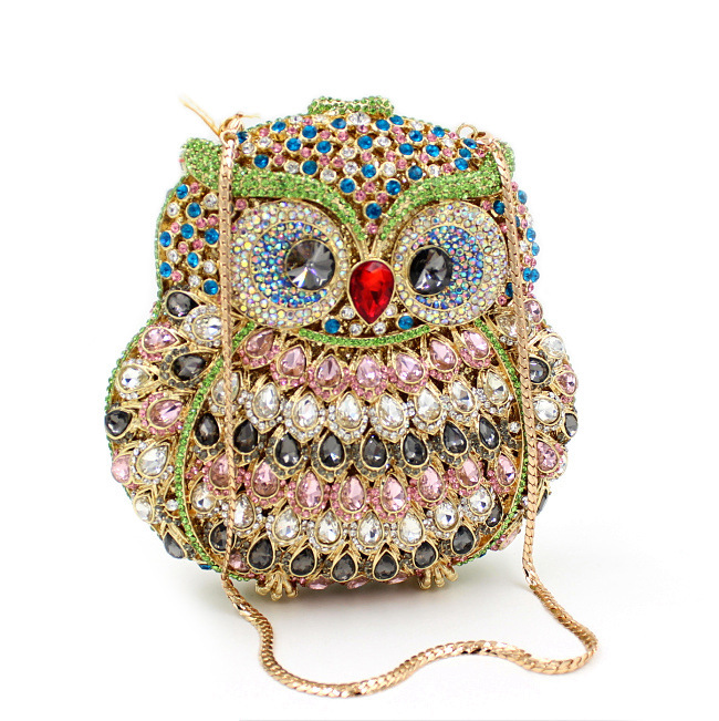 Túi cầm tay dành cho các buổi tiệc tối, có họa tiết con cú được tạo điểm nhấn bằng các viên đá lấp lánh như pha lê. Chất liệu chủ yếu là kim loại với phần thân túi được thiết kế dạng mắt lưới tinh xảo, tạo nên vẻ đẹp vừa hiện đại vừa nữ tính. Túi có qu cầm gọn, phù hợp để cầm tay hoặc khoác trên v. Bạn có thể dùng túi để đựy một vài món đồ nhỏ như điện thoại, son môi khi dự tiệc hoặc sự kiện. | Tên sản phẩm: Ví Bóp Cầm Tay Nữ Gắn Đá - Túi Ví Nữ | Mã sản phẩm: K1864 - Giá: 2.100.000đ | Mã nhà sản xuất: PURYRM-G05Hình ảnh sản phẩm