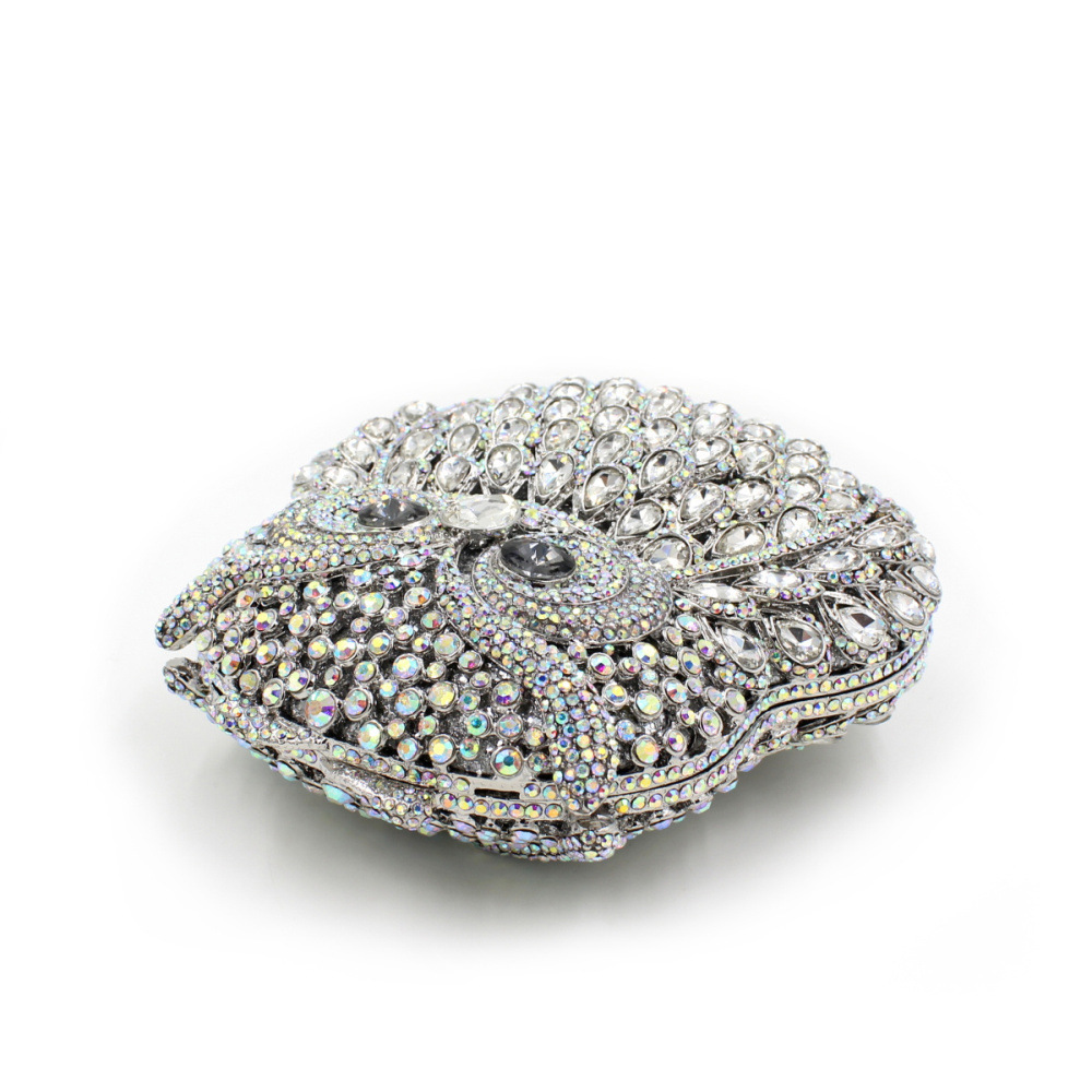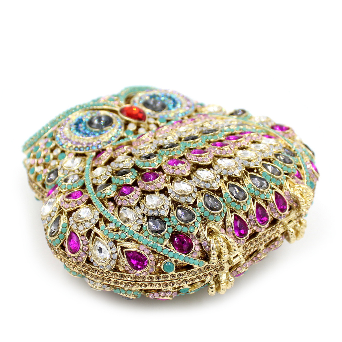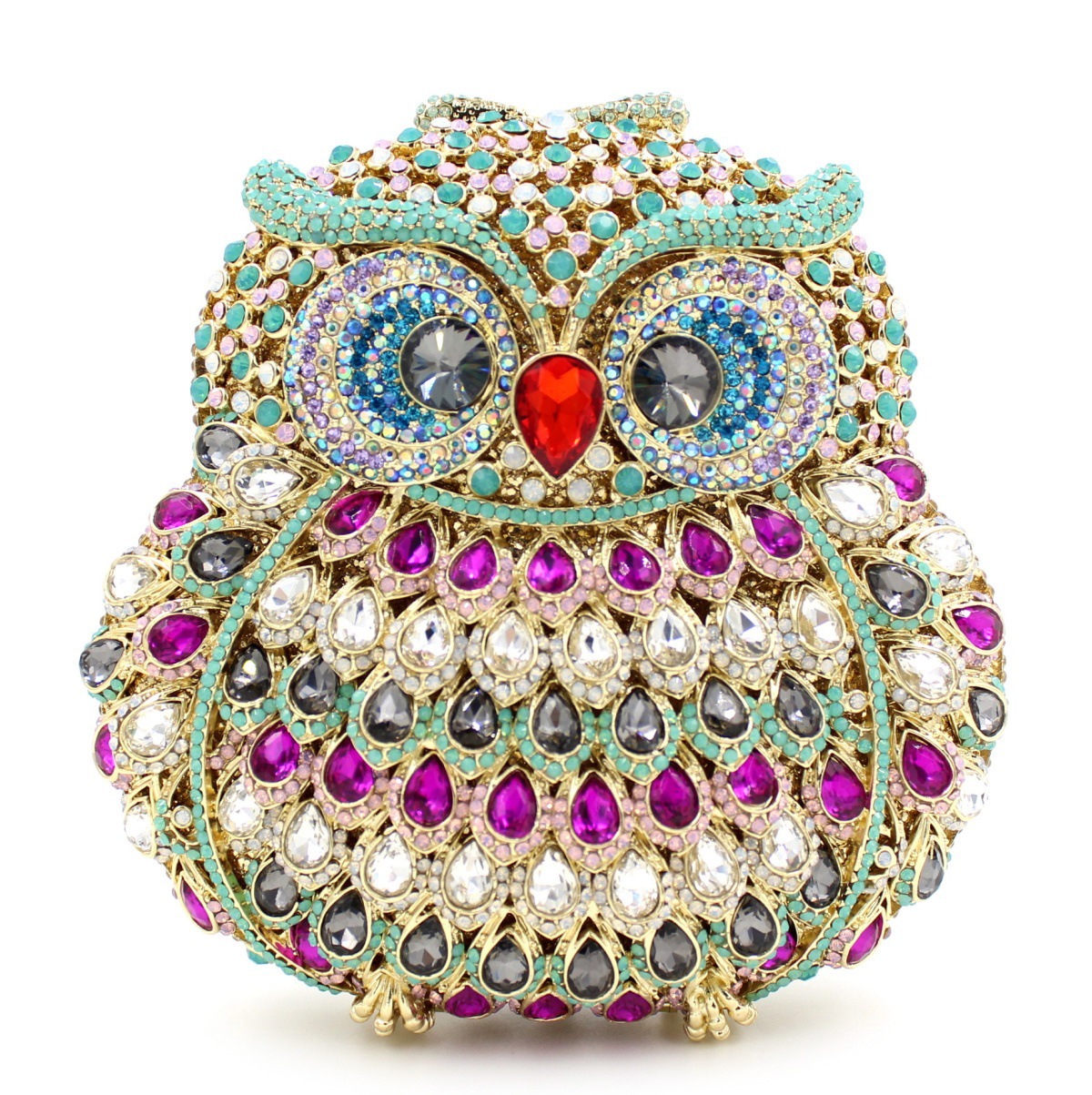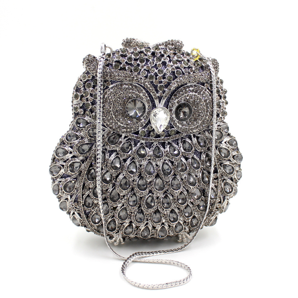 Túi cầm tay dành cho các buổi tiệc tối, có họa tiết con cú được tạo điểm nhấn bằng các viên đá lấp lánh như pha lê. Chất liệu chủ yếu là kim loại với phần thân túi được thiết kế dạng mắt lưới tinh xảo, tạo nên vẻ đẹp vừa hiện đại vừa nữ tính. Túi có qu cầm gọn, phù hợp để cầm tay hoặc khoác trên v. Bạn có thể dùng túi để đựy một vài món đồ nhỏ như điện thoại, son môi khi dự tiệc hoặc sự kiện. | Tên sản phẩm: Ví Bóp Cầm Tay Nữ Gắn Đá - Túi Ví Nữ | Mã sản phẩm: K1864 - Giá: 2.100.000đ | Mã nhà sản xuất: PURYRM-G05Hình ảnh sản phẩm