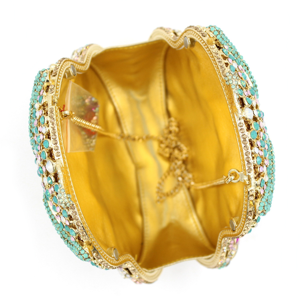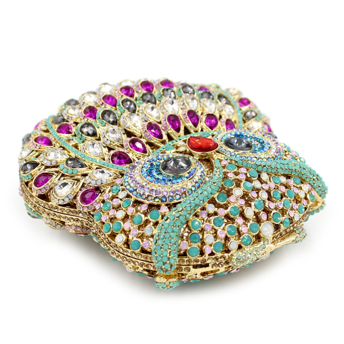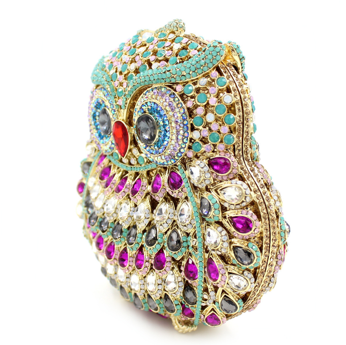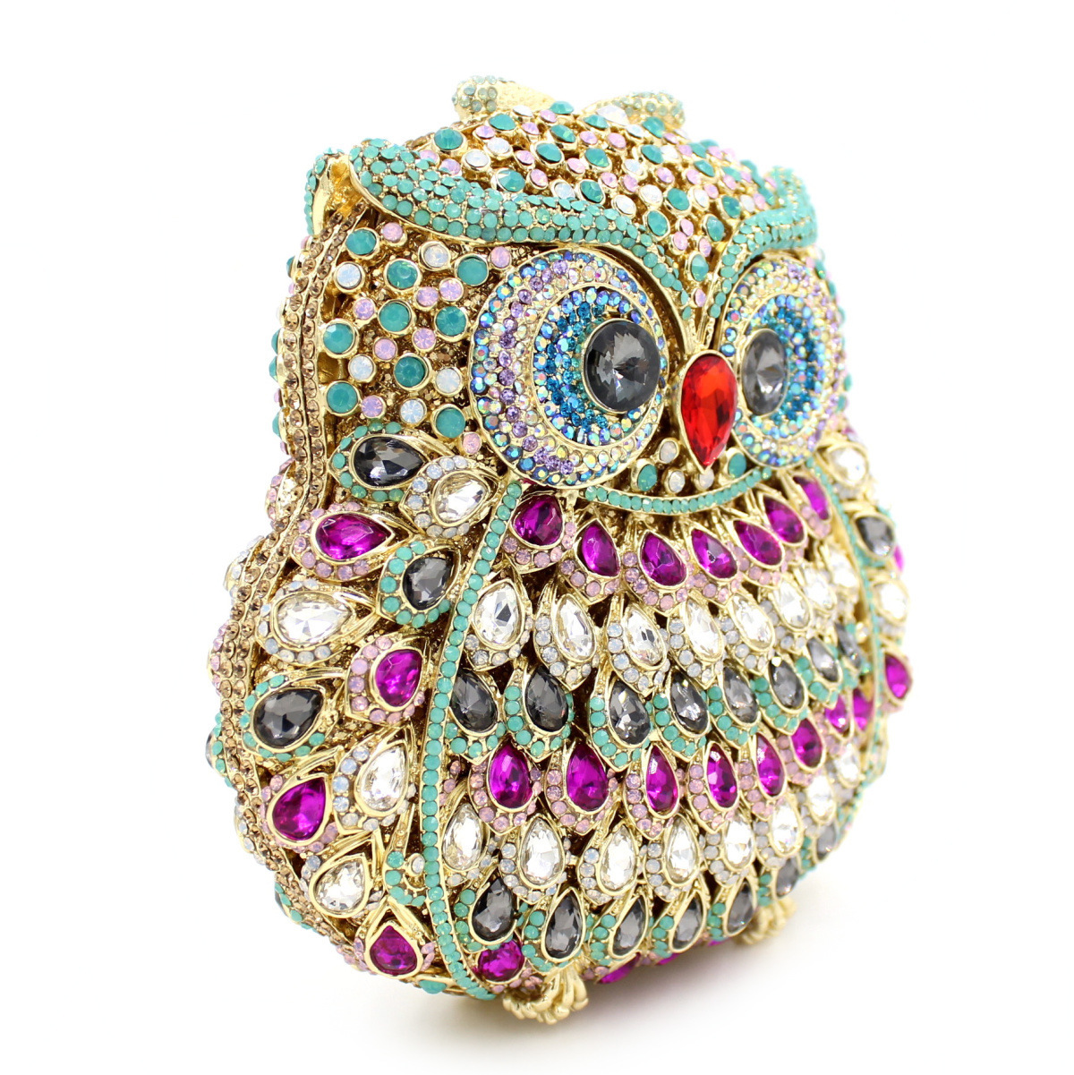 Túi cầm tay dành cho các buổi tiệc tối, có họa tiết con cú được tạo điểm nhấn bằng các viên đá lấp lánh như pha lê. Chất liệu chủ yếu là kim loại với phần thân túi được thiết kế dạng mắt lưới tinh xảo, tạo nên vẻ đẹp vừa hiện đại vừa nữ tính. Túi có qu cầm gọn, phù hợp để cầm tay hoặc khoác trên v. Bạn có thể dùng túi để đựy một vài món đồ nhỏ như điện thoại, son môi khi dự tiệc hoặc sự kiện. | Tên sản phẩm: Ví Bóp Cầm Tay Nữ Gắn Đá - Túi Ví Nữ | Mã sản phẩm: K1864 - Giá: 2.100.000đ | Mã nhà sản xuất: PURYRM-G05Hình ảnh sản phẩm