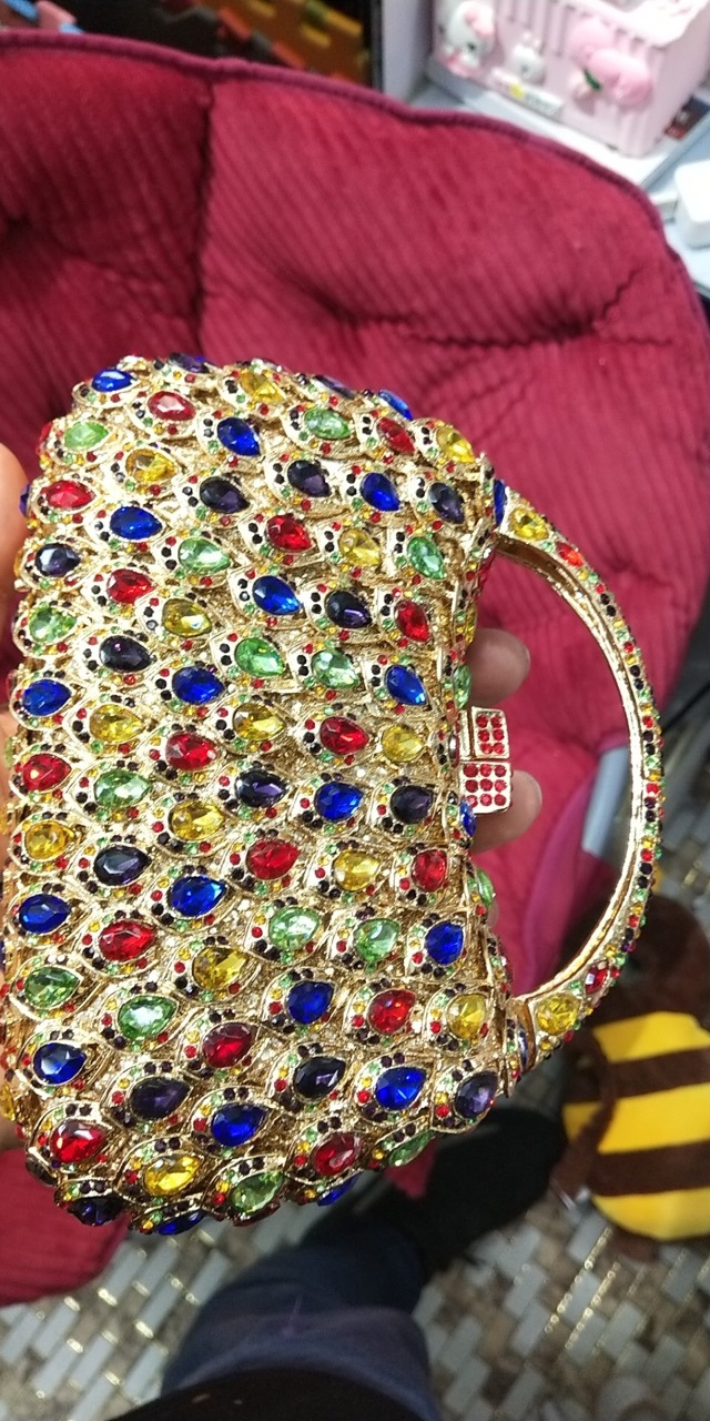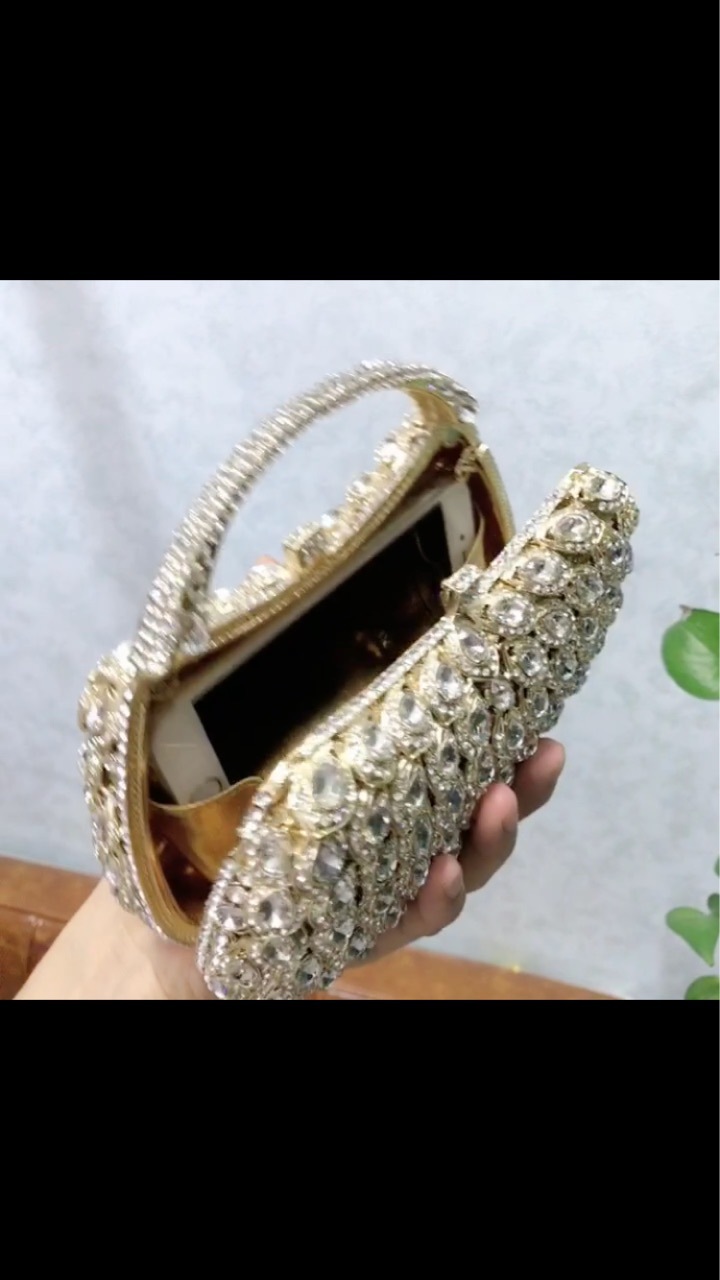 Túi cầm tay dự tiệc với điểm nhấn là những viên đá lấp lánh được gắn tinh tế. Kiểu dáng hộp cứng cáp kết hợp họa tiết khoét lỗ và phần khung bằng kim loại, tạo nên vẻ ngoài thời thượng, phù hợp với các buổi tiệc tối hay sự kiện. Dùng để cầm tay hoặc kẹp dưới cánh tay, đựng vừa các vật dụng cá nhân cần thiết như điện thoại, thẻ và son. | Tên sản phẩm: Ví Bóp Cầm Tay Nữ Phong Cách Âu Mỹ - Túi Ví Nữ | Mã sản phẩm: K1866 - Giá: 2.160.000đ | Mã nhà sản xuất: PURYRM-G05Hình ảnh sản phẩm