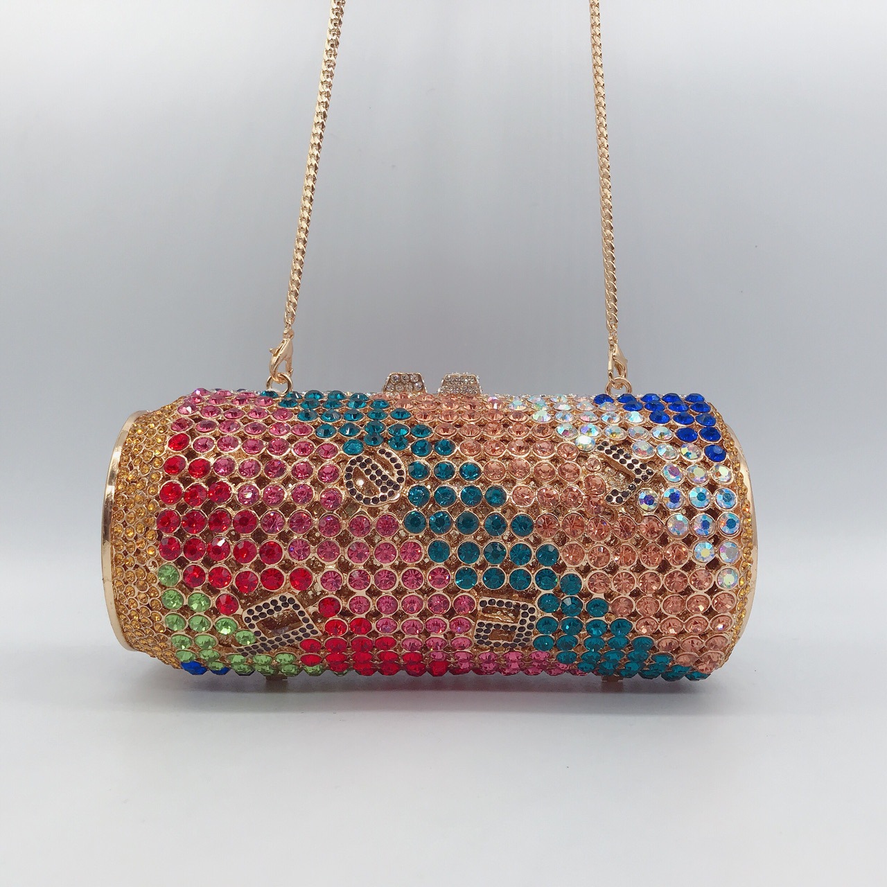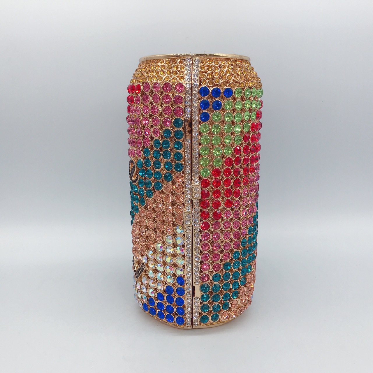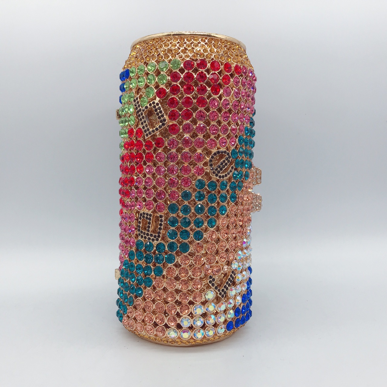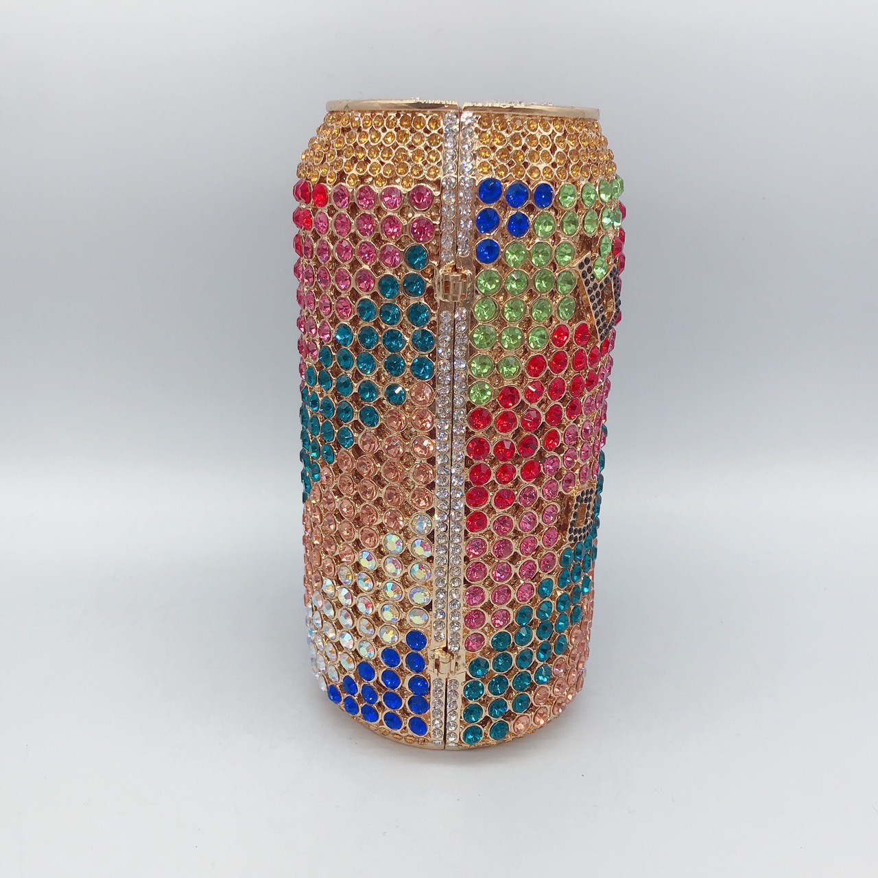 Túi xách tay thiết kế theo dạng vỏ lon nước ngọt, tạo hình trụ tròn độc đáo. Bề mặt túi được trang trí bằng nhiều viên đá lấp lánh như pha lê, tạo điểm nhấn bắt mắt. Kiểu dáng phù hợp để cầm tay trong các buổi tiệc tối hoặc sự kiện. Sử dụng bằng cách cầm phần qu xách nhỏ gọn, đựng vừa các vật dụng cá nhân cơ bản như điện thoại, son môi. | Tên sản phẩm: Ví Bóp Cầm Tay Nữ Phong Cách Âu Mỹ - Túi Ví Nữ | Mã sản phẩm: K1870 - Giá: 2.020.000đ | Mã nhà sản xuất: PURYRM-G05Hình ảnh sản phẩm