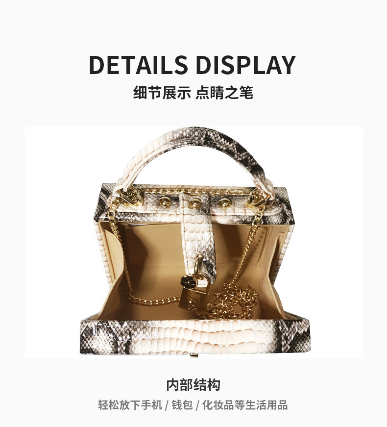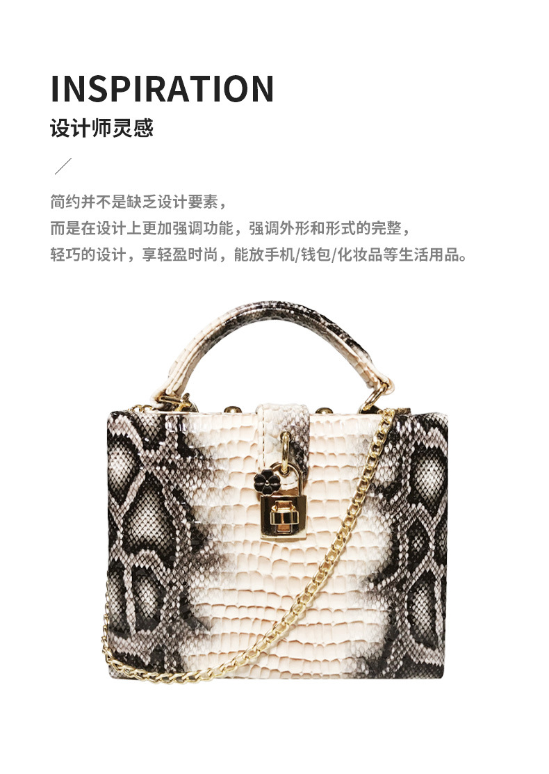 Túi xách tay dáng hộp vuông vức, mang phong cách phương Tây hiện đại. Mặt túi in nổi họa tiết da rắn vừa cá tính vừa độc đáo. Chất liệu bền đẹp, bề mặt mịn màng dễ lau chùi. Túi có qu xách chắc chắn và dây đeo dài để mang vắt v hoặc khoác chéo tùy thích. Phù hợp dùng đi làm, dạo phố hay gặp gỡ bạn bè. Bên trong rộng rãi, đựng vừa ví, điện thoại và các vật dụng cá nhân cần thiết. | Tên sản phẩm: Túi Xách Nữ Họa Tiết Hoa Phong Cách Âu Mỹ - Túi Ví Nữ | Mã sản phẩm: K1877 - Giá: 830.000đ | Mã nhà sản xuất: PURYRM-G03Hình ảnh sản phẩm