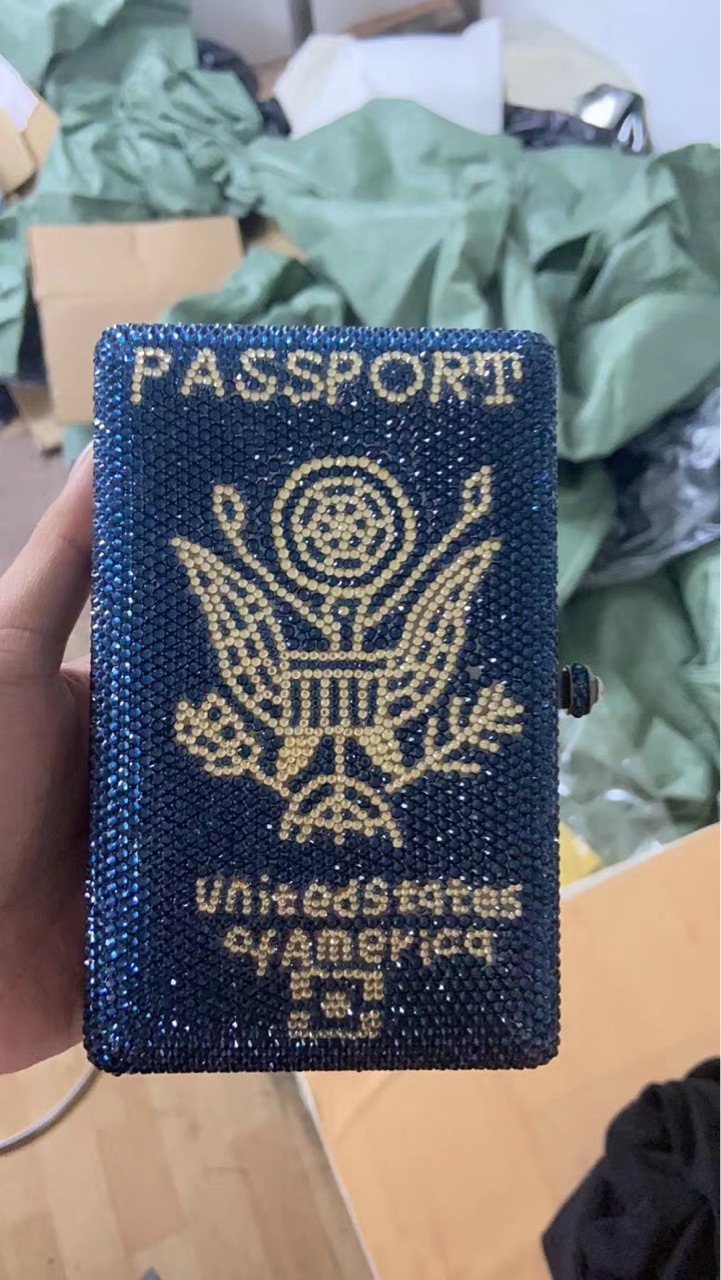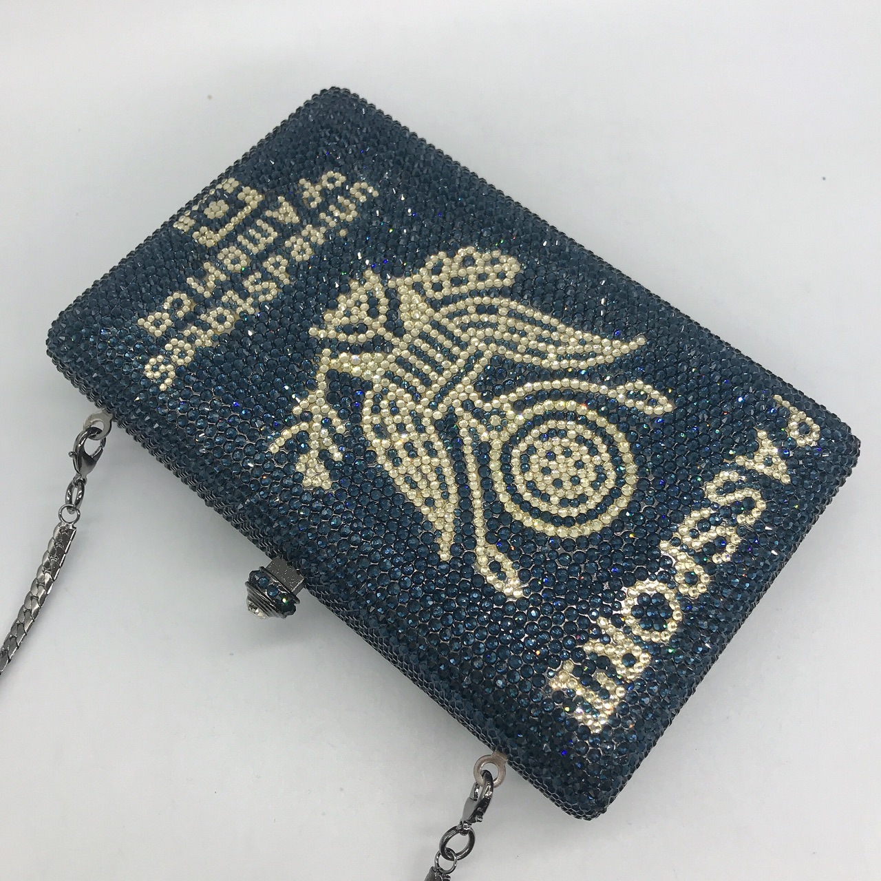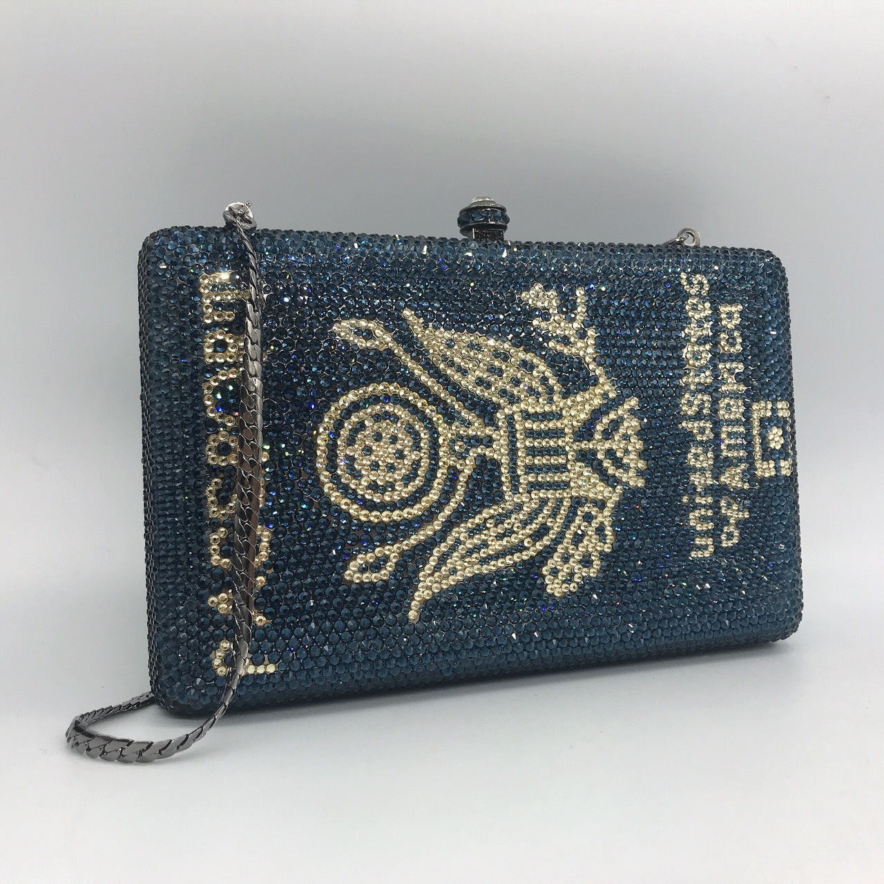 Chiếc túi cầm tay này có kiểu dáng độc đáo như một quyển hộ chiếu, được phối màu xanh đậm thời thượng. Điểm nhấn nổi bật là các viên đá lấp lánh được khảm tinh xảo xung quanh thân túi. Kiểu dáng phù hợp để cầm tay trong các buổi tiệc tối hoặc sự kiện. Bạn chỉ cần cầm túi bằng tay, móc khóa bên trong giúp đựng vừa các vật dụng cá nhân nhỏ gọn. | Tên sản phẩm: Ví Bóp Cầm Tay Nữ Phong Cách Âu Mỹ - Túi Ví Nữ | Mã sản phẩm: K1879 - Giá: 3.700.000đ | Mã nhà sản xuất: PURYRM-G06Hình ảnh sản phẩm