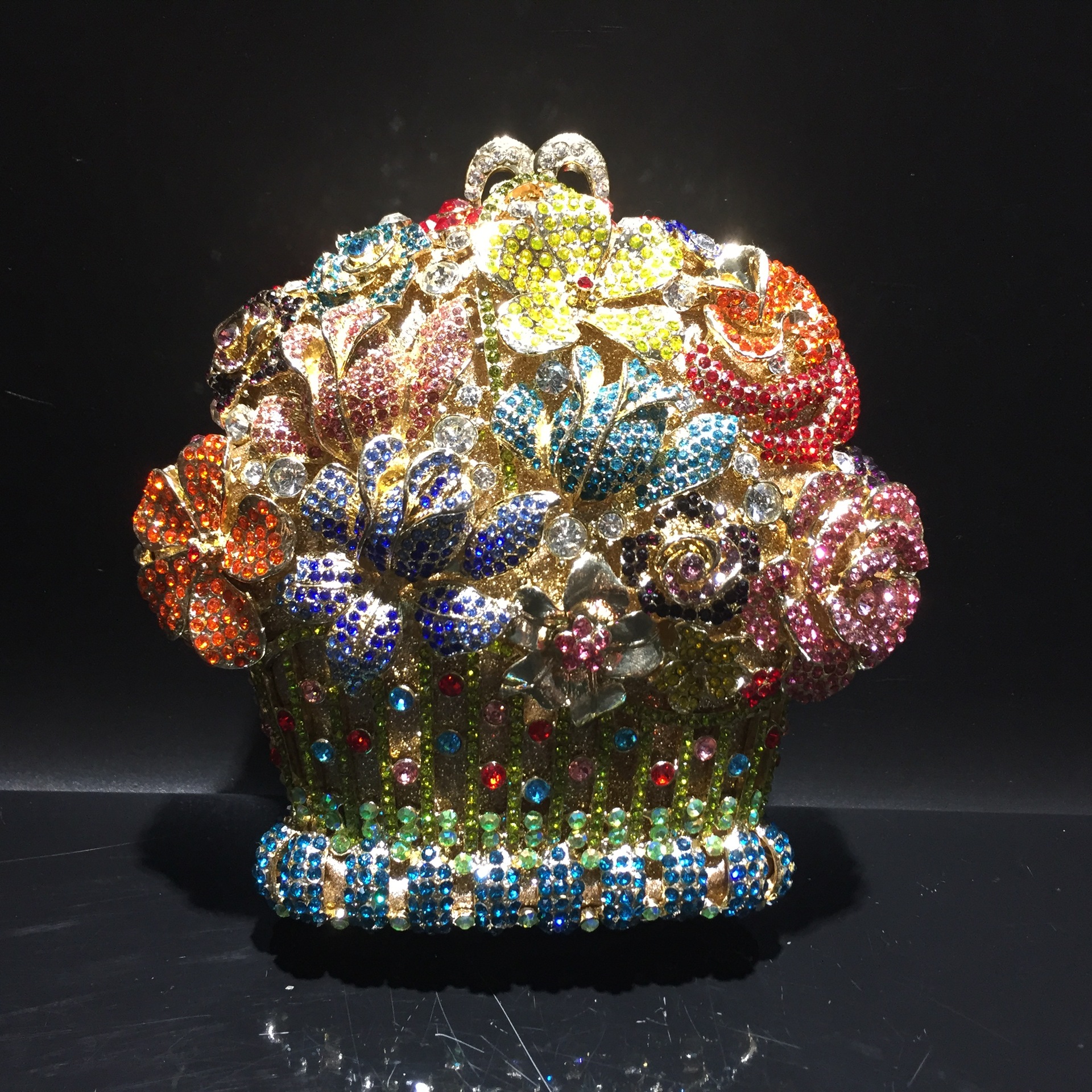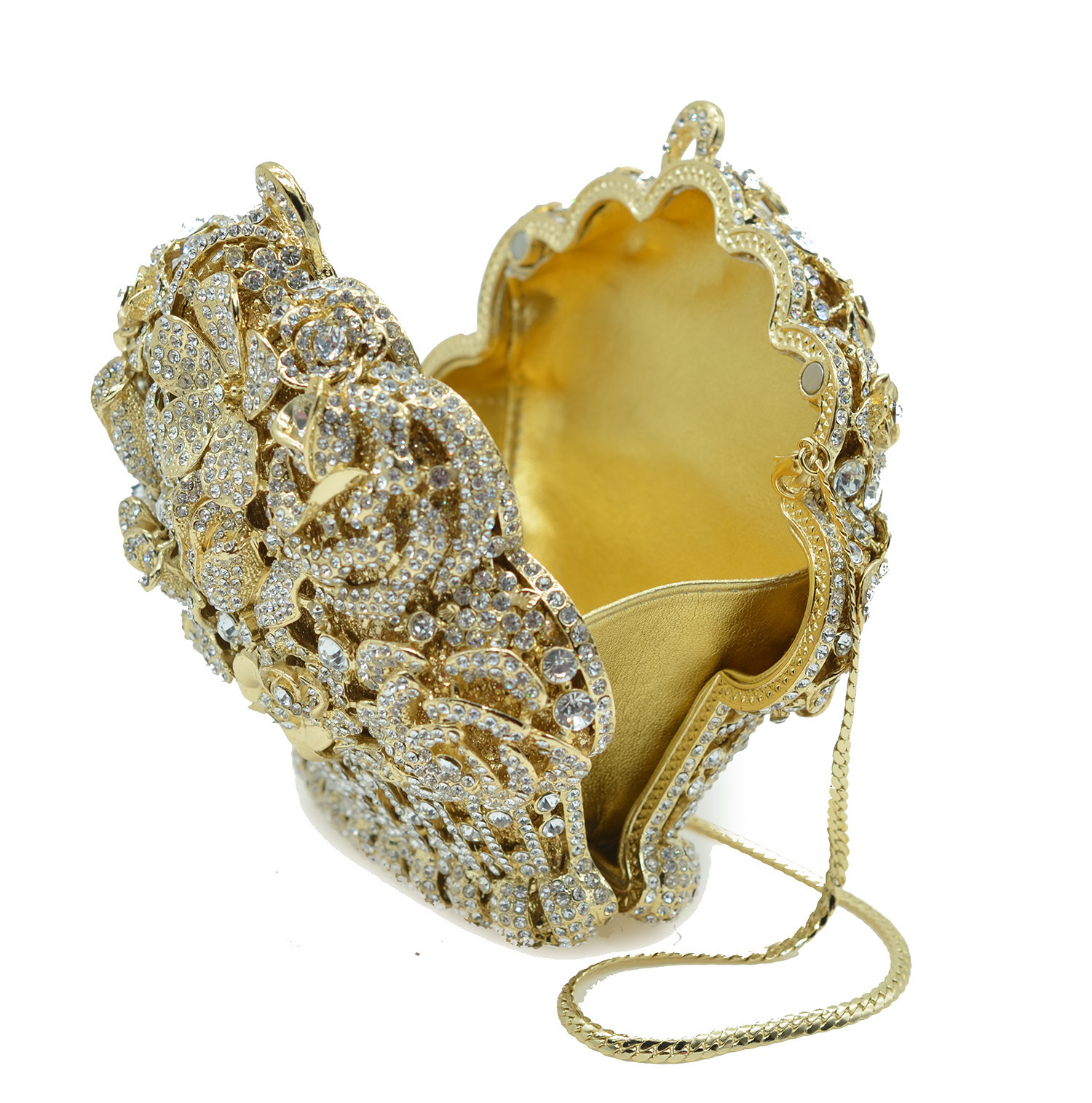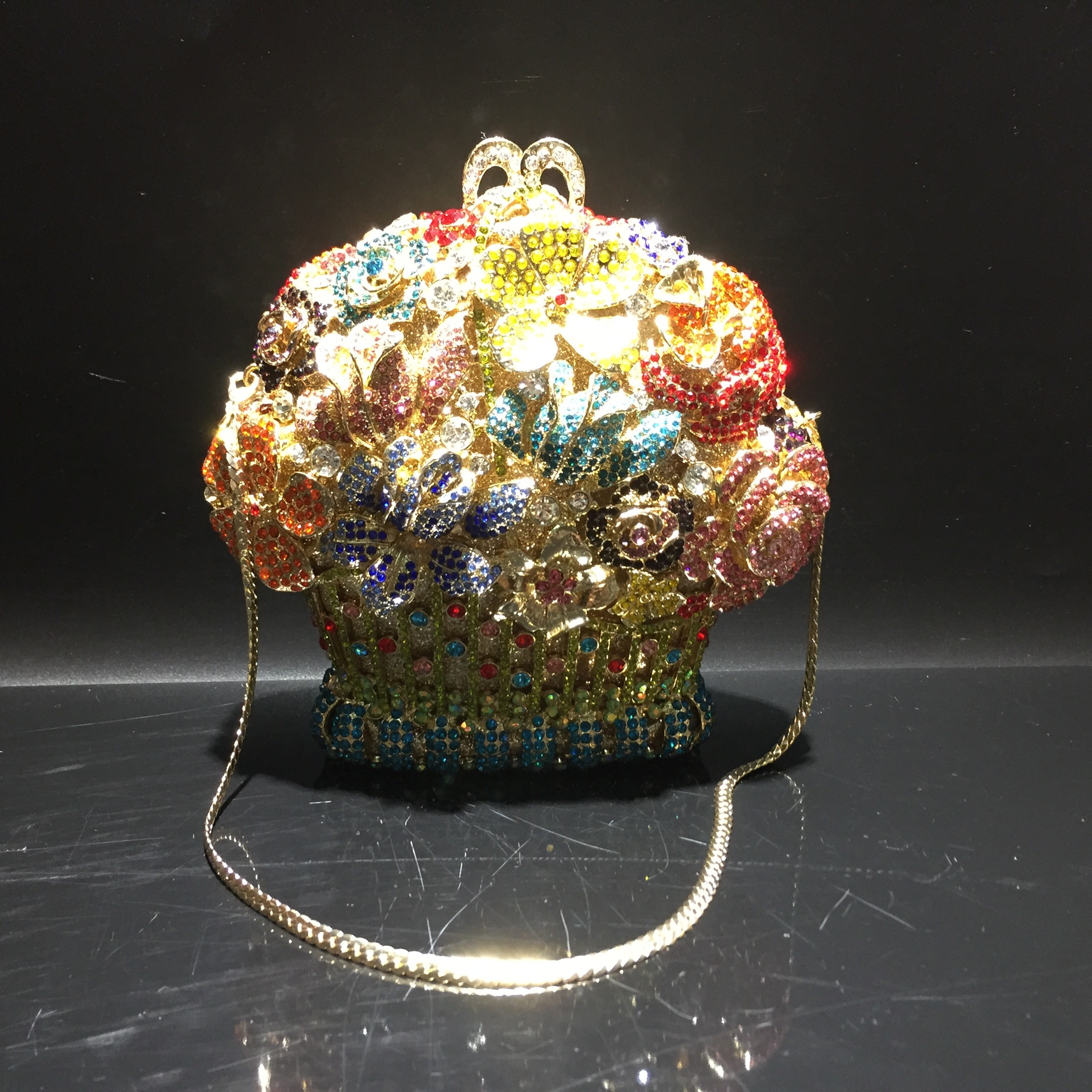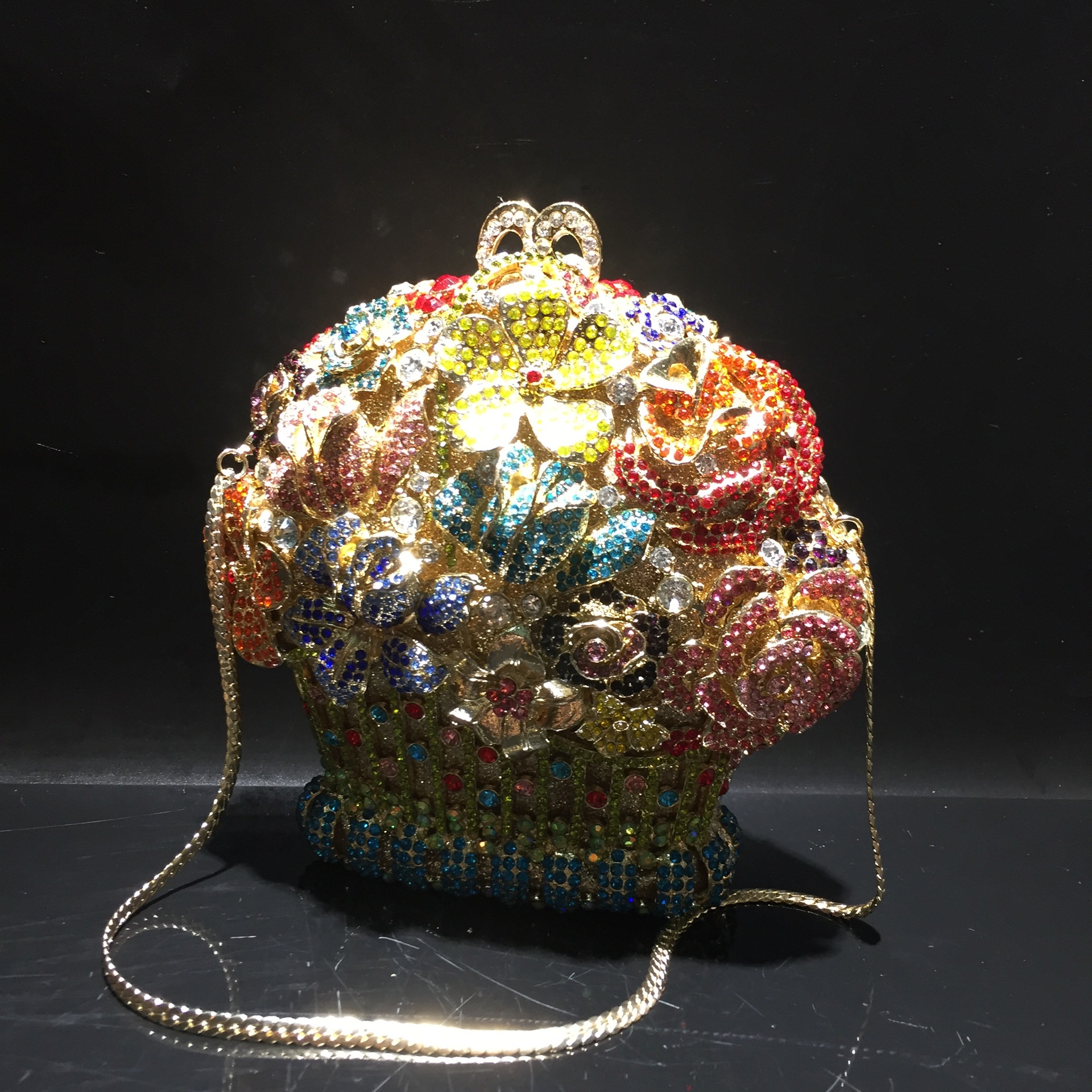 Chiếc túi cầm tay này có phần thân được làm từ kim loại tạo hình hoa văn thủ công tinh xảo. Các viên đá lấp lánh được gắn tỉ mỉ, kết hợp cùng phụ kiện pha lê trong suốt, tạo nên vẻ đẹp lung linh dưới ánh đèn. Kiểu dáng như một chiếc giỏ xách nhỏ, phù hợp để cầm tay hoặc khoác trên cánh tay trong các buổi tiệc. Sử dụng bằng cách mở khóa kéo để đựng các vật dụng cá nhân nhỏ gọn bên trong. | Tên sản phẩm: Ví Bóp Cầm Tay Nữ Họa Tiết Hoa - Túi Ví Nữ | Mã sản phẩm: K1880 - Giá: 2.120.000đ | Mã nhà sản xuất: PURYRM-G05Hình ảnh sản phẩm
