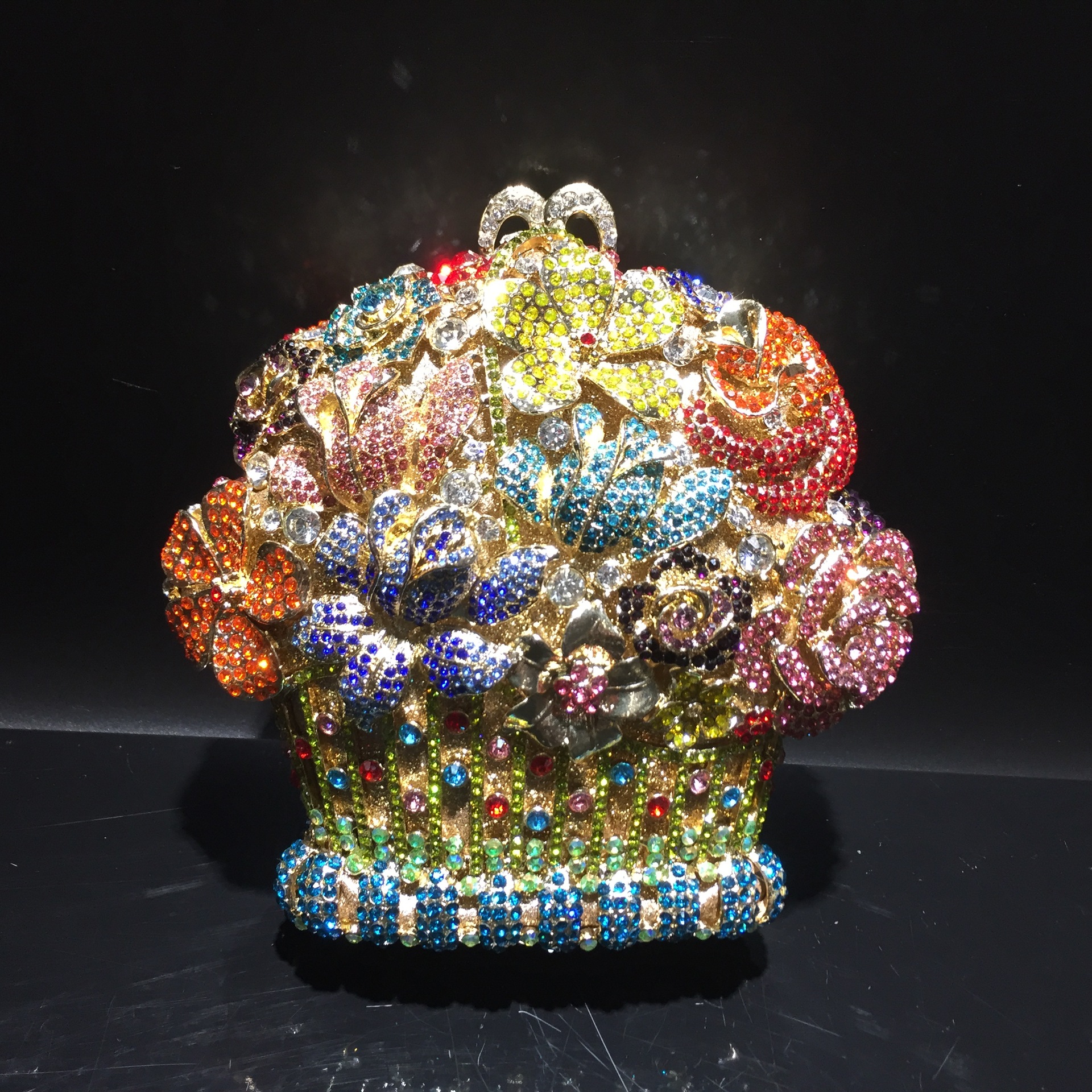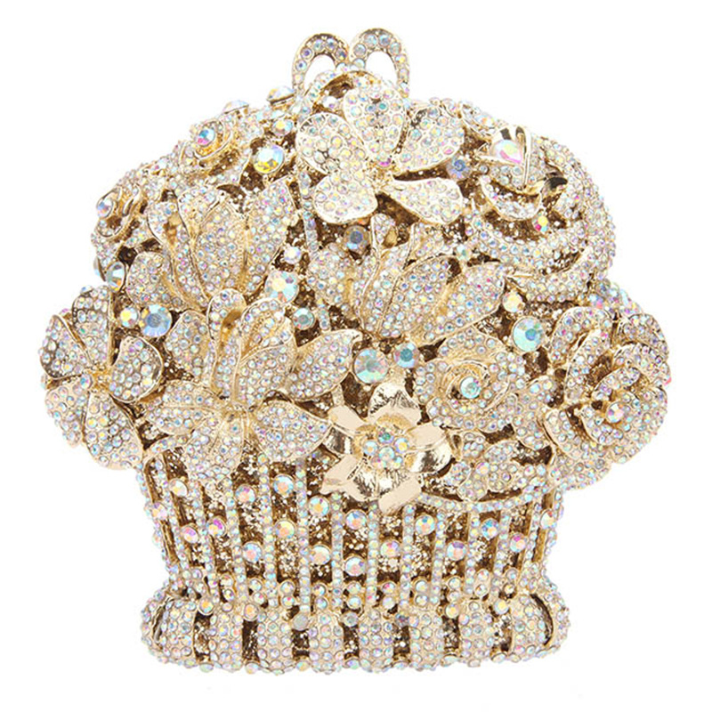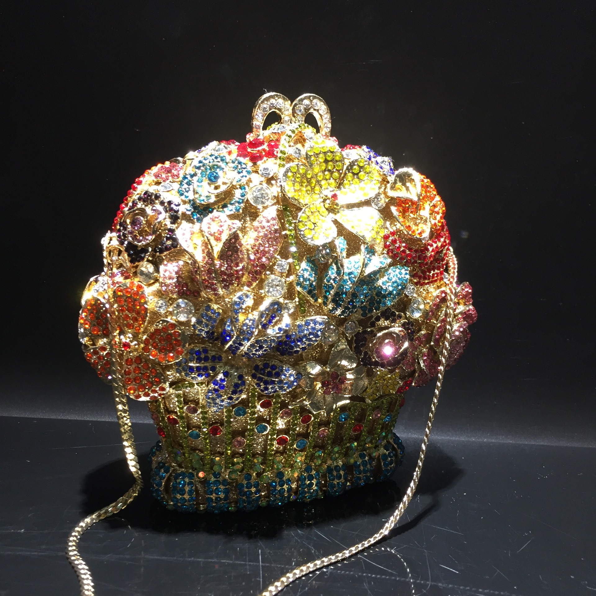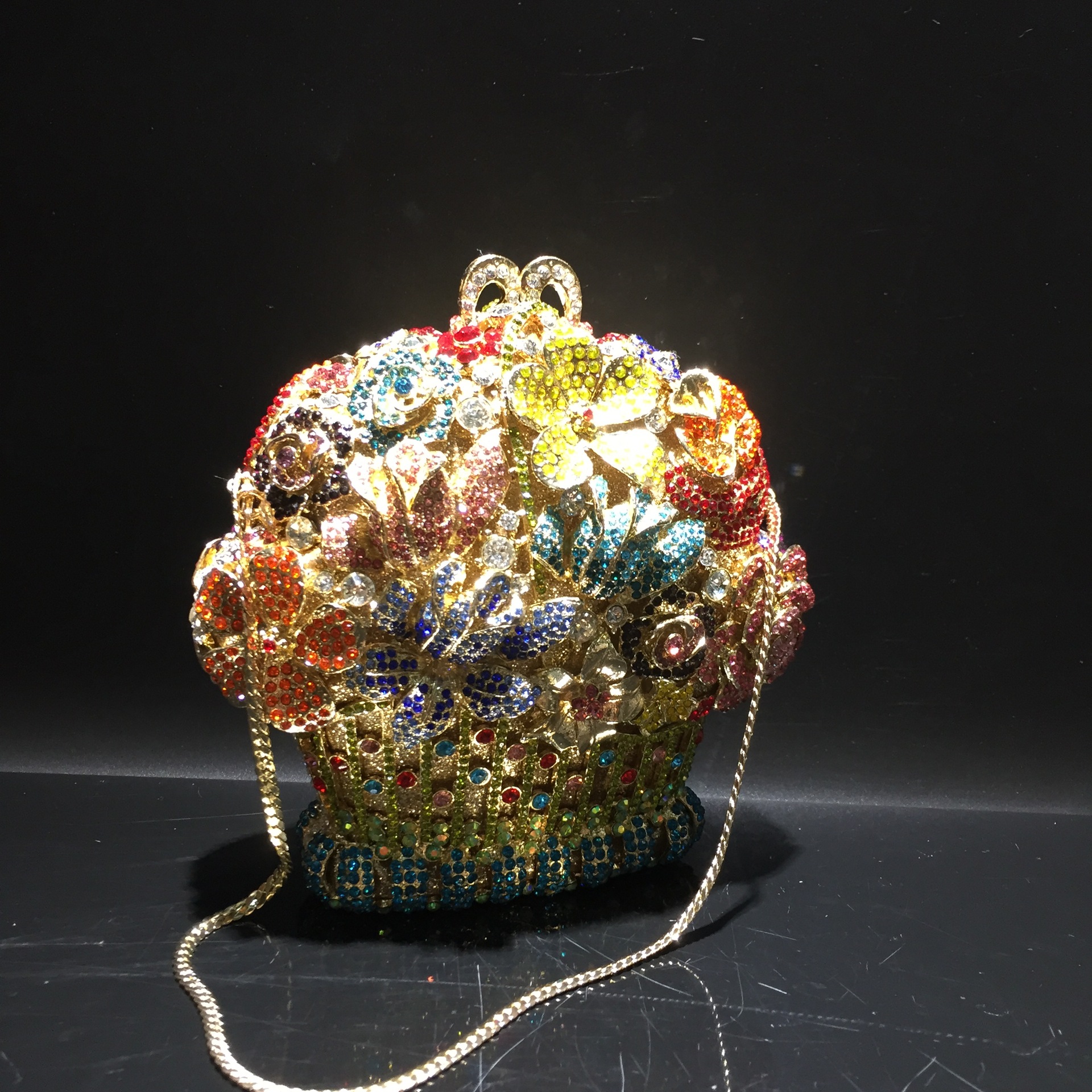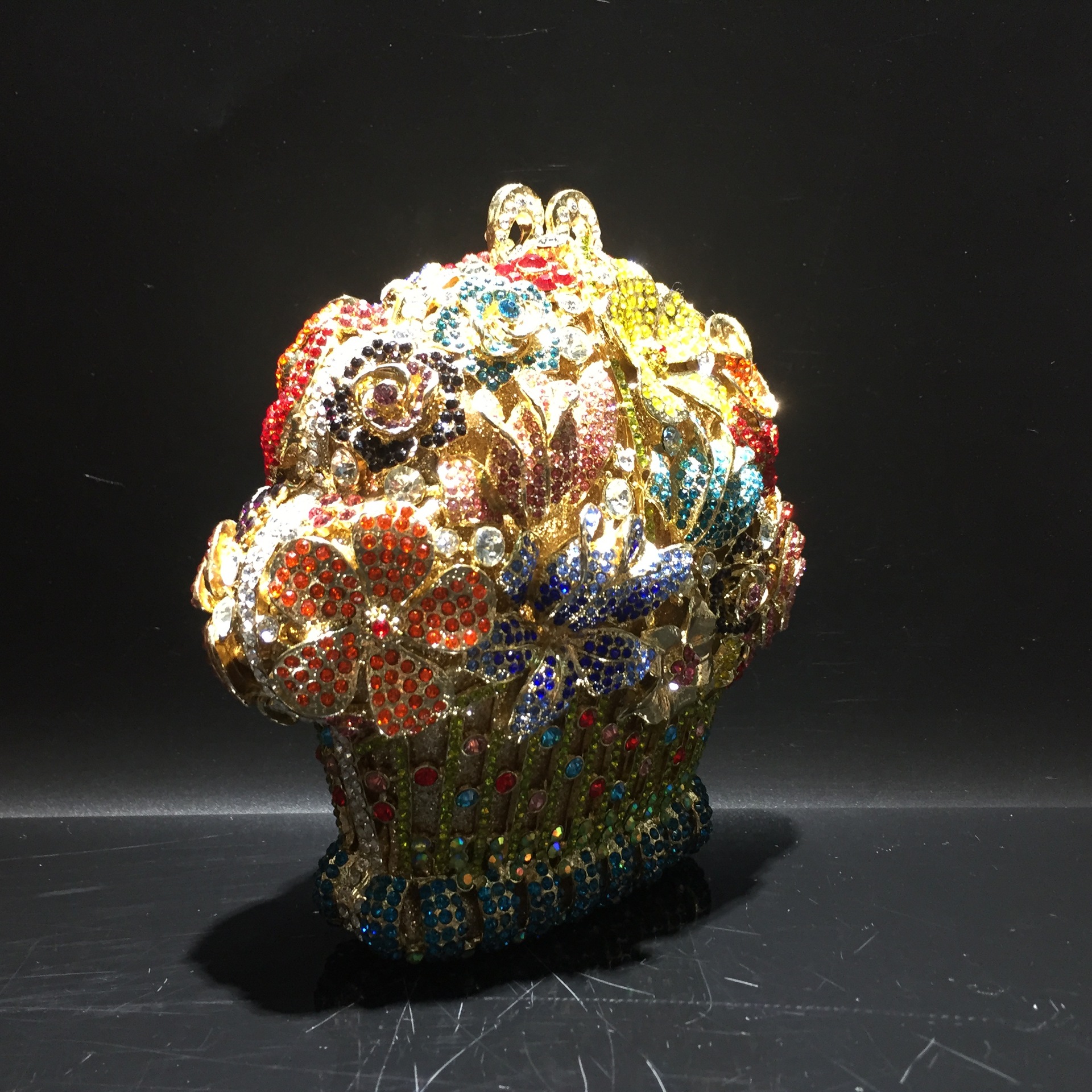 Chiếc túi cầm tay này có phần thân được làm từ kim loại tạo hình hoa văn thủ công tinh xảo. Các viên đá lấp lánh được gắn tỉ mỉ, kết hợp cùng phụ kiện pha lê trong suốt, tạo nên vẻ đẹp lung linh dưới ánh đèn. Kiểu dáng như một chiếc giỏ xách nhỏ, phù hợp để cầm tay hoặc khoác trên cánh tay trong các buổi tiệc. Sử dụng bằng cách mở khóa kéo để đựng các vật dụng cá nhân nhỏ gọn bên trong. | Tên sản phẩm: Ví Bóp Cầm Tay Nữ Họa Tiết Hoa - Túi Ví Nữ | Mã sản phẩm: K1880 - Giá: 2.120.000đ | Mã nhà sản xuất: PURYRM-G05Hình ảnh sản phẩm