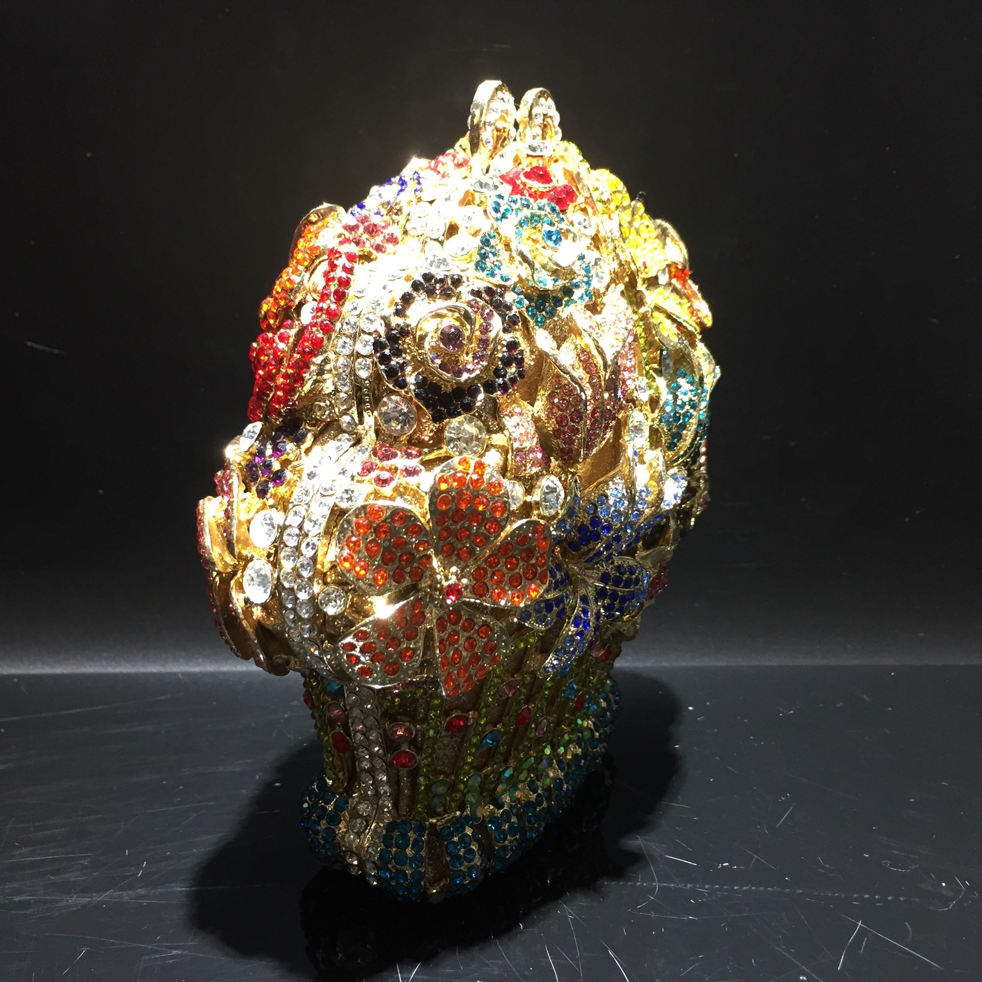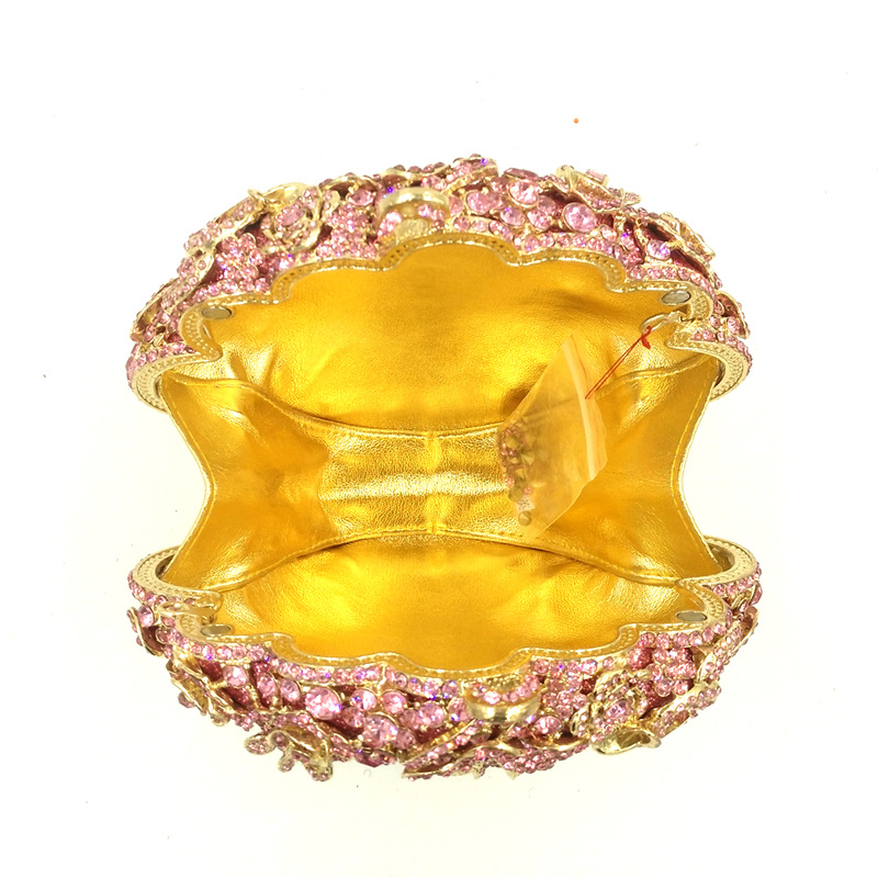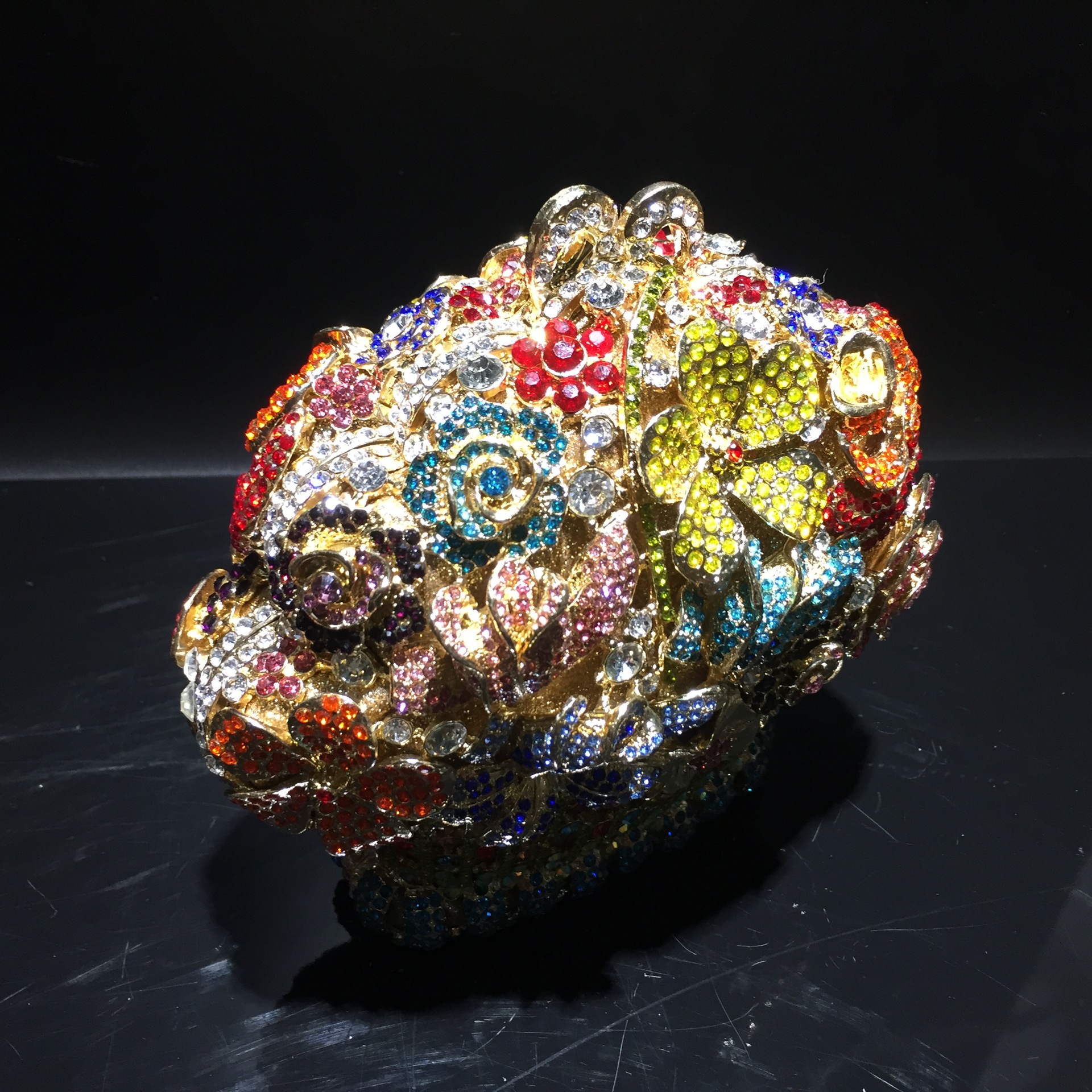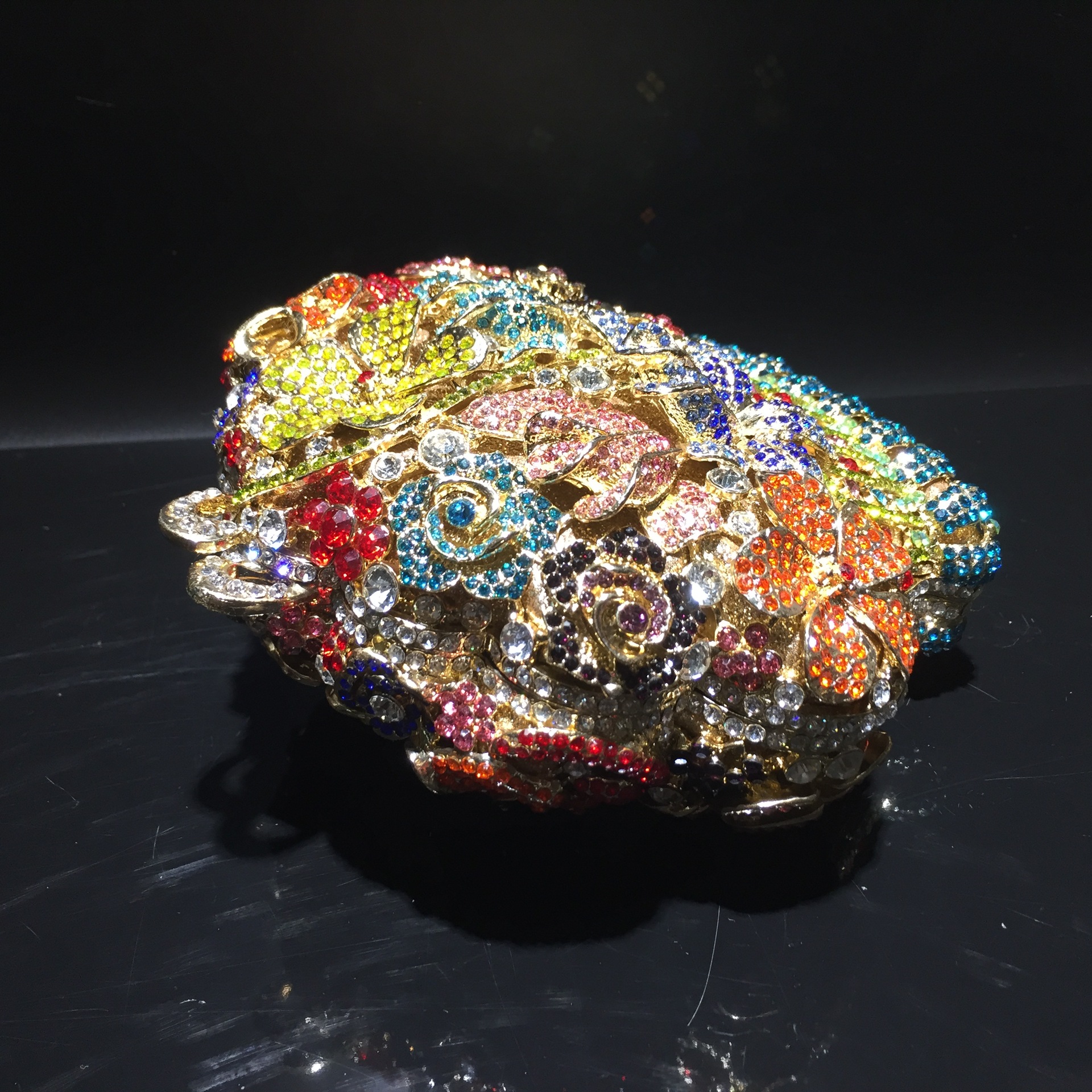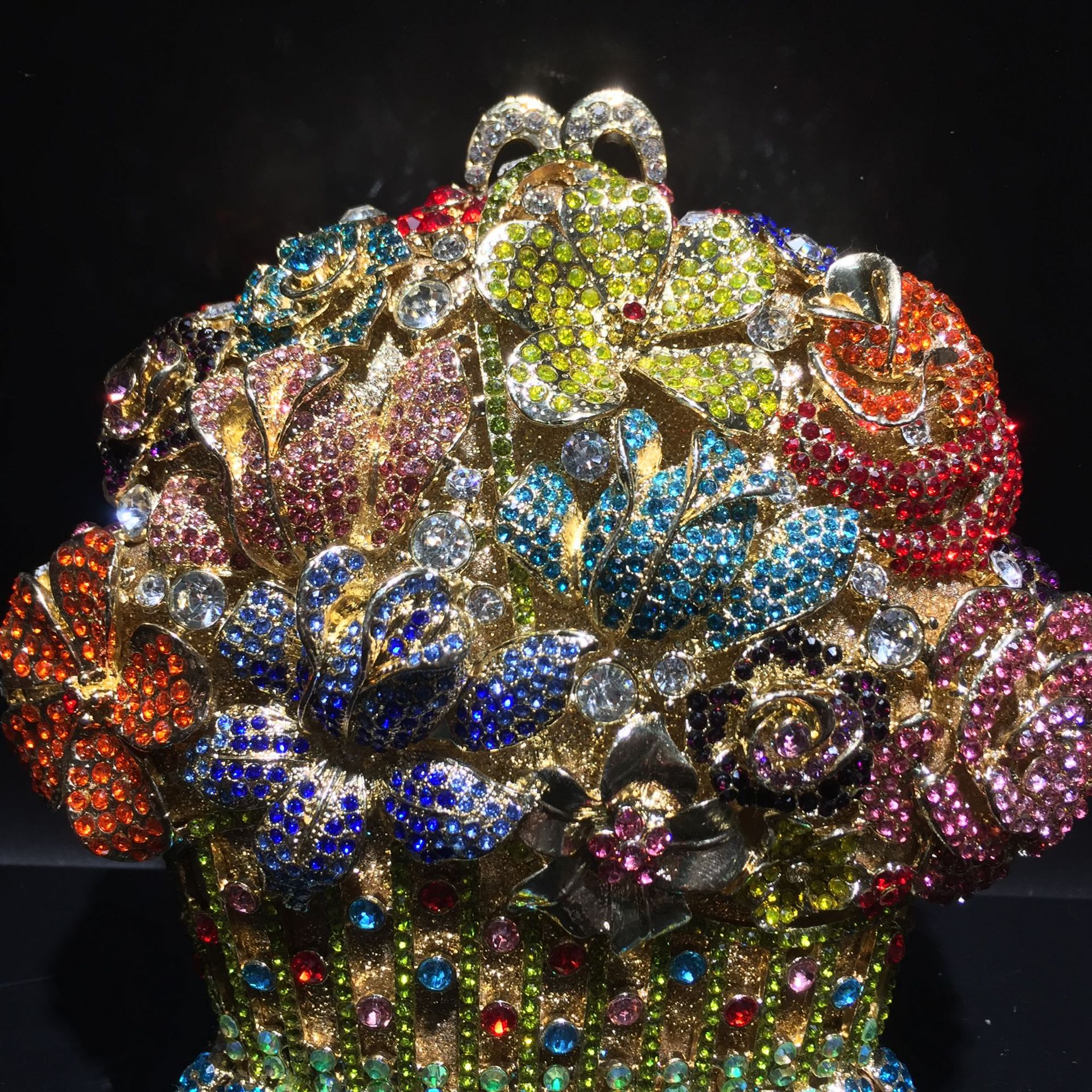 Chiếc túi cầm tay này có phần thân được làm từ kim loại tạo hình hoa văn thủ công tinh xảo. Các viên đá lấp lánh được gắn tỉ mỉ, kết hợp cùng phụ kiện pha lê trong suốt, tạo nên vẻ đẹp lung linh dưới ánh đèn. Kiểu dáng như một chiếc giỏ xách nhỏ, phù hợp để cầm tay hoặc khoác trên cánh tay trong các buổi tiệc. Sử dụng bằng cách mở khóa kéo để đựng các vật dụng cá nhân nhỏ gọn bên trong. | Tên sản phẩm: Ví Bóp Cầm Tay Nữ Họa Tiết Hoa - Túi Ví Nữ | Mã sản phẩm: K1880 - Giá: 2.120.000đ | Mã nhà sản xuất: PURYRM-G05Hình ảnh sản phẩm