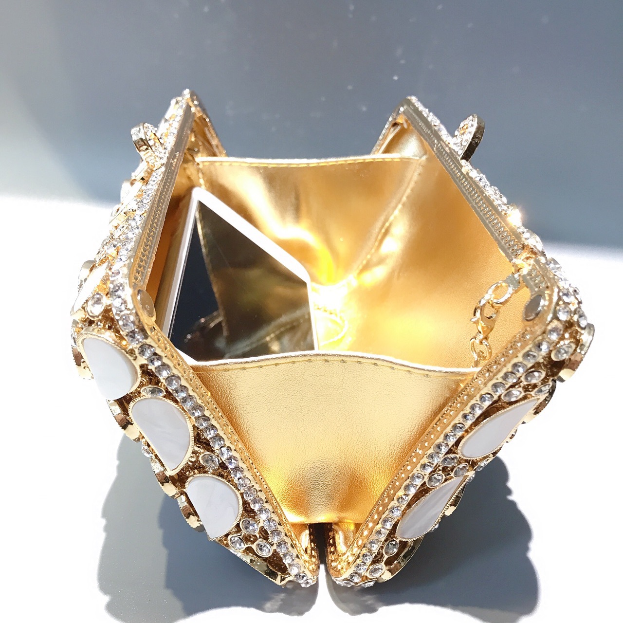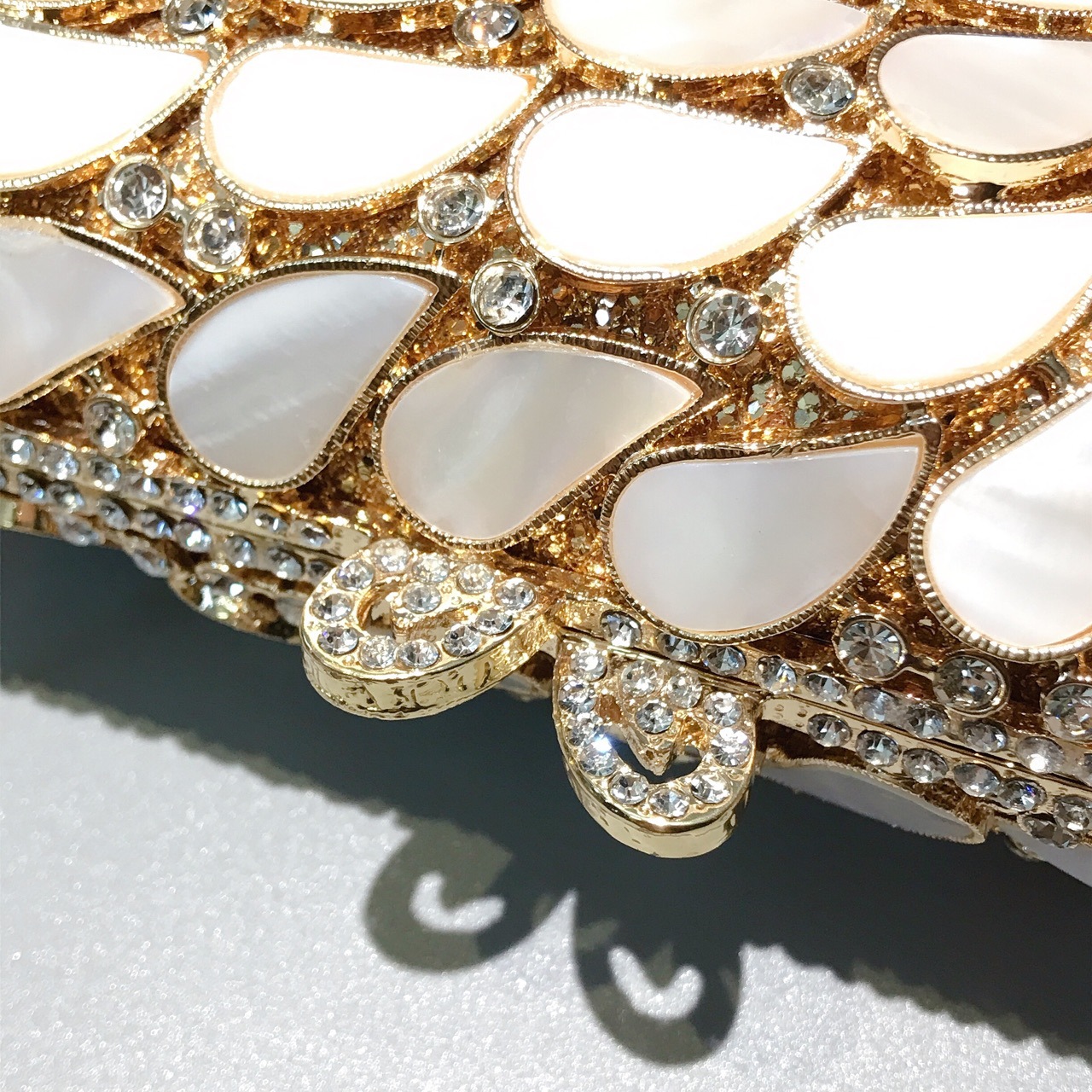 Chiếc túi cầm tay này có hình dáng vỏ sò cùng mặt trước được tạo hình giọt nước cách điệu. Chất liệu trong suốt phối cùng các chi tiết được gắn tỉ mỉ, tạo nên vẻ lung linh. Kiểu dáng phù hợp để mang theo trong các buổi tiệc tối hoặc sự kiện. Bạn chỉ cần cầm trên tay hoặc khoác lên v, túi có kích thước vừa đủ cho những món đồ dùng cá nhân cần thiết. | Tên sản phẩm: Ví Bóp Cầm Tay Nữ - Túi Ví Nữ | Mã sản phẩm: K1896 - Giá: 2.410.000đ | Mã nhà sản xuất: PURYRM-G05Hình ảnh sản phẩm