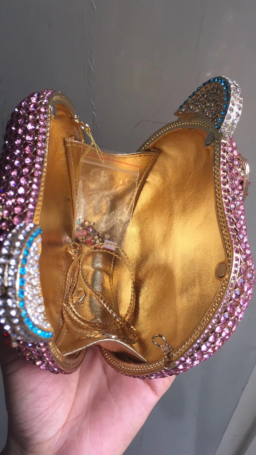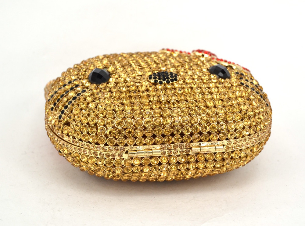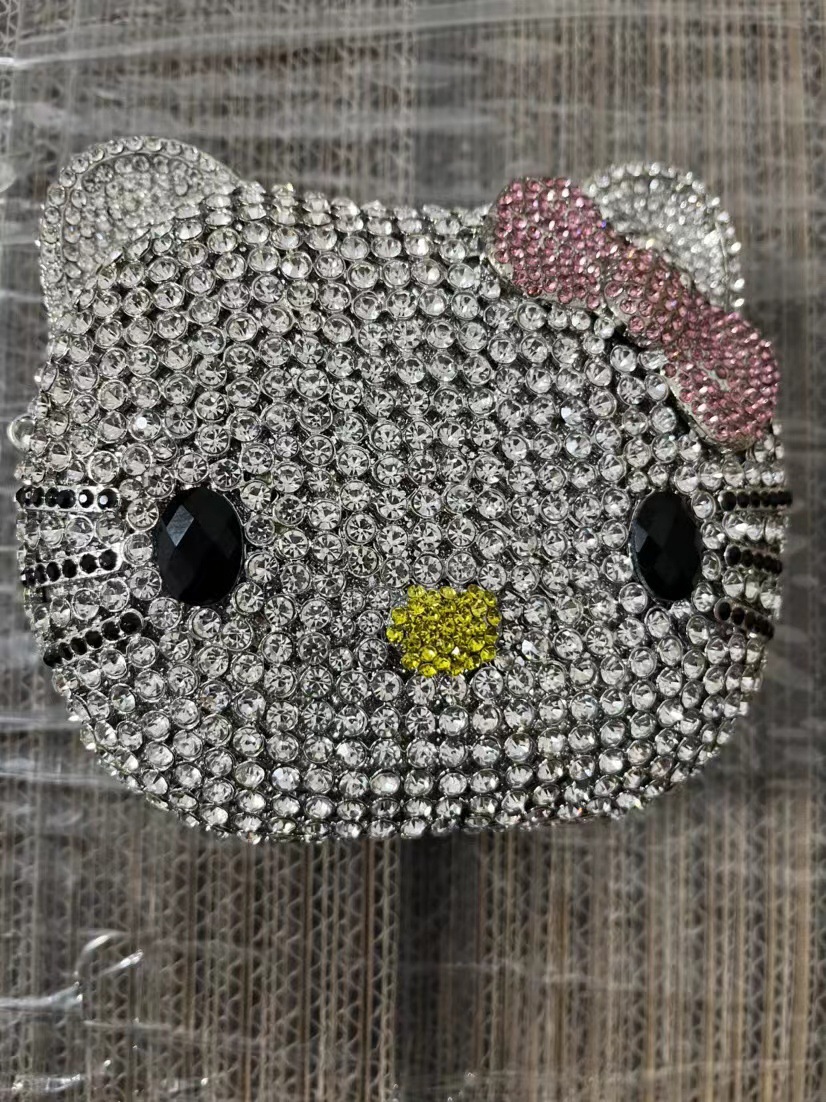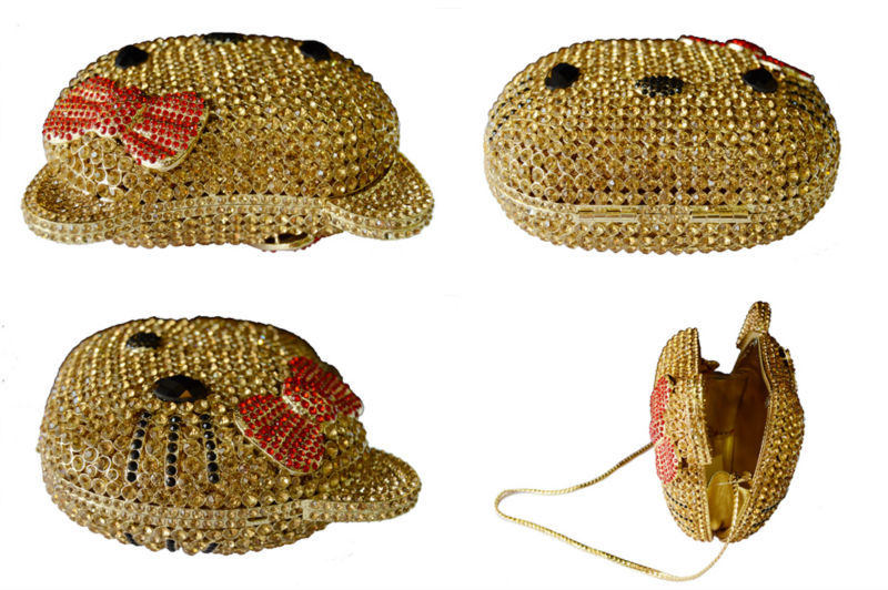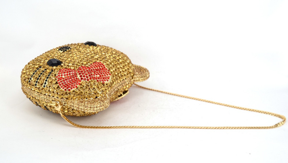Túi cầm tay thiết kế dễ thương với hình chú mèo Kitty được tô điểm bằng những viên đá lấp lánh. Kiểu dáng túi có phần thân làm từ chất liệu kim loại tạo nét thanh thoát, kết hợp các họa tiết xuyên thấu tinh tế. Túi thích hợp để mang trong các buổi tiệc tối hay sự kiện. Bạn chỉ cần cầm trên tay hoặc móc vào cổ tay, dễ dàng để đựng một số vật dụng nhỏ như điện thoại, son môi và tiền. | Tên sản phẩm: Ví Bóp Cầm Tay Nữ Gắn Đá - Túi Ví Nữ | Mã sản phẩm: K1899 - Giá: 2.120.000đ | Mã nhà sản xuất: PURYRM-G05Hình ảnh sản phẩm