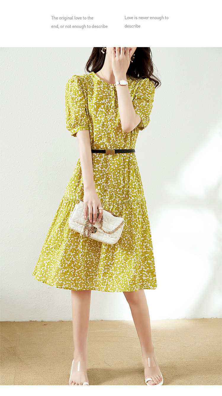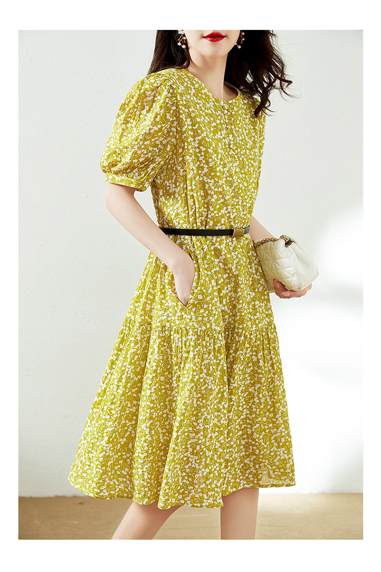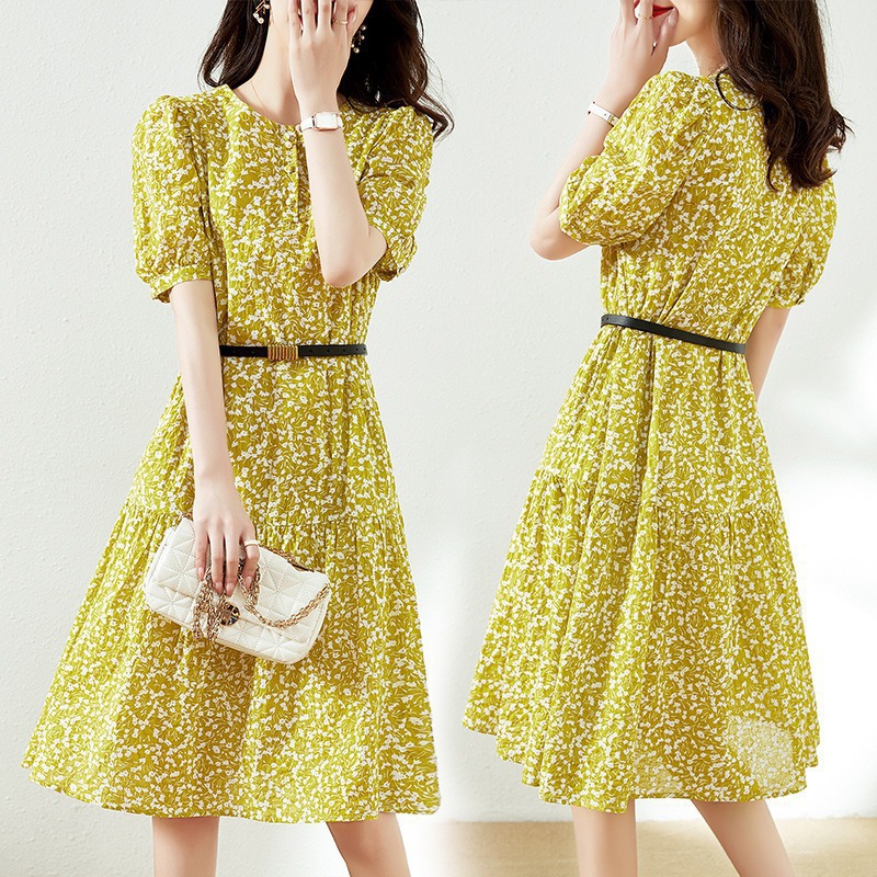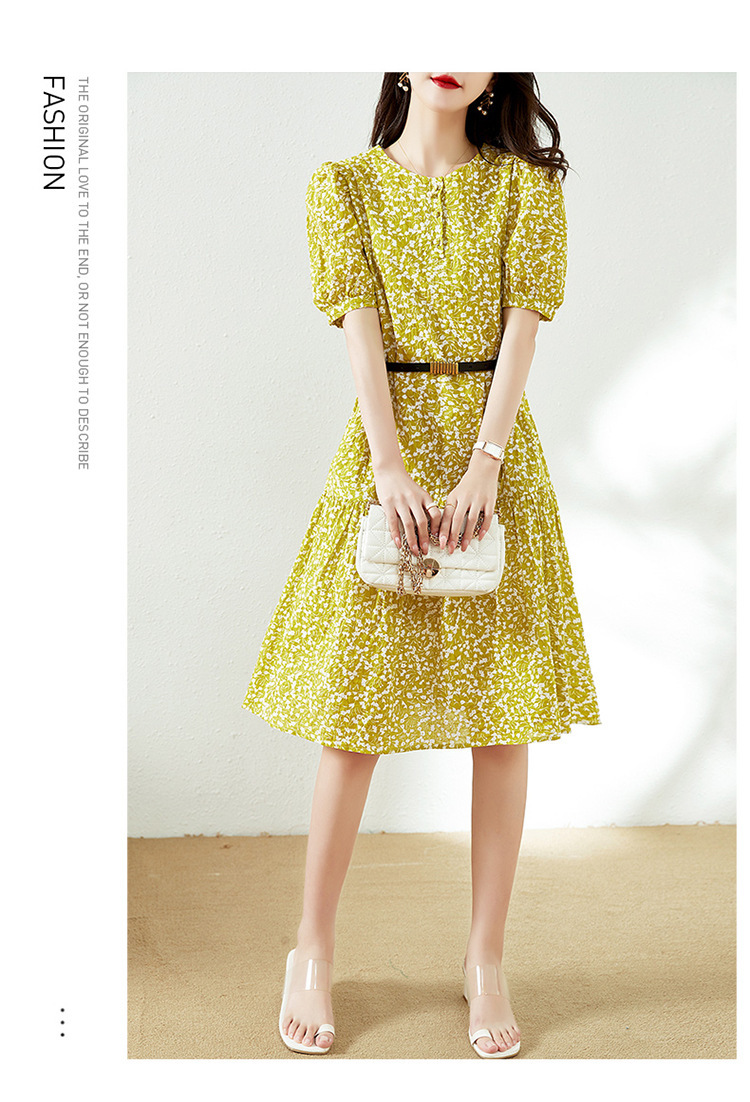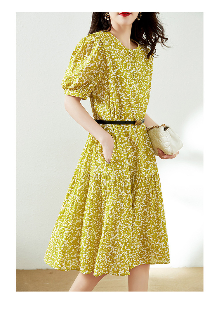 Đầm thiết kế kiểu dáng cổ điển với điểm nhấn là phần tay bồng nhẹ nhàng và đường viền vạt áp uốn lượn như sóng nước. Chất vải mềm mại có đường vân nhăn tự nhiên cùng họa tiết hoa nhỏ li ti trên nền vàng tươi sáng, toát lên vẻ đẹp trẻ trung và năng động. Sản phẩm phù hợp để mặc đi làm, đi chơi hay dự các buổi hẹn gặp mặt. Có thể phối cùng giày sandal hoặc giày búp bê để hoàn thiện bộ trang phục. | Tên sản phẩm: Váy Đầm Liền Thân Nữ Tay Phồng Họa Tiết Hoa Hàng Mùa Hè - Thời Trang Nữ | Mã sản phẩm: K2239 - Giá: 590.000đ | Mã nhà sản xuất: SHREIA-G01Hình ảnh sản phẩm
