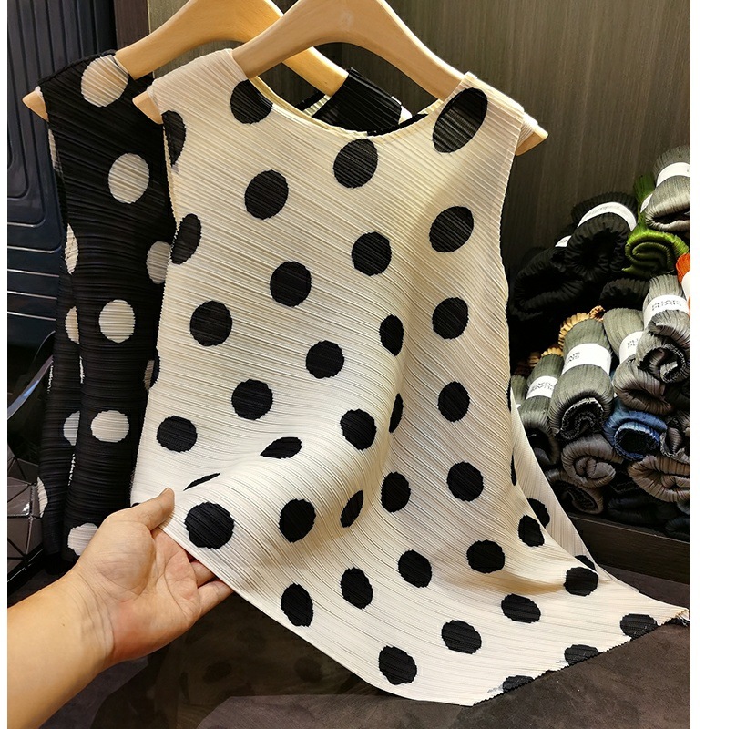 Áo khoác không tay với họa tiết chấm bi lãng mạn, mang phong cách Nhật Bản. Kiểu dáng rộng rãi thoải mái, tạo cảm giác nhẹ nhàng, thanh thoát. Các đường nhún xếp tinh tế kết hợp thiết kế không đối xứng ở phần thân, giúp tôn lên vóc dáng. Chất vải mềm mại, co giãn nhẹ, thấm hút mồ hôi tốt. Có thể phối cùng quần ống rộng hoặc chân váy để tạo nên vẻ ngoại ấn tượng, phù hợp cho những dịp gặp gỡ bạn bè hoặc dạo phố. | Tên sản phẩm: Áo Sơ Mi Nữ Kẻ Caro Kẻ Caro Hàng Mùa Hè - Thời Trang Nữ | Mã sản phẩm: k2351 - Giá: 770.000đ | Mã nhà sản xuất: CHTYAI-G02Hình ảnh sản phẩm
