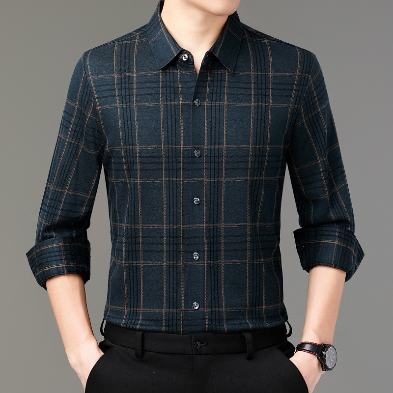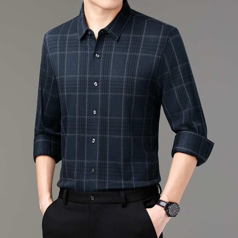 Áo sơ mi nam dáng rộng thoải mái, kiểu dáng kẻ ô cổ điển phù hợp cho dịp thường ngày. Chất liệu từ sợi lông dê mềm mại, giữ ấm nhẹ nhàng cho mùa thu đông. Sản phẩm không cần ủi sau khi giặt, tiết kiệm thời gian chăm sóc. Có thể mặc kết hợp với quần âu hoặc quần jeans, phù hợp cho nhiều hoạt động trong ngày. Thiết kế ôm vừa vặn, tạo cảm giác dễ chịu khi mặc cả ngày dài. | Tên sản phẩm: Áo Sơ Mi Nam Kẻ Caro Kẻ Caro Hàng Mùa Xuân Thu Đông Trung Niên - Thời Trang Nam | Mã sản phẩm: K2379 - Giá: 2.580.000đ | Mã nhà sản xuất: SHRYCT-G06Hình ảnh sản phẩm