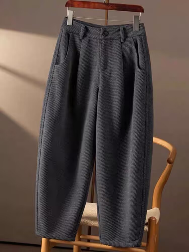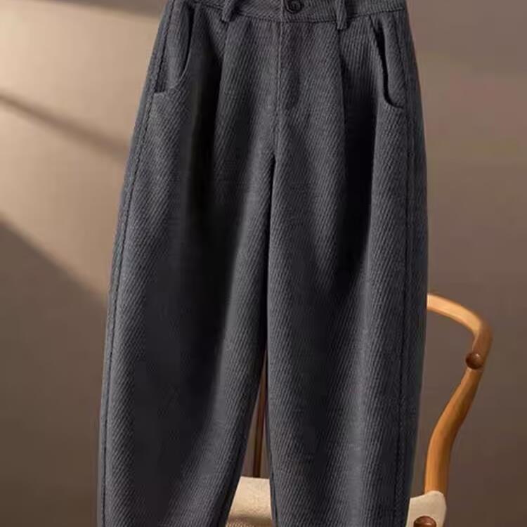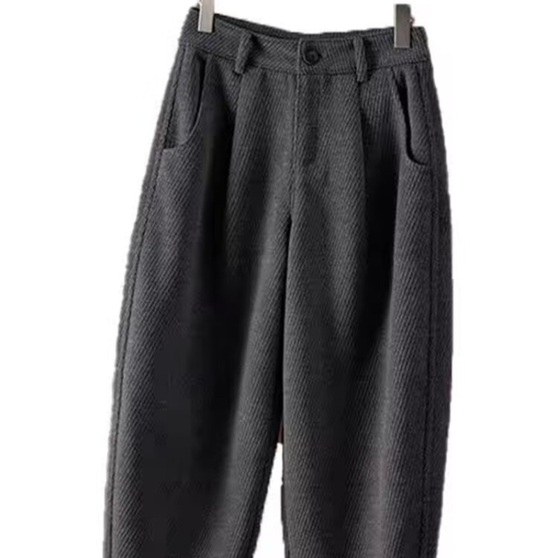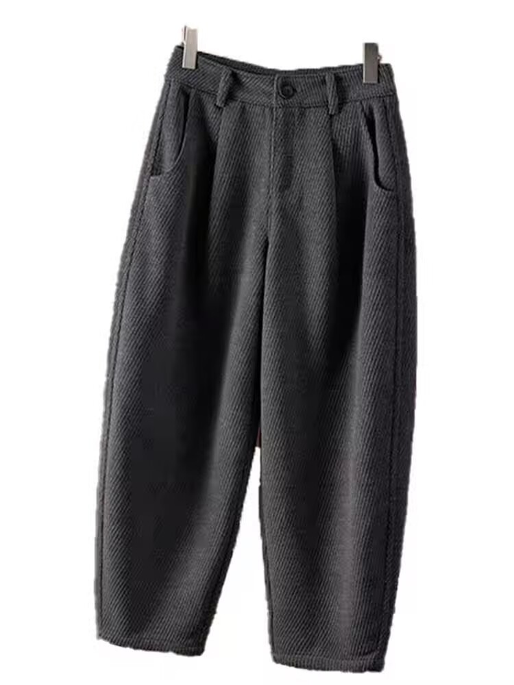 Chiếc quần dáng rộng thoải mái, được thiết kế theo kiểu ôm vừa ở eo và rộng dần xuống dưới. Sản phẩm có màu xám đậm dễ phối đồ và chất vải dày dặn hơn, giúp giữ ấm nhẹ cho người mặc. Bạn có thể kết hợp cùng áo thun hoặc áo len để tạo nên những bộ trang phục thường ngày một cách nhanh chóng và tiện lợi. | Tên sản phẩm: Quần Nữ Dày Ấm - Thời Trang Nữ | Mã sản phẩm: K2437 - Giá: 670.000đ | Mã nhà sản xuất: SHREIA-G02Hình ảnh sản phẩm