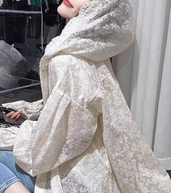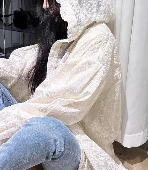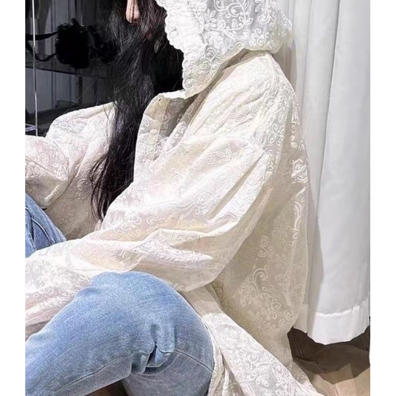 Áo sơ mi dáng dài tay có mũ trùm, được làm từ chất liệu vải mỏng nhẹ kết hợp chi tiết ren tinh tế. Sản phẩm có màu trắng dễ phối đồ, kiểu dáng thoải mái phù hợp cho mùa hè. Áo giúp che bớt những vùng cơ thể chưa hoàn hảo, đồng thời có khả năng ngăn ánh nắng mặt trời nhờ lớp vải dày vừa phải. Có thể mặc như áo khoác ngoài hoặc áo mặc thường ngày, phối cùng quần shorts hoặc chân váy đều hợp. | Tên sản phẩm: Áo Sơ Mi Nữ Chất Liệu Ren Mũ Liền Hàng Mùa Hè - Thời Trang Nữ | Mã sản phẩm: k2550 - Giá: 1.130.000đ | Mã nhà sản xuất: CHTYAI-G04Hình ảnh sản phẩm